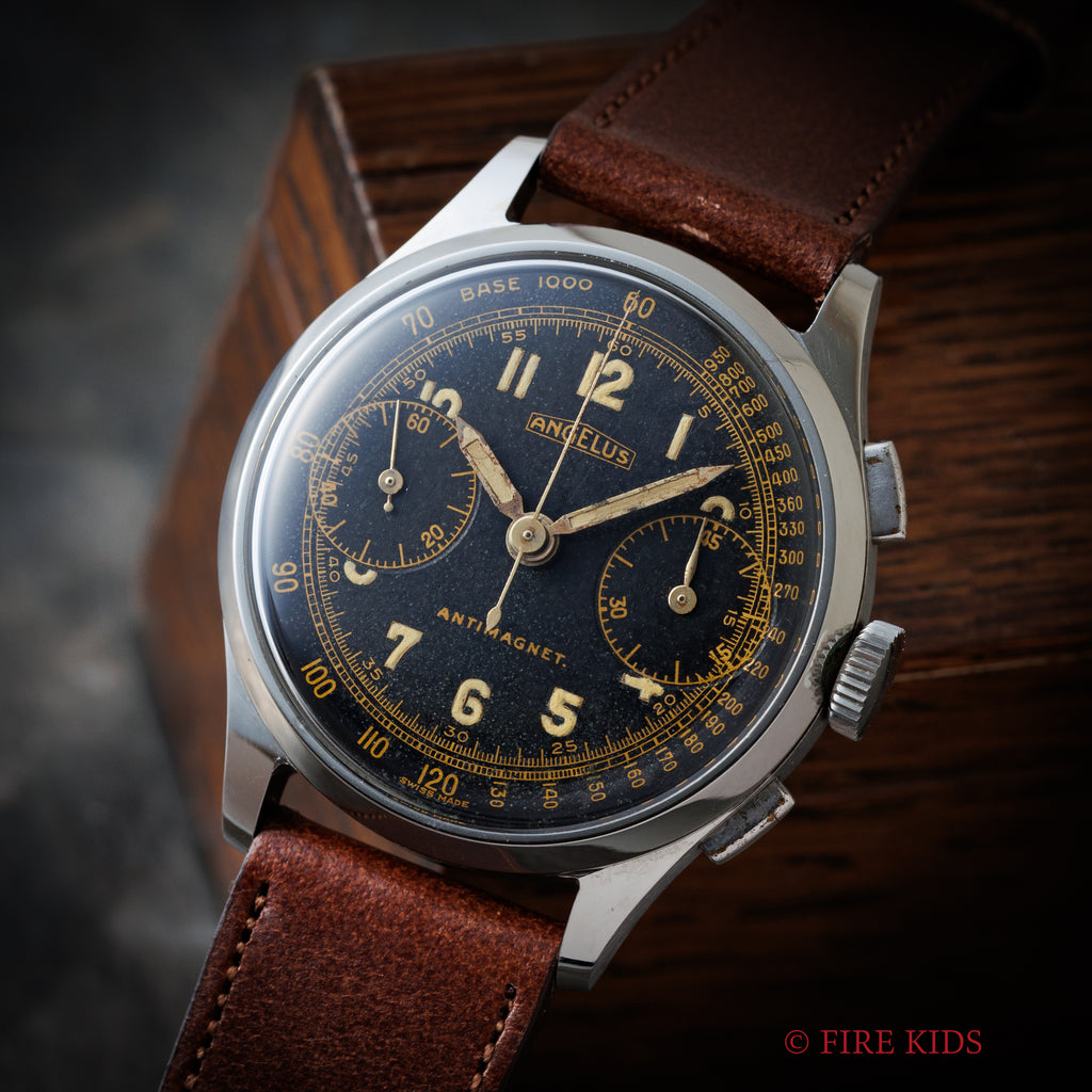 アンジェラス 2レジスター クロノグラフ 1940年代製 オリジナルブラックダイヤル 手巻き Cal.215