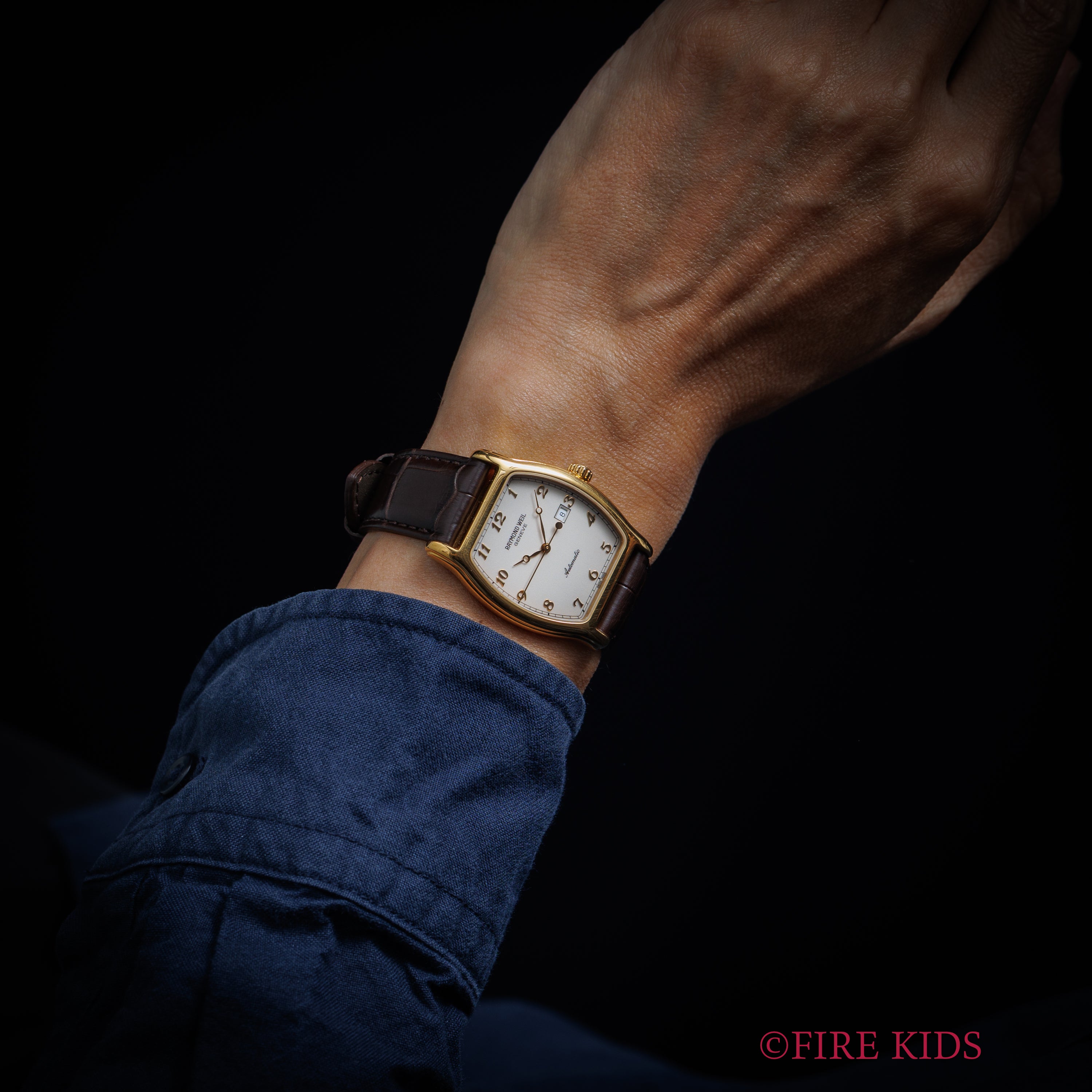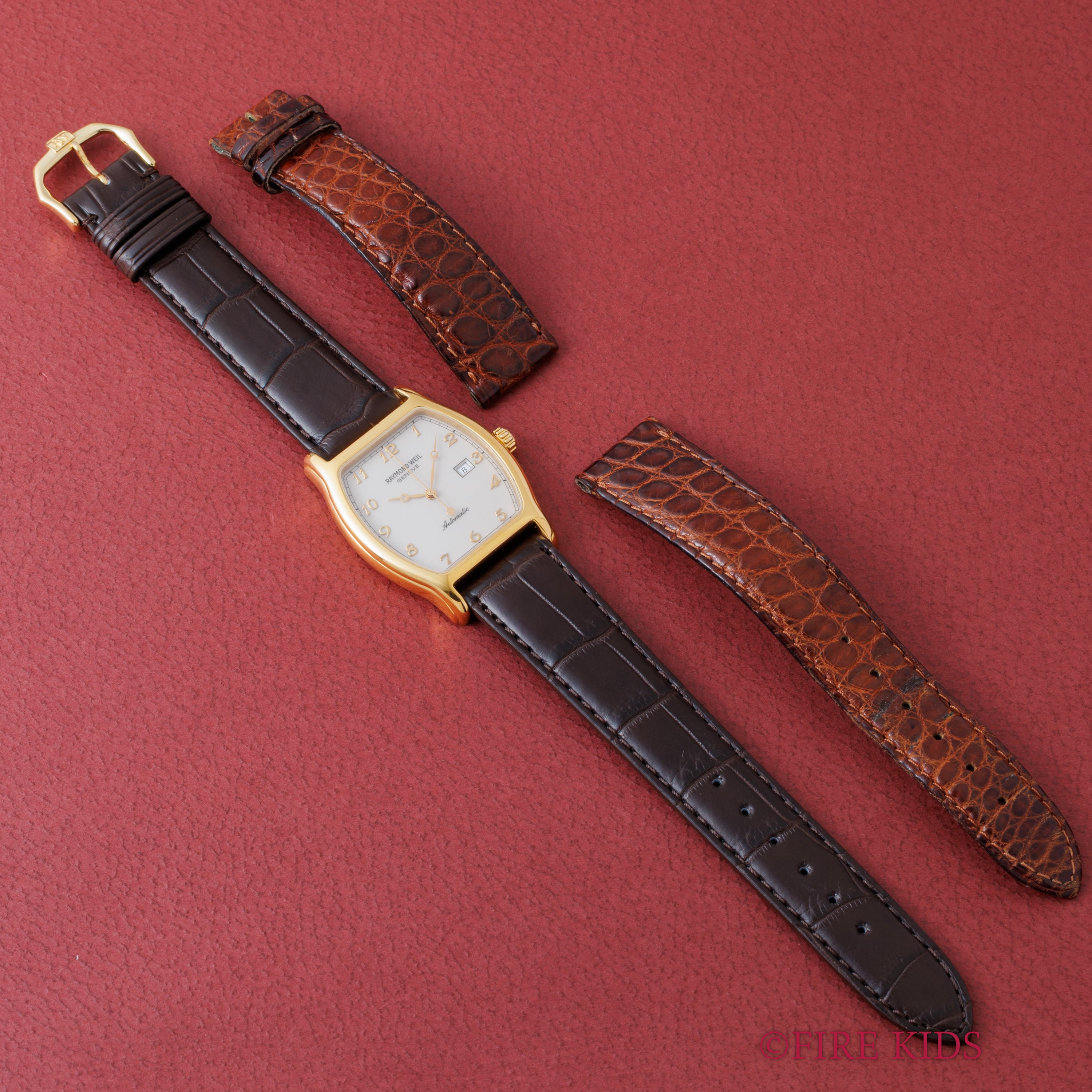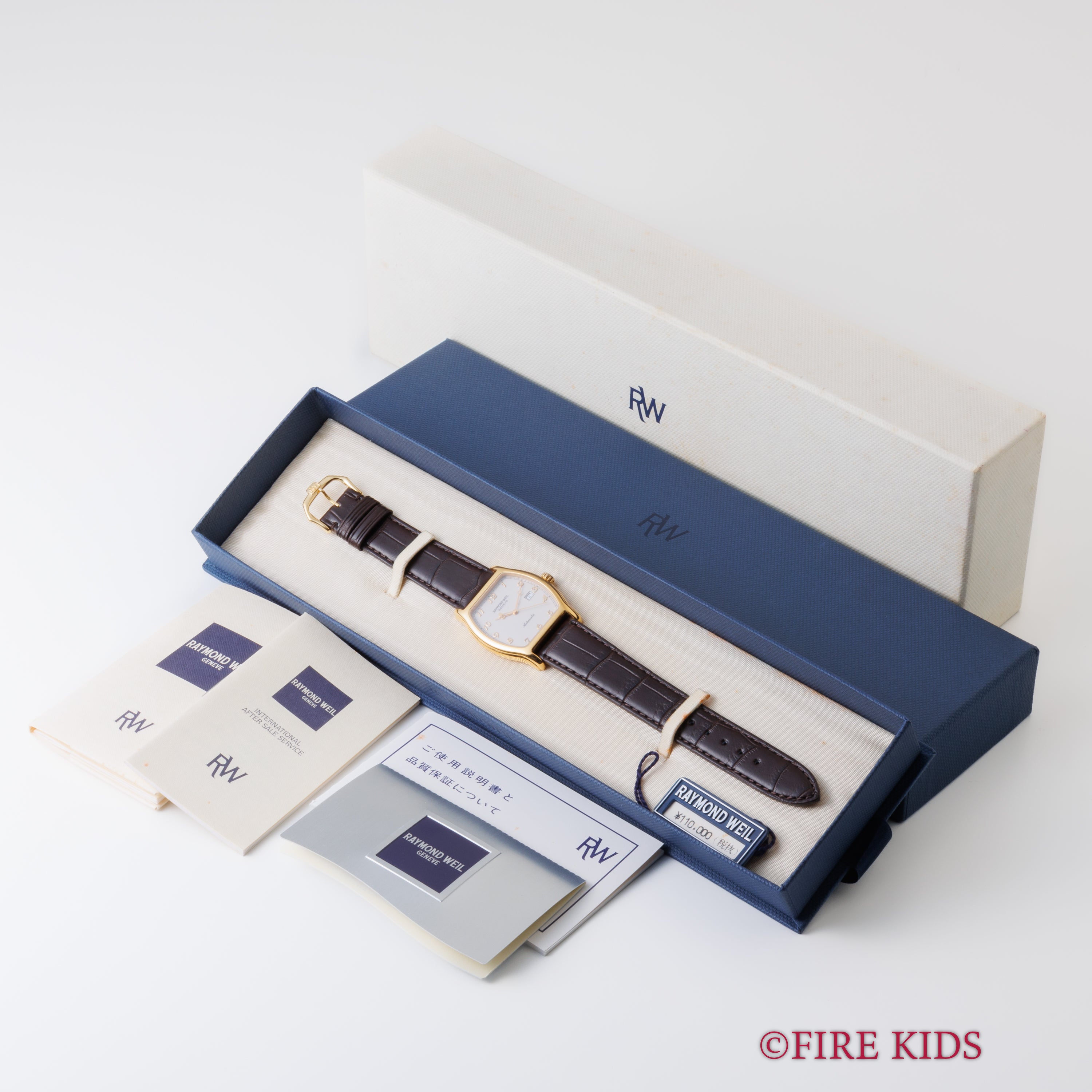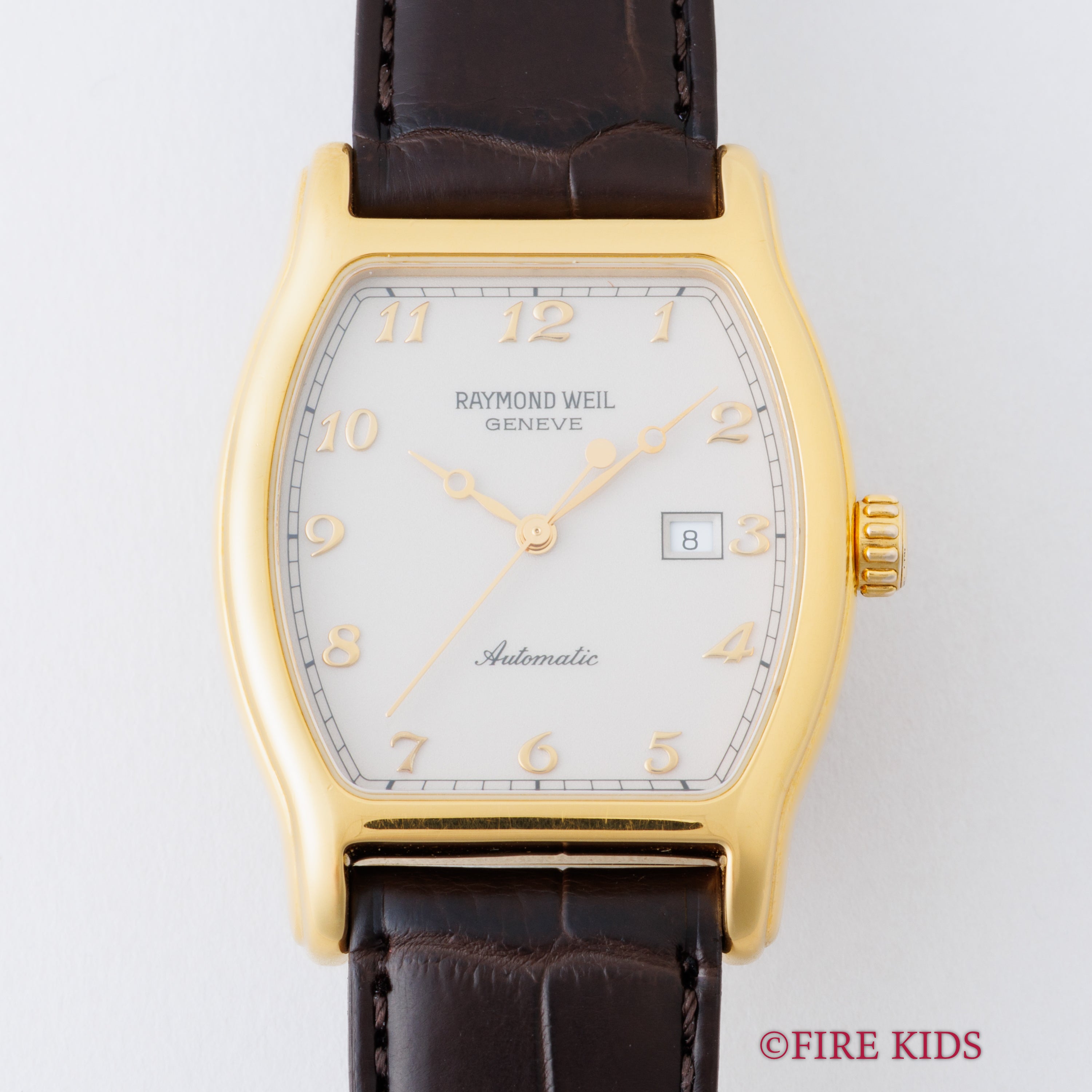 レイモンドウェイル 1995年製 トノー型GPケース 全アラビア数字 自動巻き 箱、ギャラ付き 純正尾錠付き