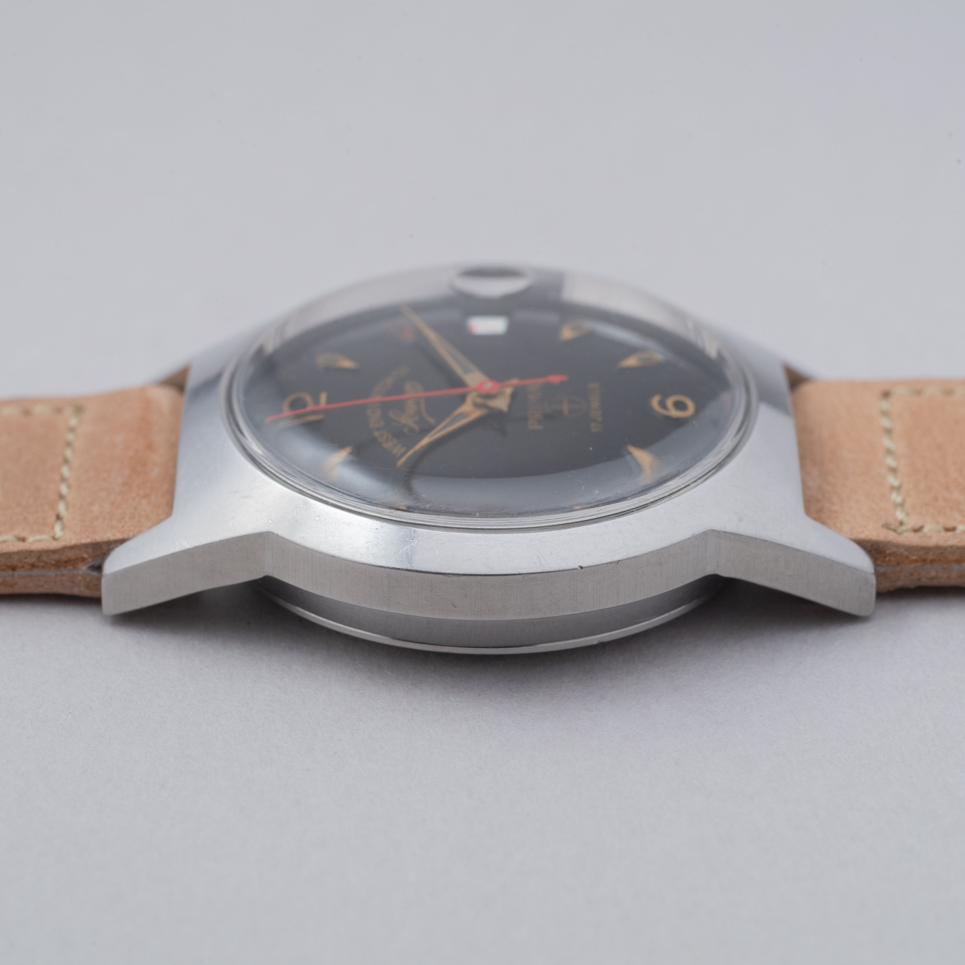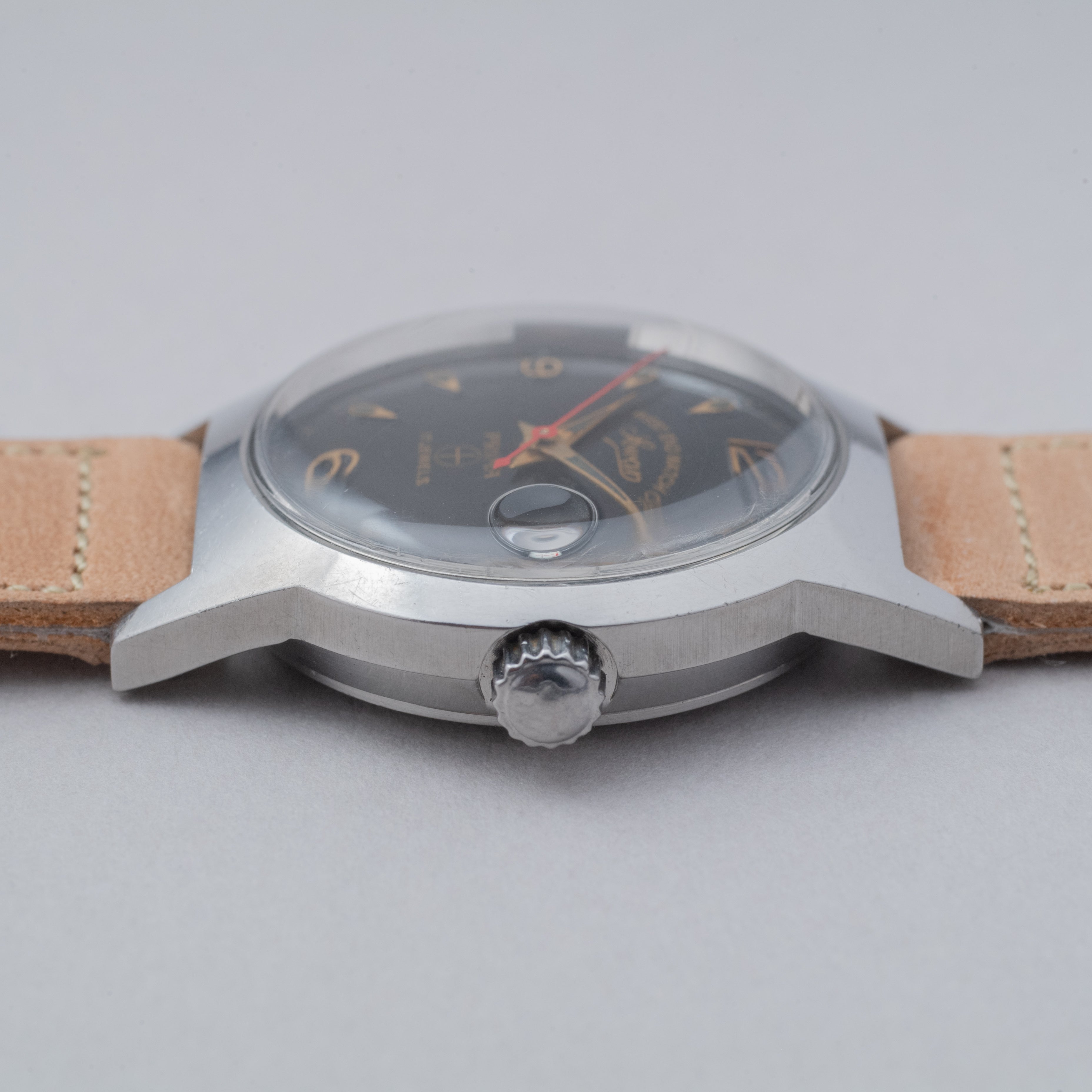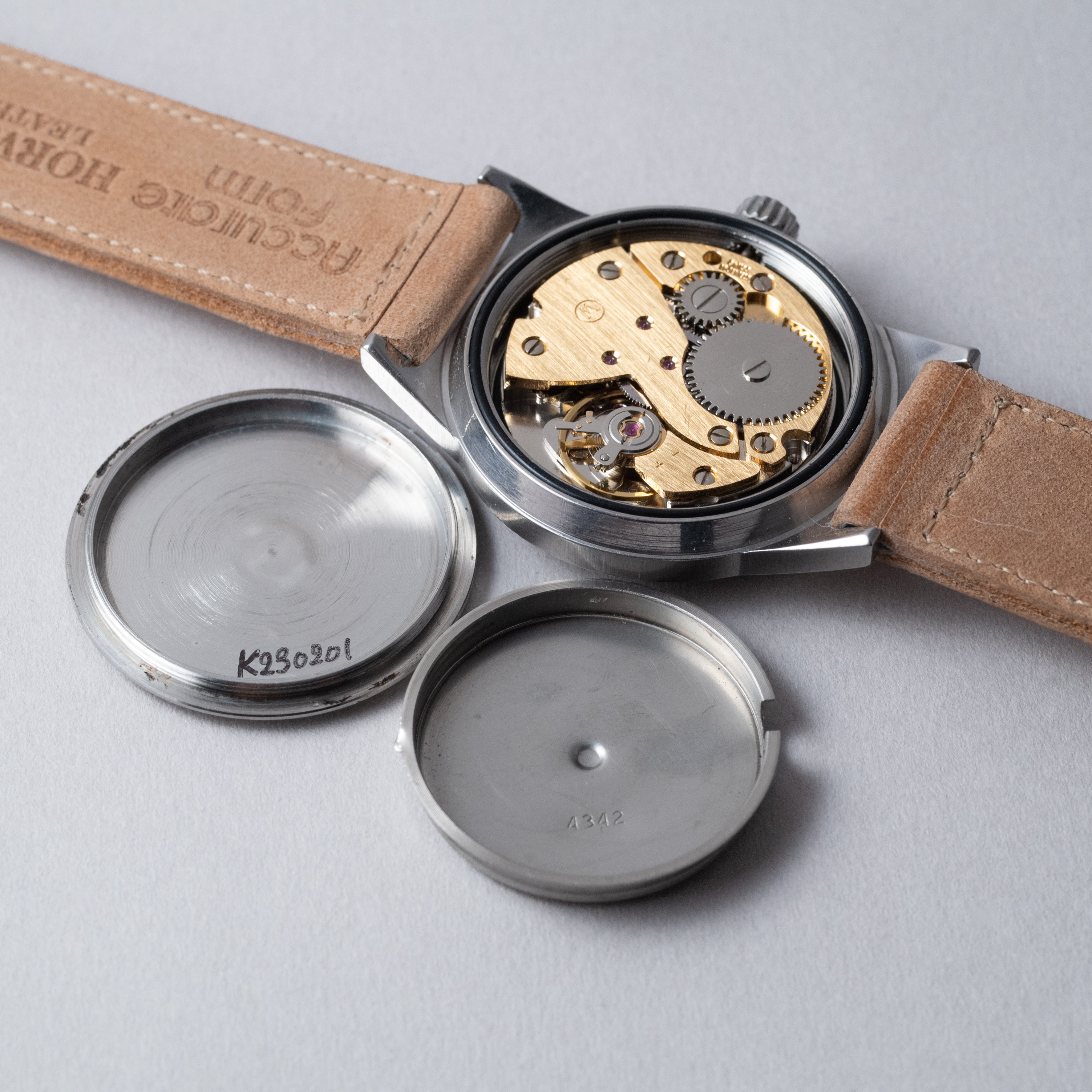 - ヴィンテージ時計の特性上、風防・パッキン・リューズ・バネ棒などの消耗部品は後年メンテナンス過程で交換されている場合がございます。オリジナル性を重視しておりますが、必要に応じて適切な部品にて調整されていますので、よりコレクション性重視のお求めのお客様は事前にご確認ください。