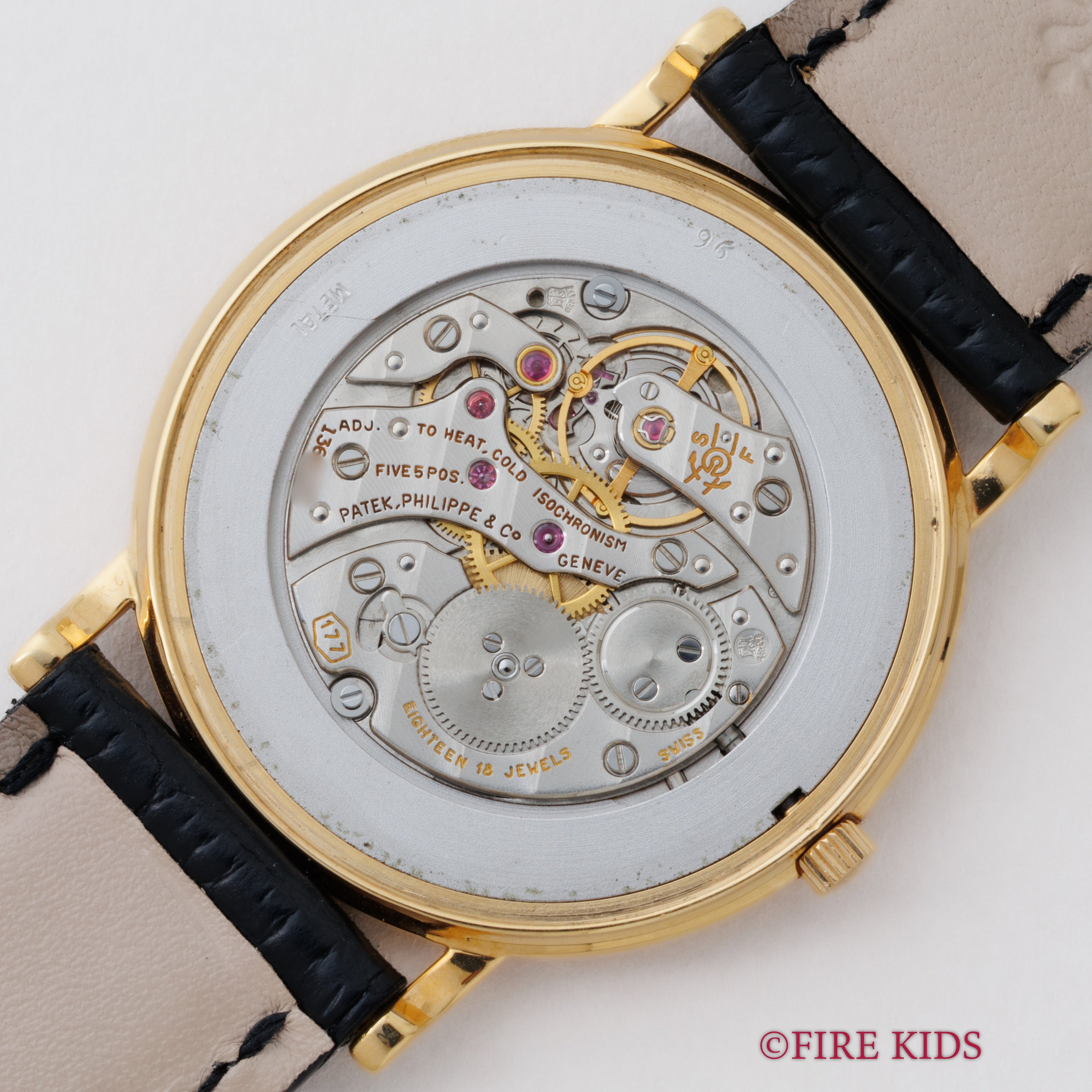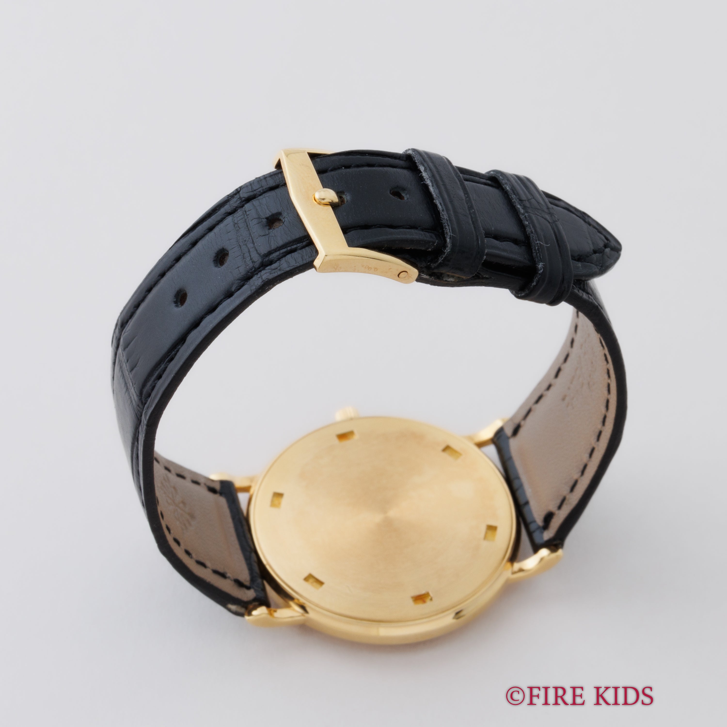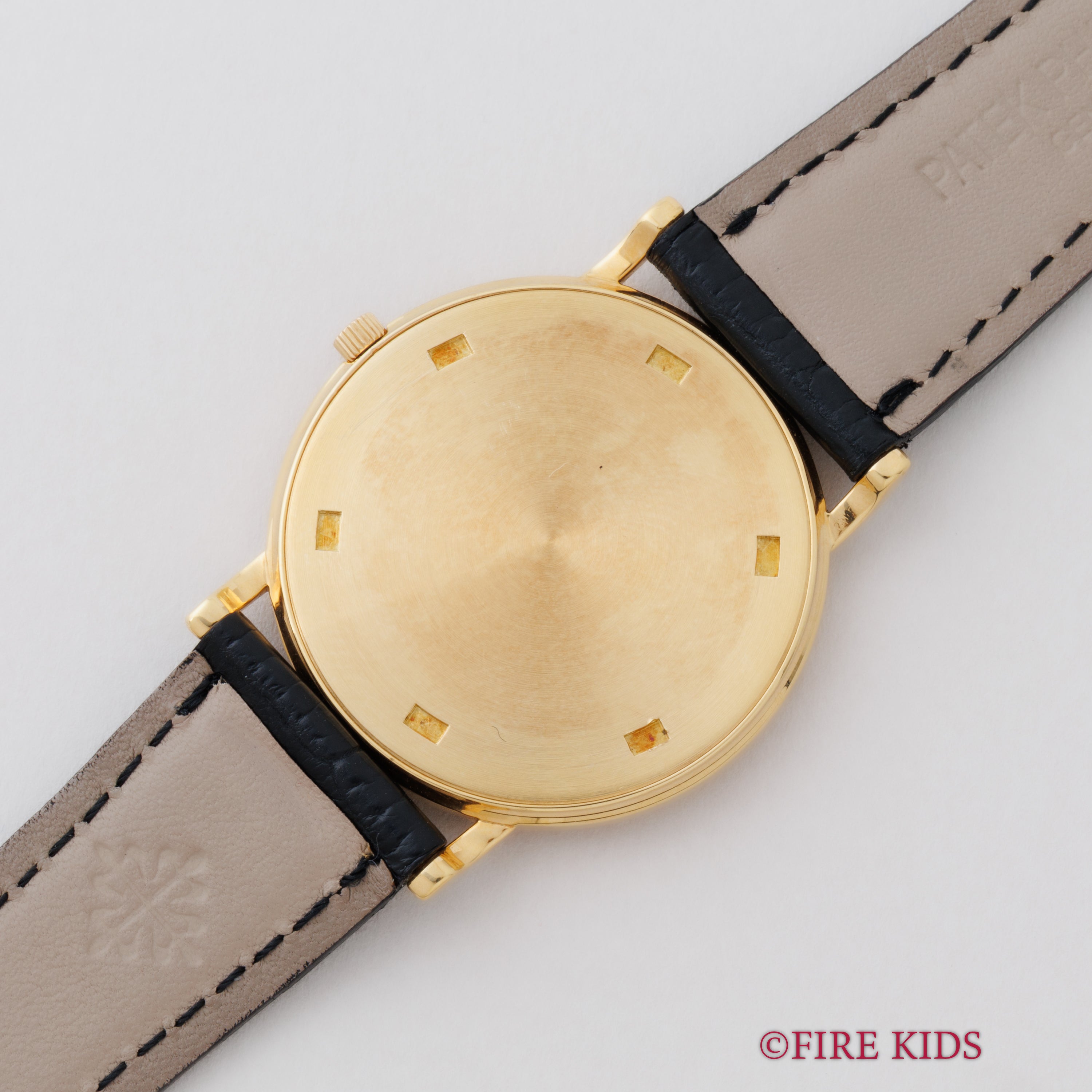パテックフィリップ 1990年代製 18金無垢イエローゴールド Ref.3520/D ラウンドケース ホワイトローマンダイヤル ベイヤーWネーム 手巻き 純正革ベルト、尾錠付き
