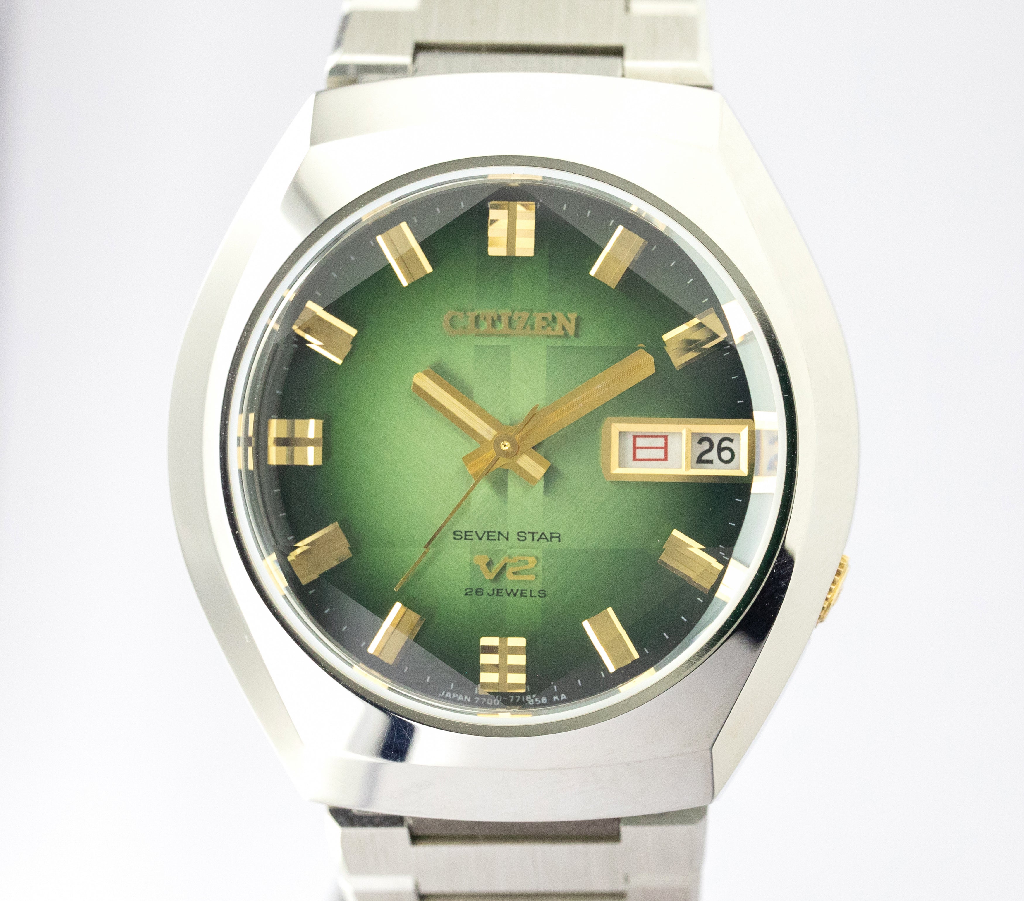 - ヴィンテージ時計の特性上、風防・パッキン・リューズ・バネ棒などの消耗部品は後年メンテナンス過程で交換されている場合がございます。オリジナル性を重視しておりますが、必要に応じて適切な部品にて調整されていますので、よりコレクション性重視のお求めのお客様は事前にご確認ください。