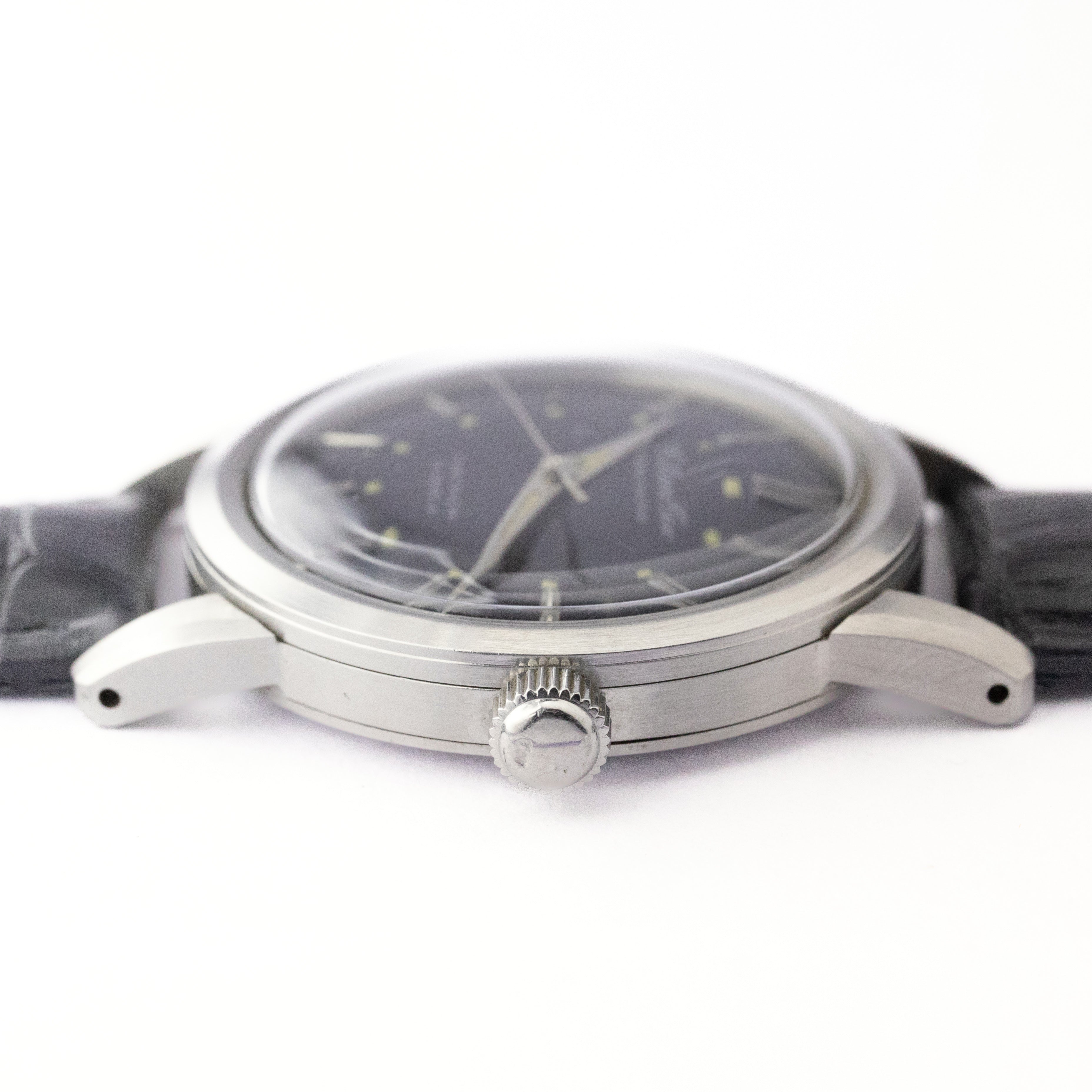 - ヴィンテージ時計の特性上、風防・パッキン・リューズ・バネ棒などの消耗部品は後年メンテナンス過程で交換されている場合がございます。オリジナル性を重視しておりますが、必要に応じて適切な部品にて調整されていますので、よりコレクション性重視のお求めのお客様は事前にご確認ください。