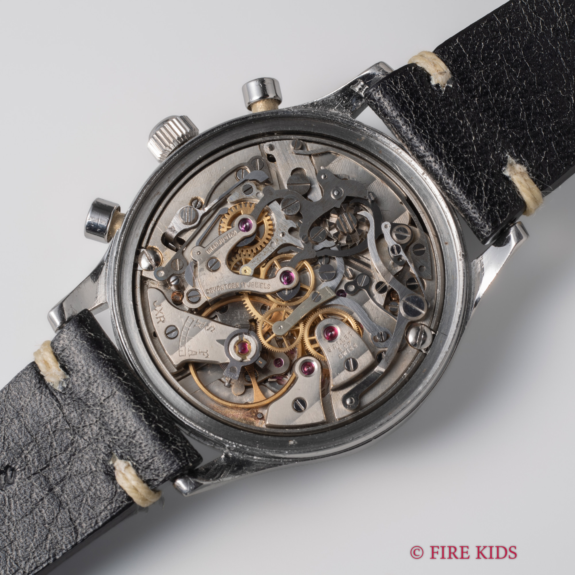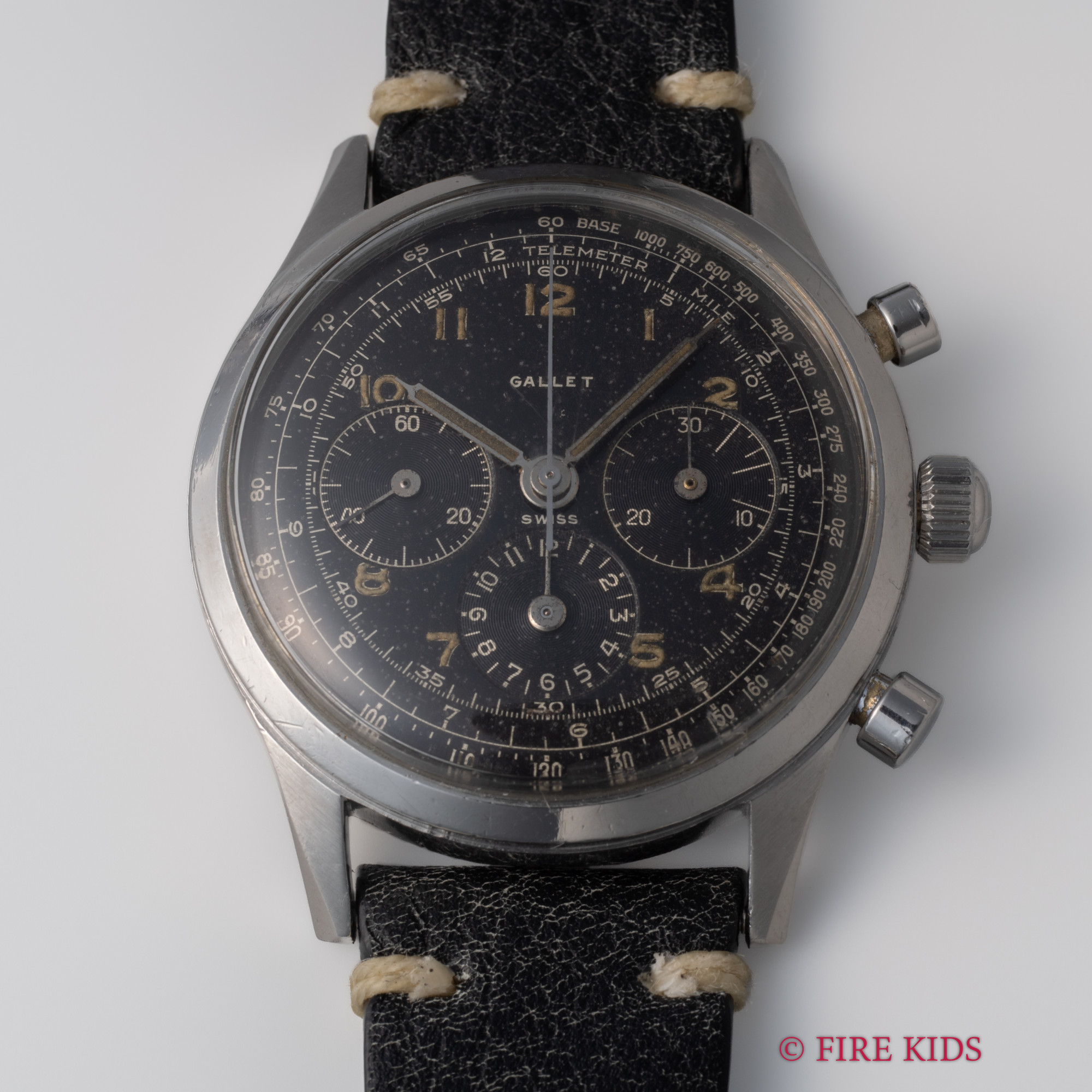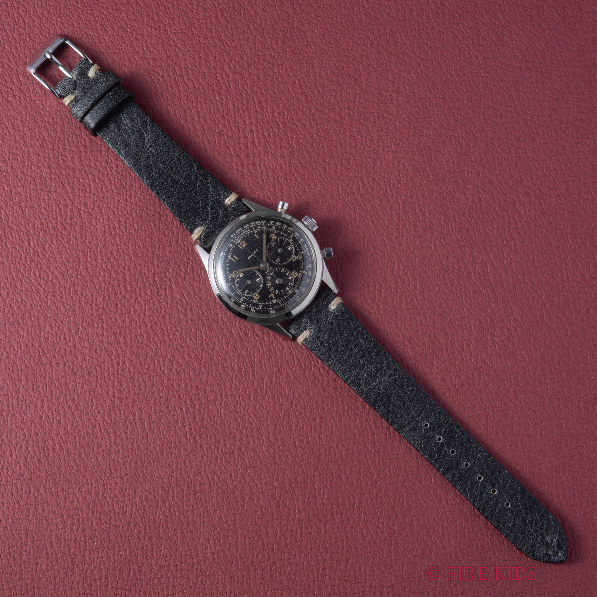 ギャレット 3レジスター クロノグラフ 1950年代製 Cal.4(エクセルシオパーク) 手巻き ブラックダイヤル スクリューバック