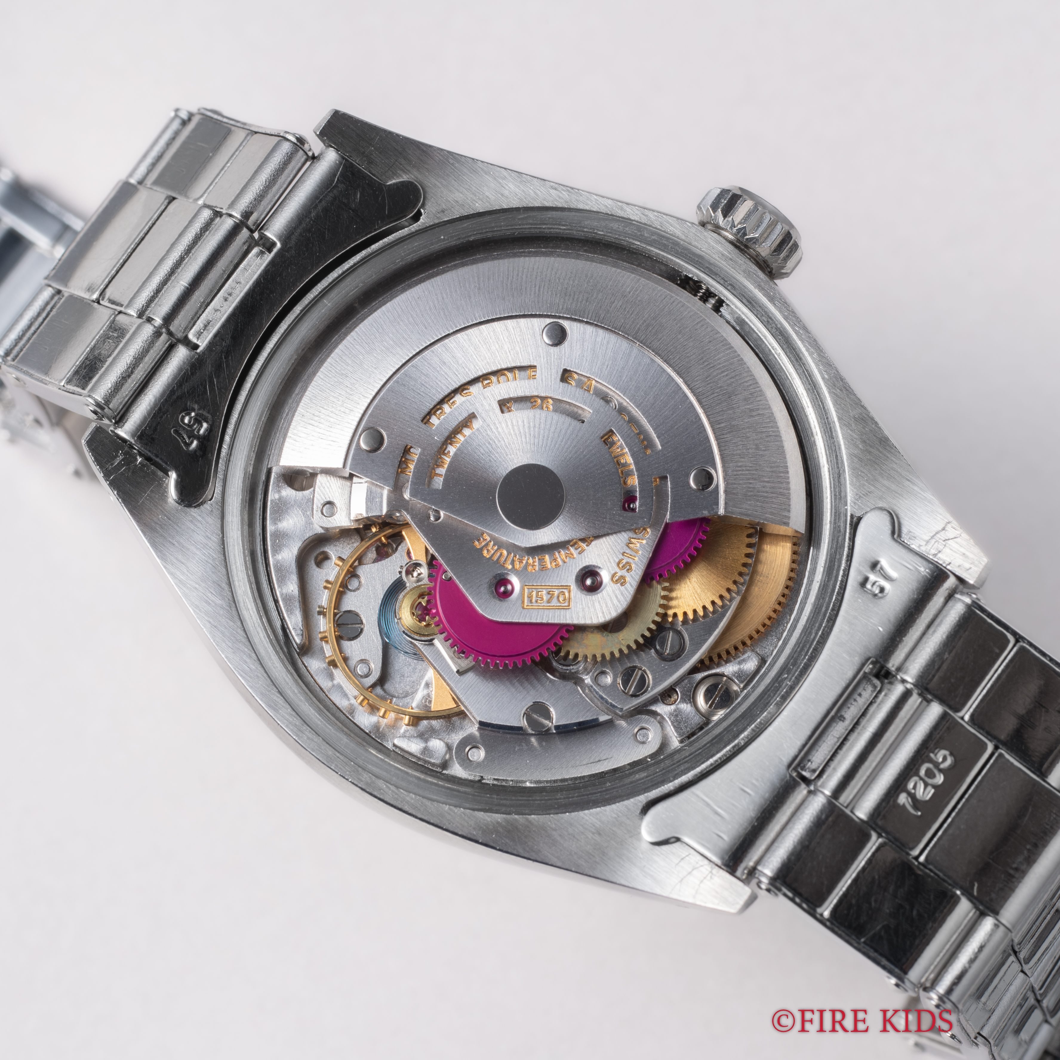 - ヴィンテージ時計の特性上、風防・パッキン・リューズ・バネ棒などの消耗部品は後年メンテナンス過程で交換されている場合がございます。オリジナル性を重視しておりますが、必要に応じて適切な部品にて調整されていますので、よりコレクション性重視のお求めのお客様は事前にご確認ください。