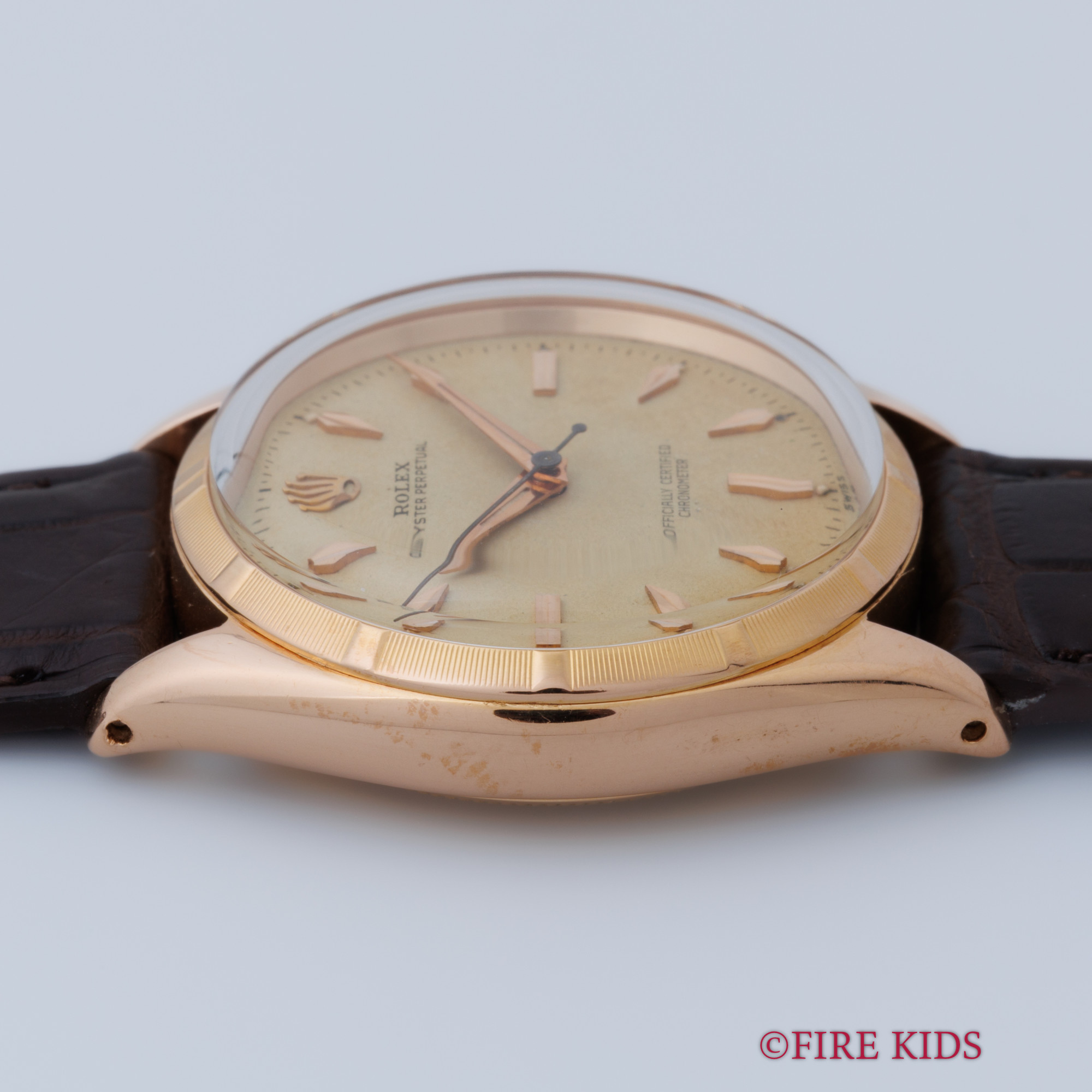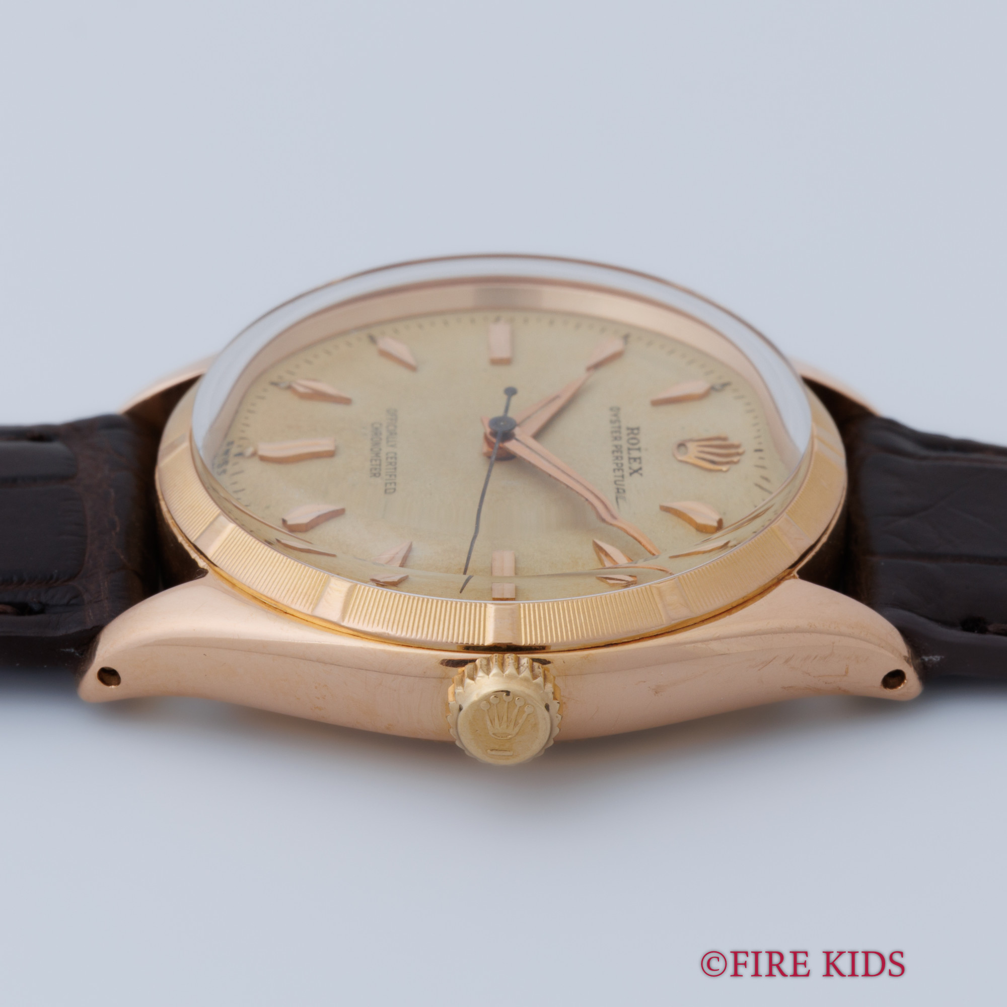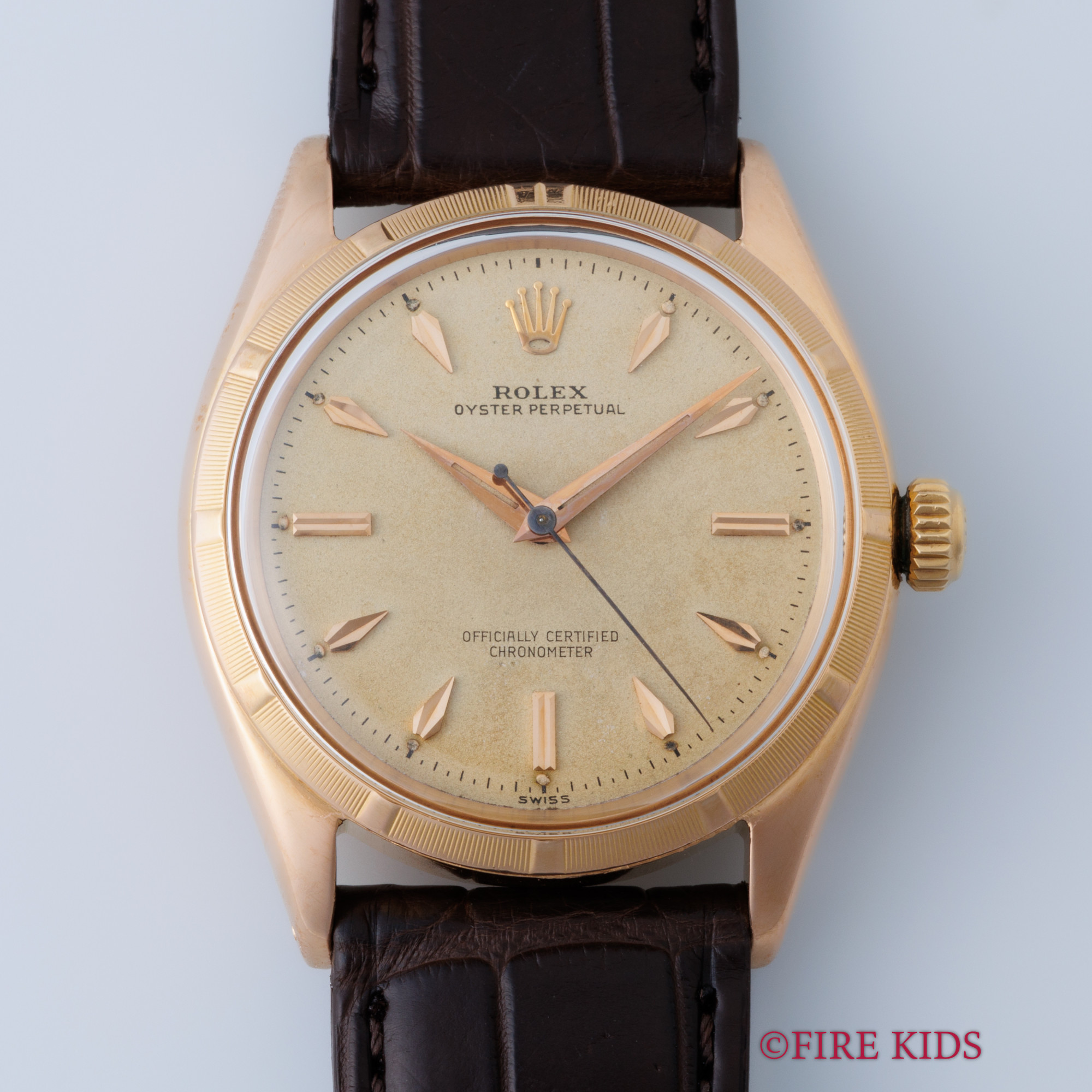 ロレックス オイスターパーペチュアル Ref.6565 18金ピンクゴールド 1958年製 Cal.1030 ノンデイト自動巻き エンジンターンドベゼル