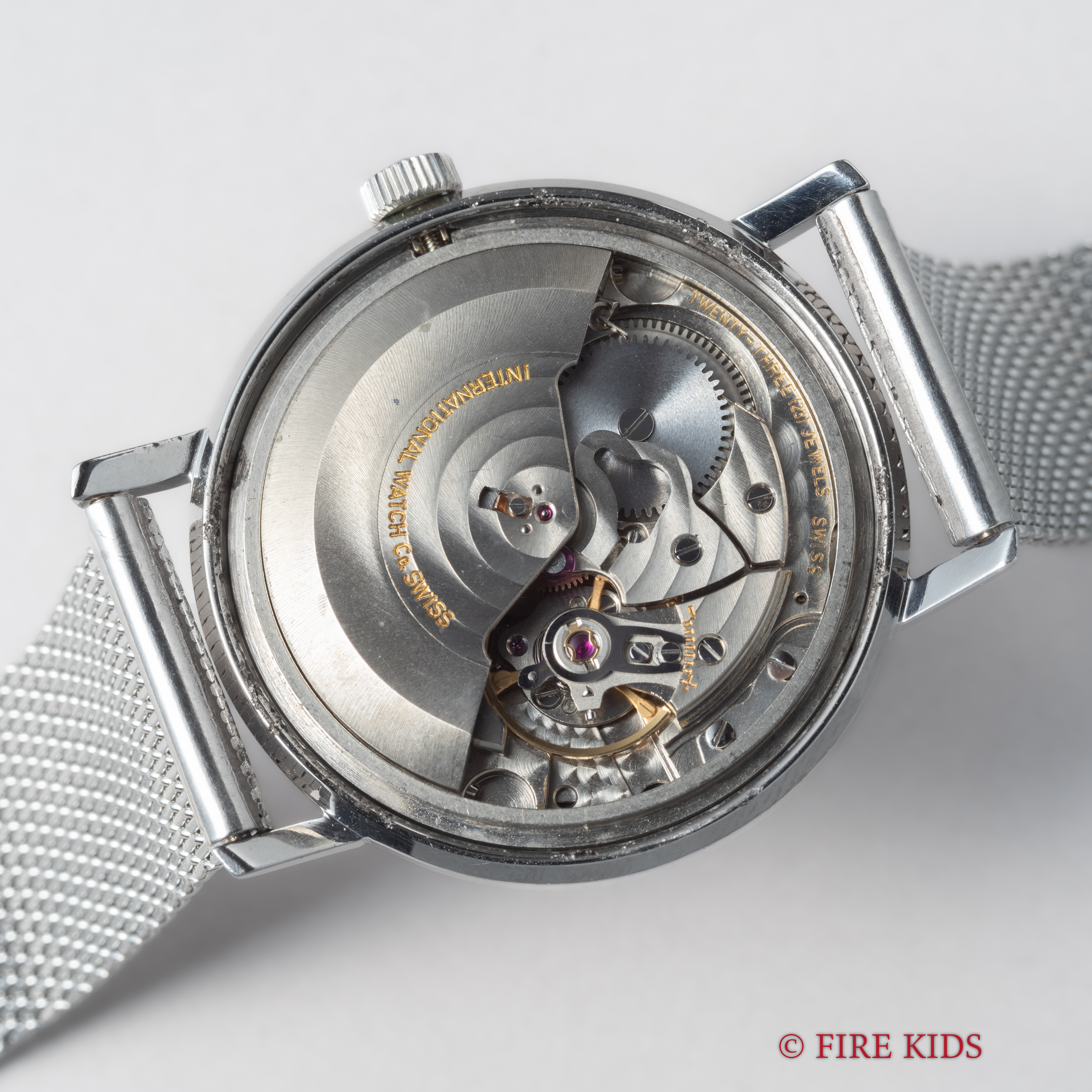 IWC ラウンドケース 1978年製 シルバーダイヤル ペラトン式自動巻き Cal.8541B お魚リューズ 純正メッシュブレス