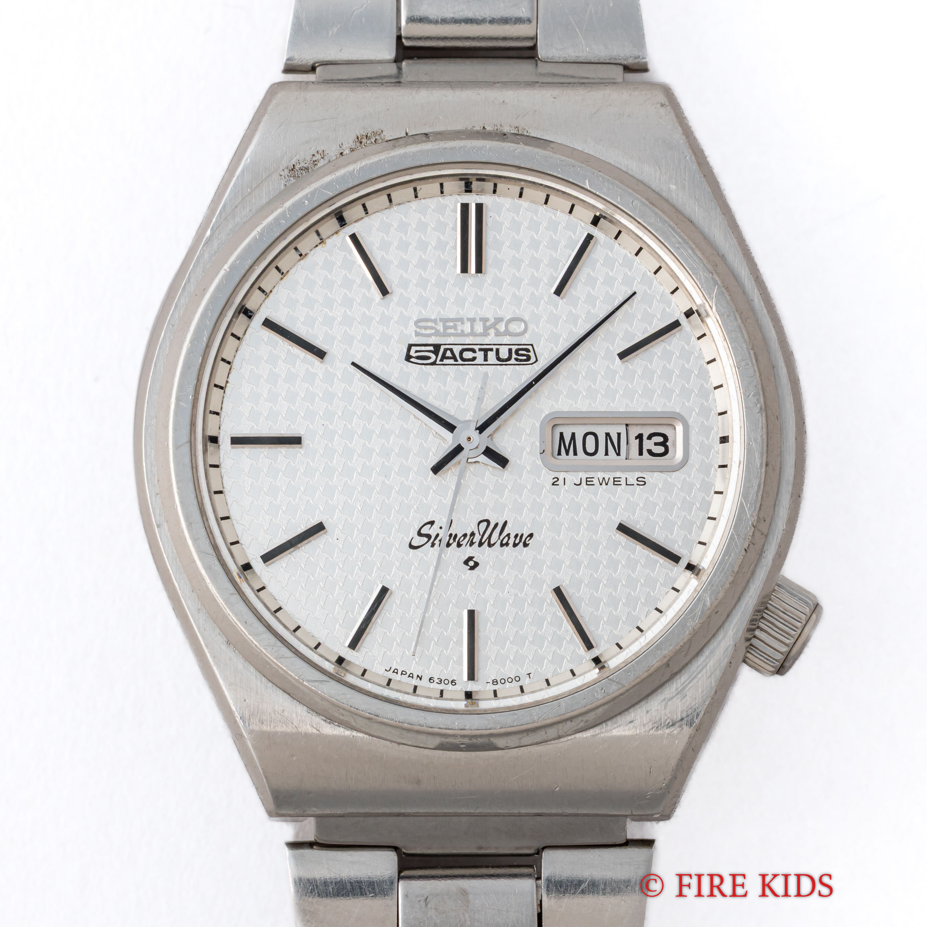 セイコー 5アクタス シルバーウェーブ 1976年製 Ref.6306-8010 自動巻き ねじ込みリューズ ハウンドトゥースダイヤル デイデイト 純正ブレス