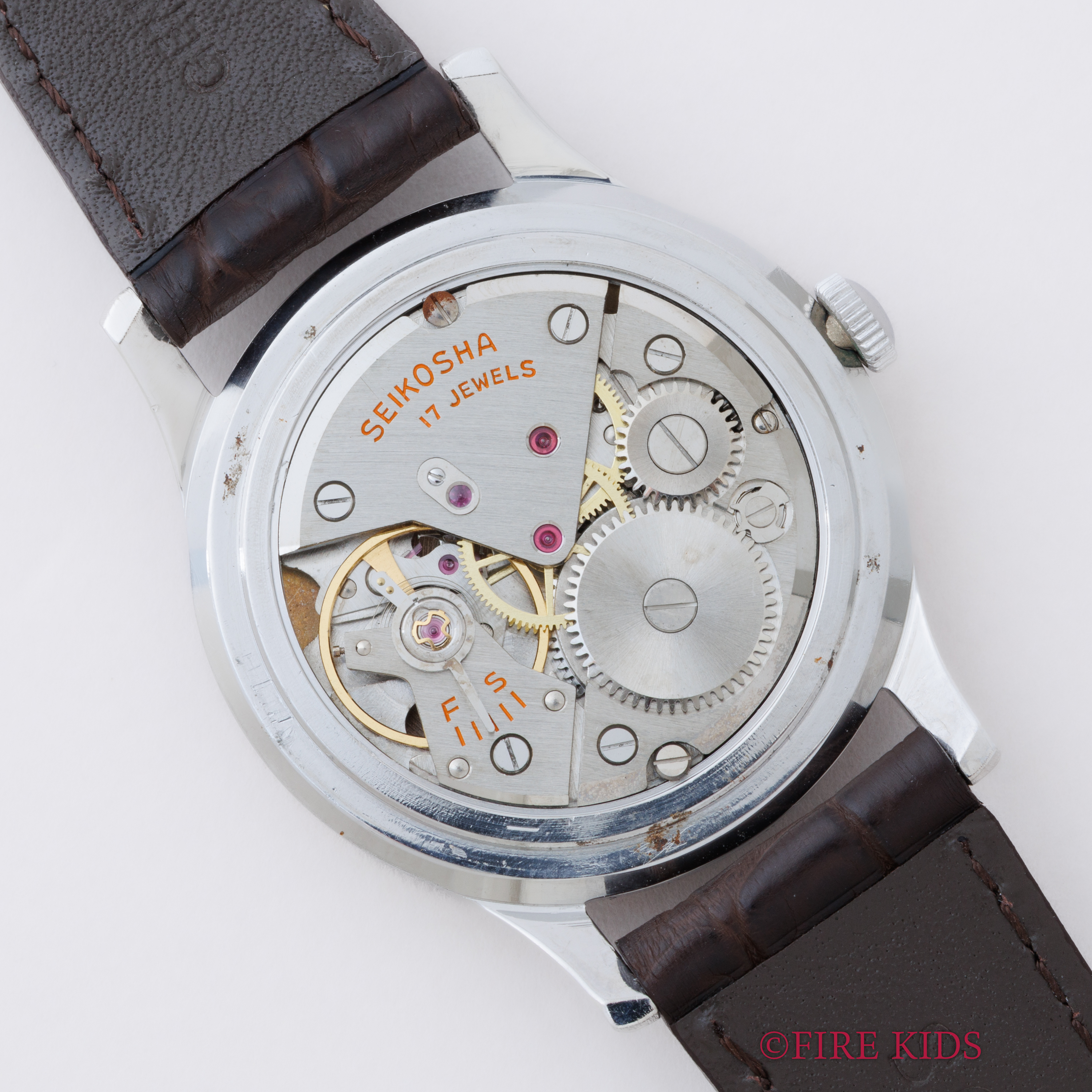 - ヴィンテージ時計の特性上、風防・パッキン・リューズ・バネ棒などの消耗部品は後年メンテナンス過程で交換されている場合がございます。オリジナル性を重視しておりますが、必要に応じて適切な部品にて調整されていますので、よりコレクション性重視のお求めのお客様は事前にご確認ください。