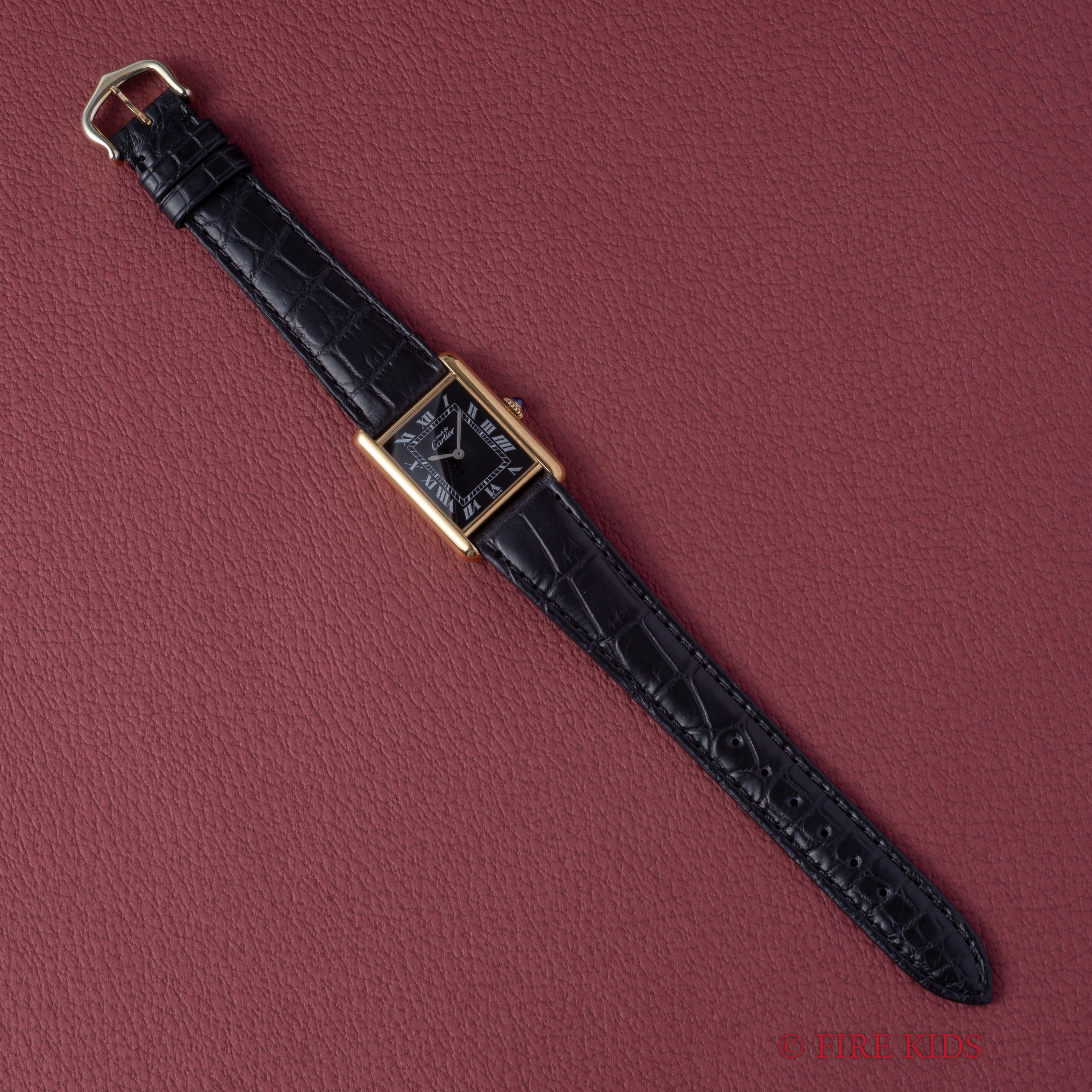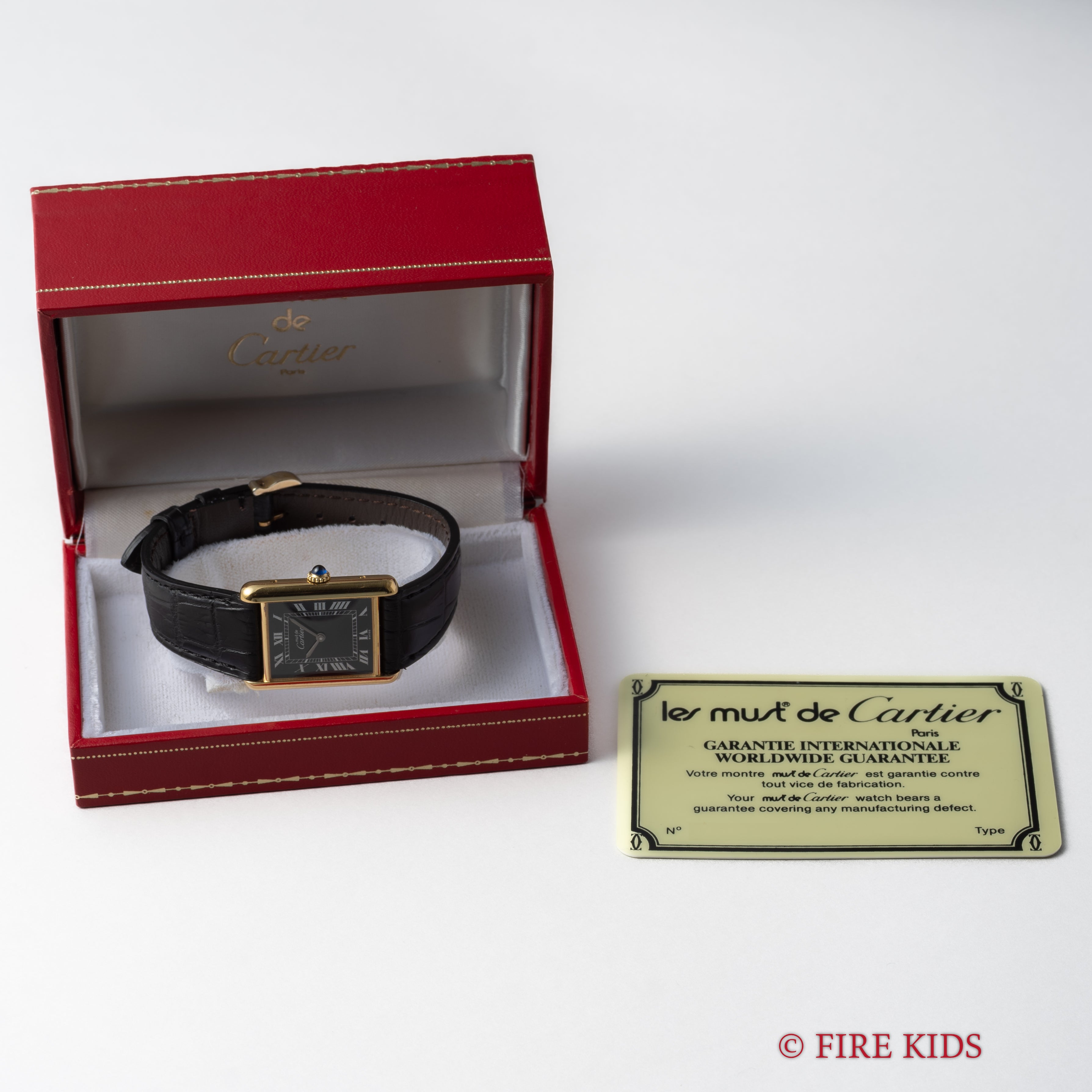 カルティエ マストタンク 1980年代製 LMサイズ ブラックローマンダイヤル 手巻 純正尾錠 箱ギャラ付