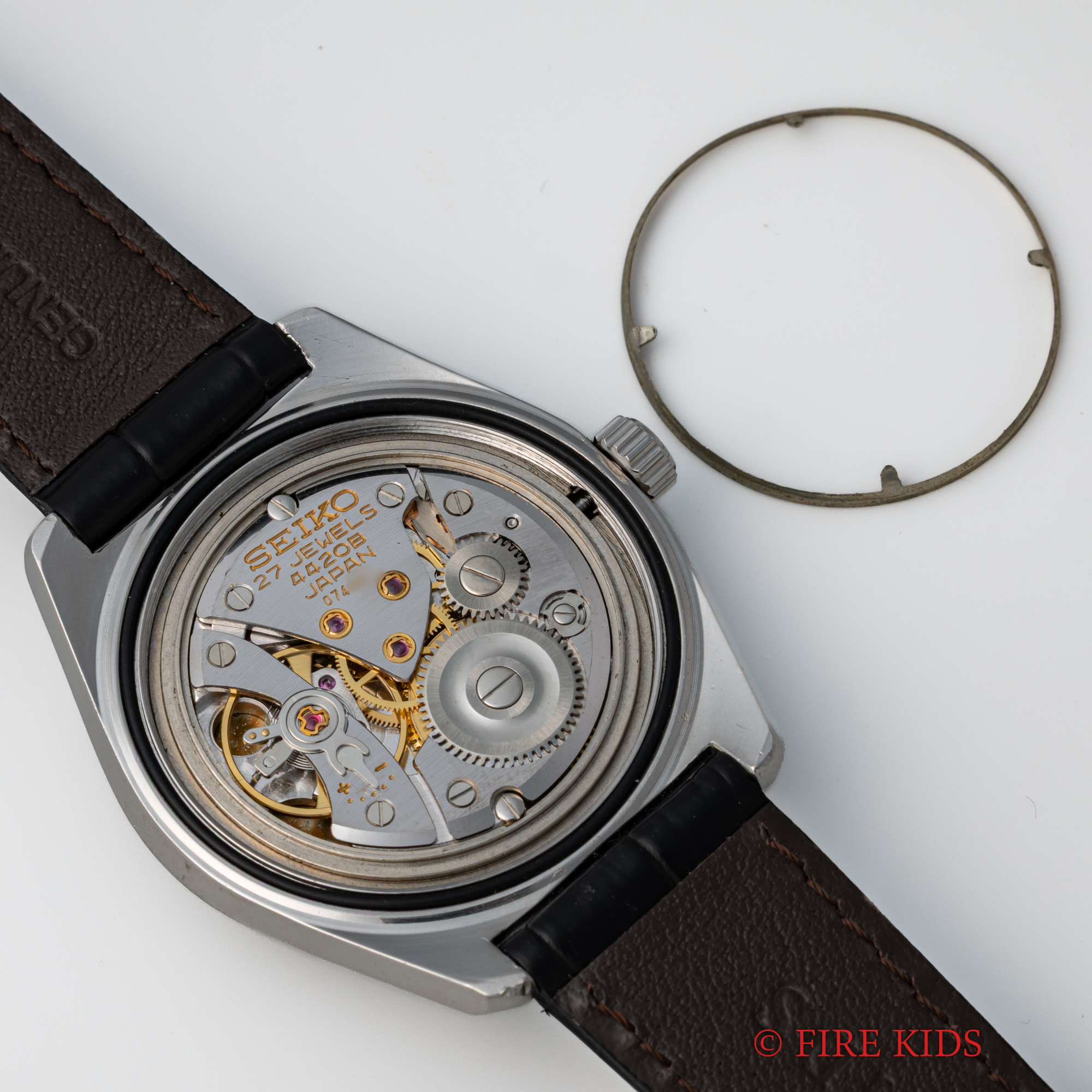 - ヴィンテージ時計の特性上、風防・パッキン・リューズ・バネ棒などの消耗部品は後年メンテナンス過程で交換されている場合がございます。オリジナル性を重視しておりますが、必要に応じて適切な部品にて調整されていますので、よりコレクション性重視のお求めのお客様は事前にご確認ください。