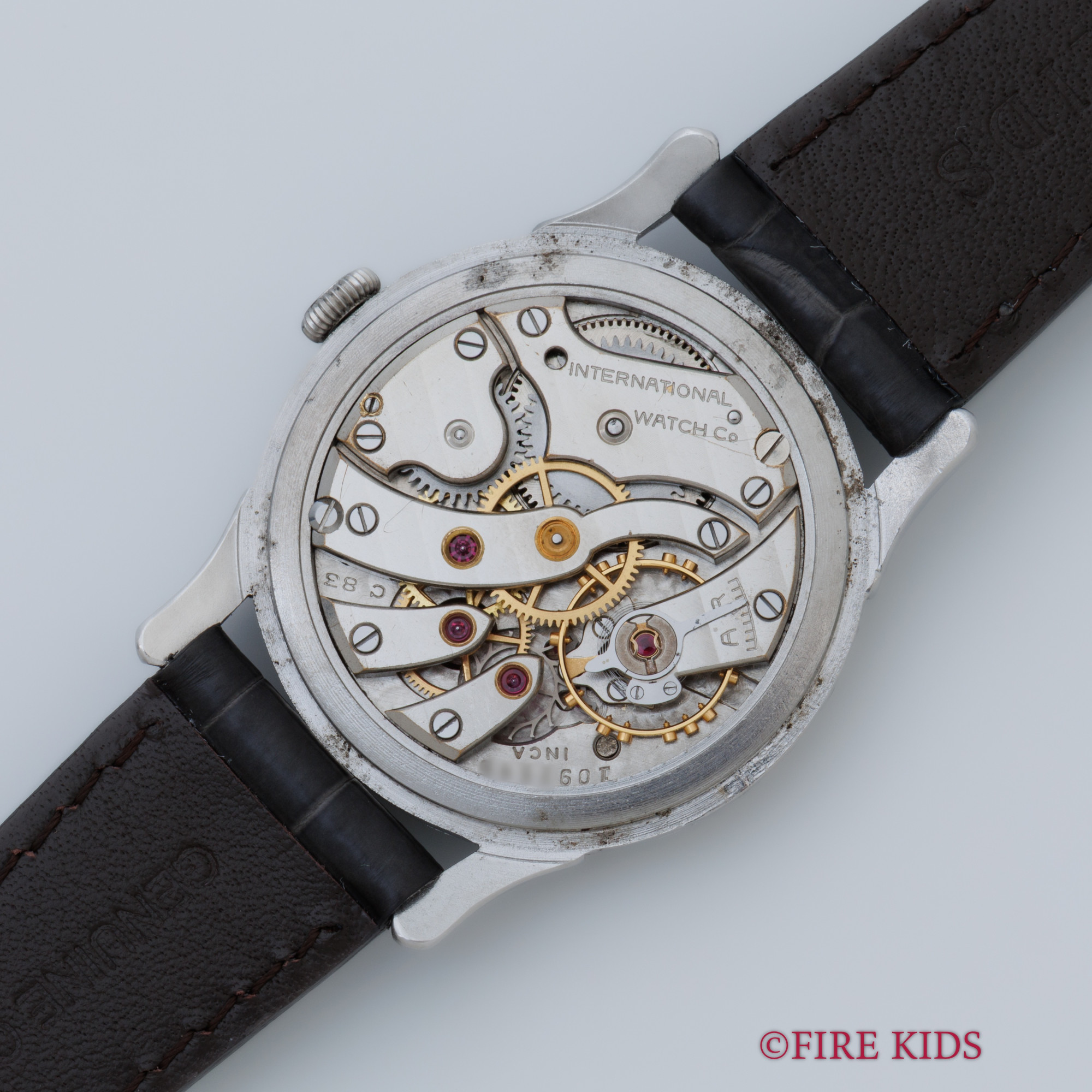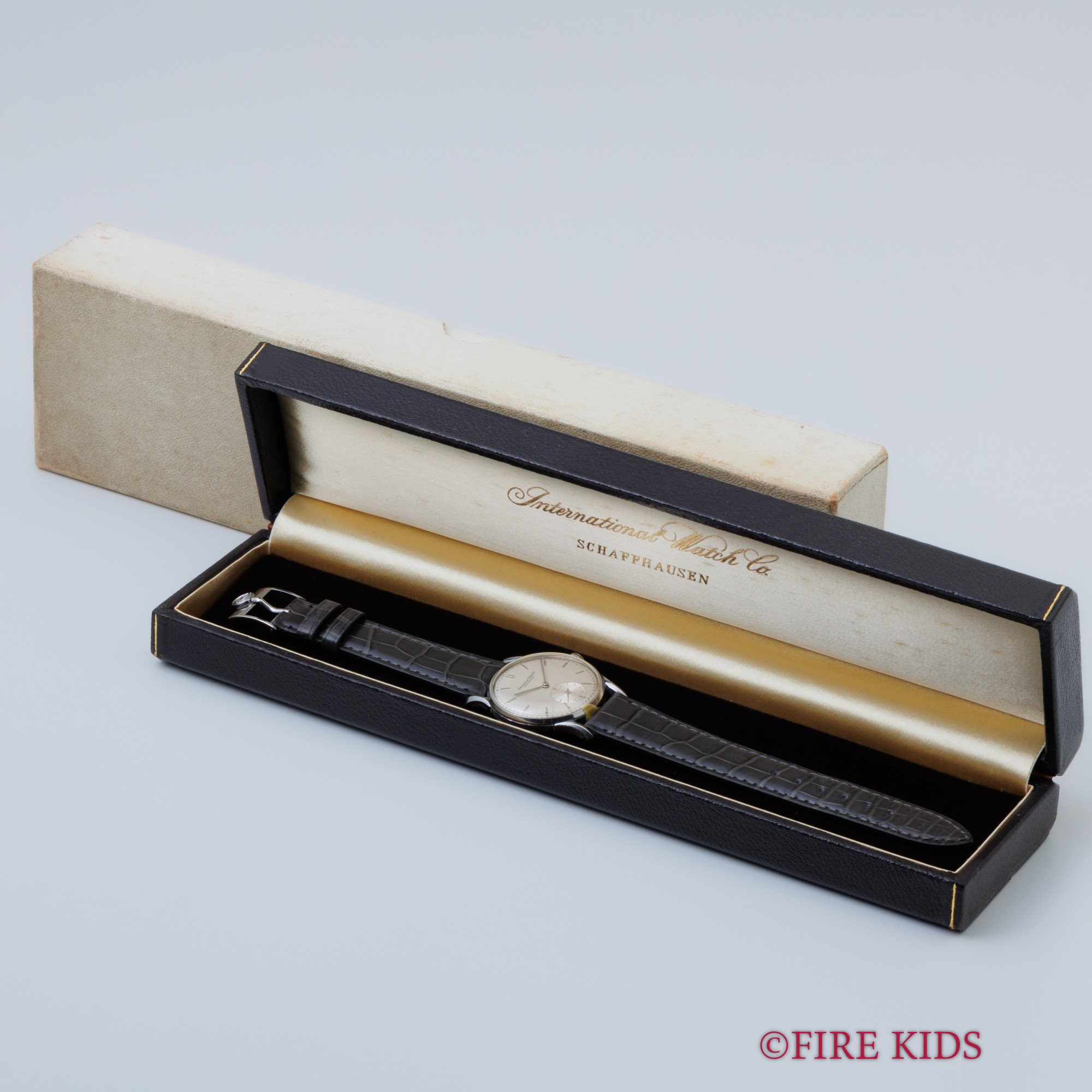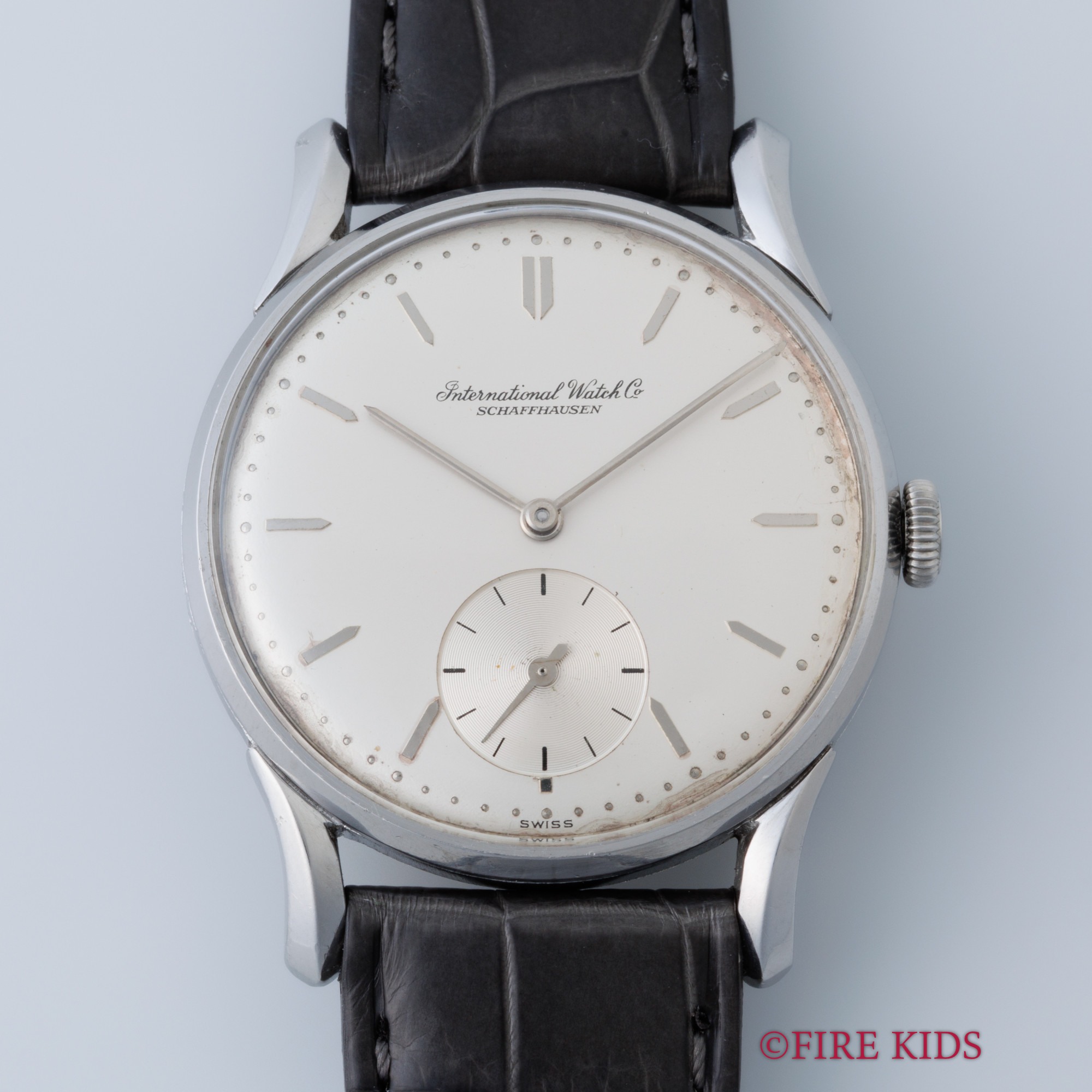 IWC ラウンドケース Cal.83 手巻き ファンシーラグ スモールセコンド 1945年製 純正尾錠、箱付き