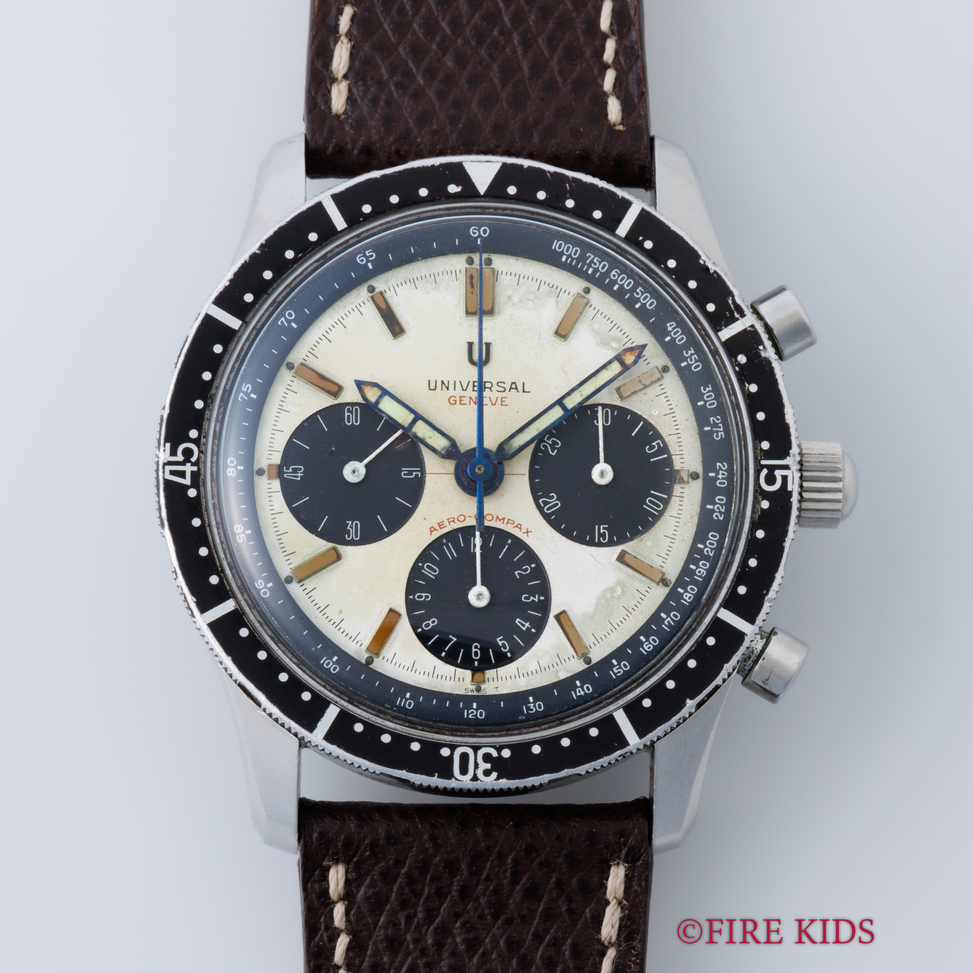 ユニバーサルジュネーブ エアロコンパックス 1960年代製 回転ベゼル バルジュー72 手巻きクロノグラフ