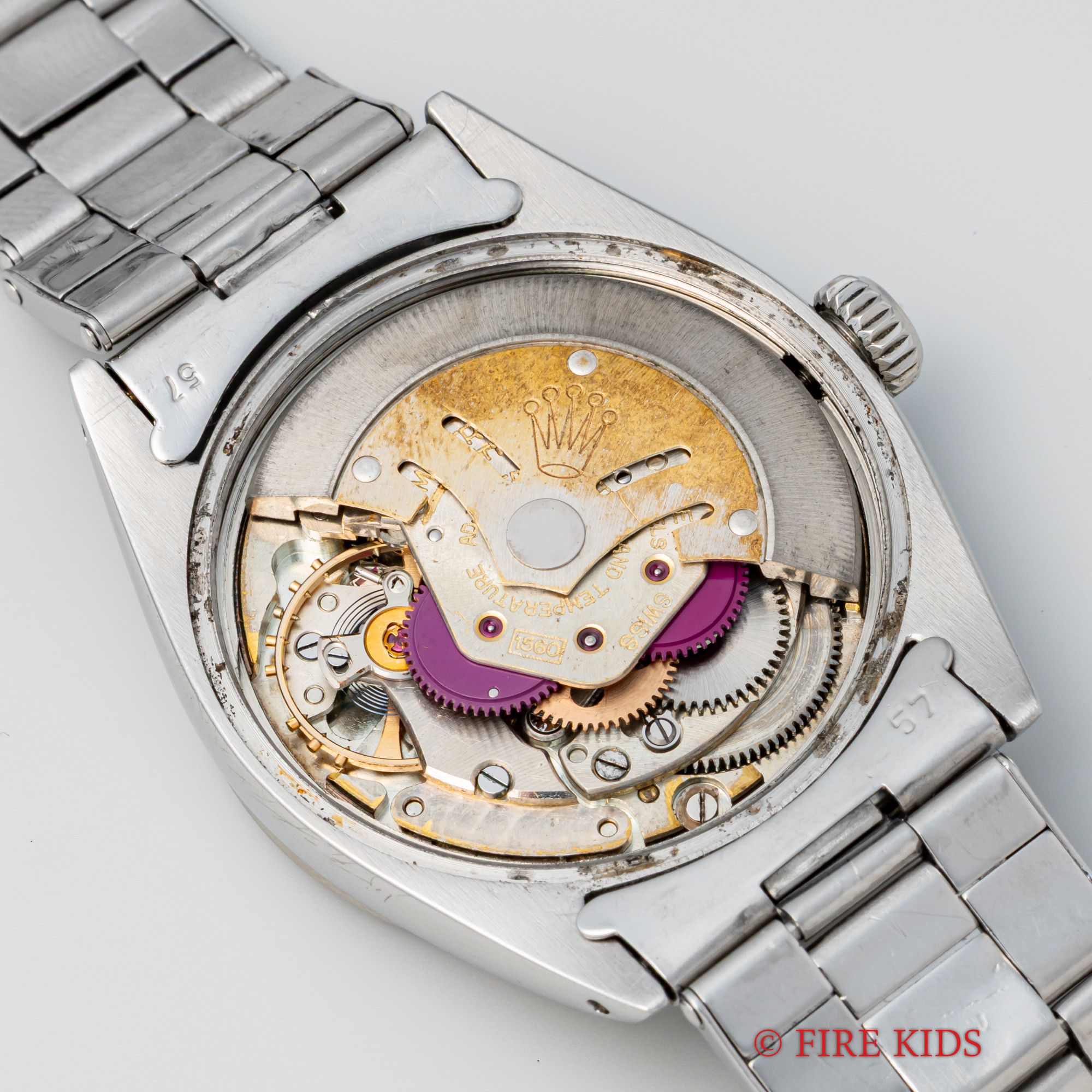 - ヴィンテージ時計の特性上、風防・パッキン・リューズ・バネ棒などの消耗部品は後年メンテナンス過程で交換されている場合がございます。オリジナル性を重視しておりますが、必要に応じて適切な部品にて調整されていますので、よりコレクション性重視のお求めのお客様は事前にご確認ください。