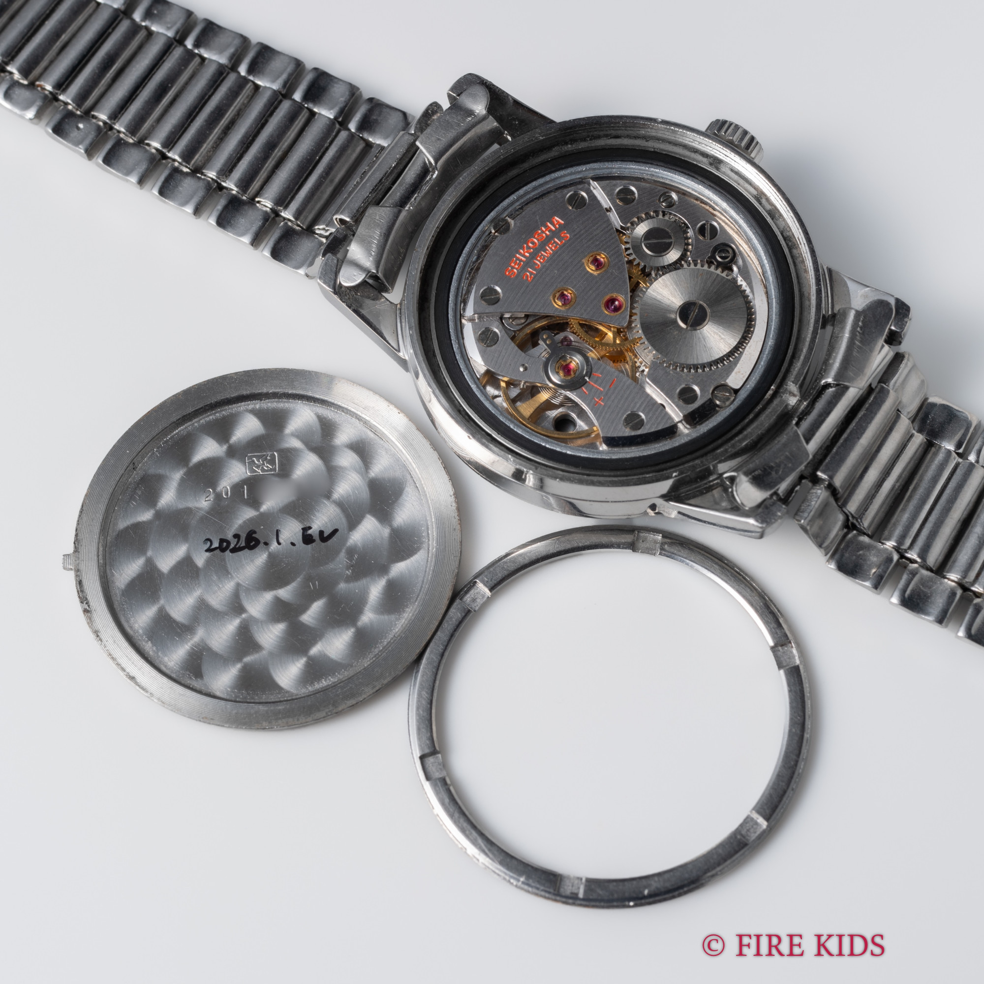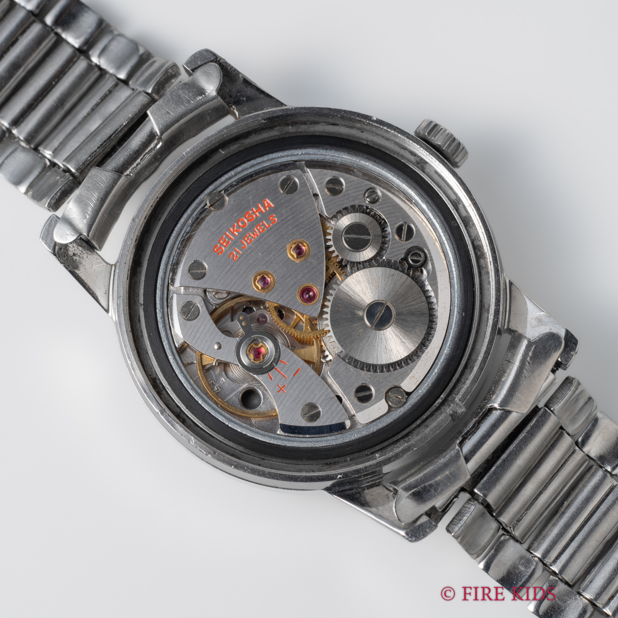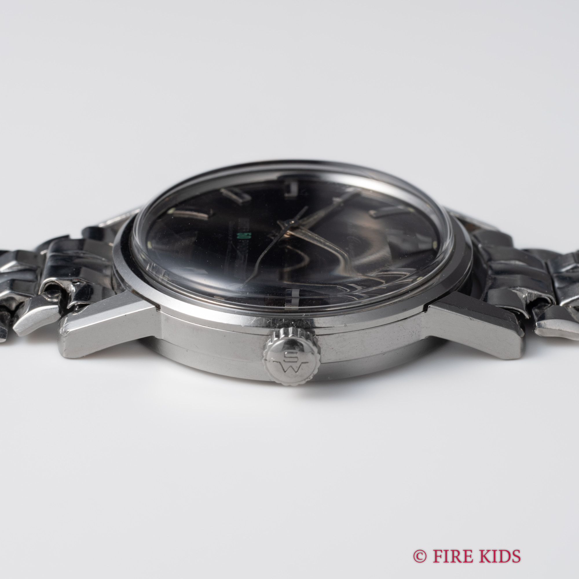 - ヴィンテージ時計の特性上、風防・パッキン・リューズ・バネ棒などの消耗部品は後年メンテナンス過程で交換されている場合がございます。オリジナル性を重視しておりますが、必要に応じて適切な部品にて調整されていますので、よりコレクション性重視のお求めのお客様は事前にご確認ください。
