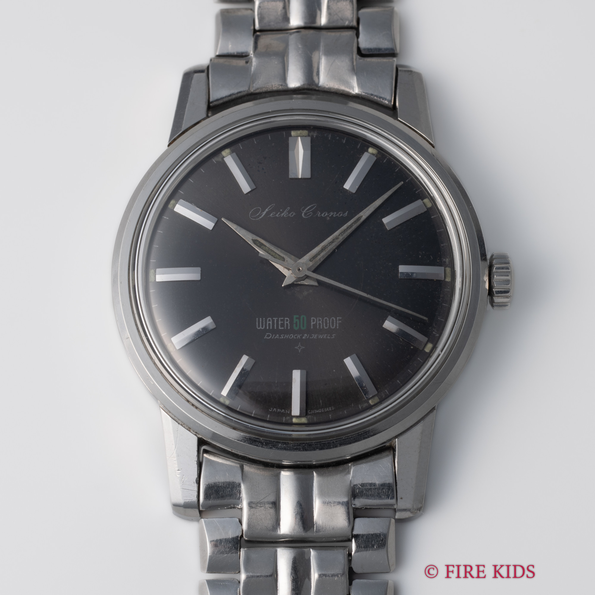 セイコー クロノス ブラックダイヤル 純正ブレス付き 1962年製 手巻き スクリューバックケース タツノオトシゴ 箱、冊子付