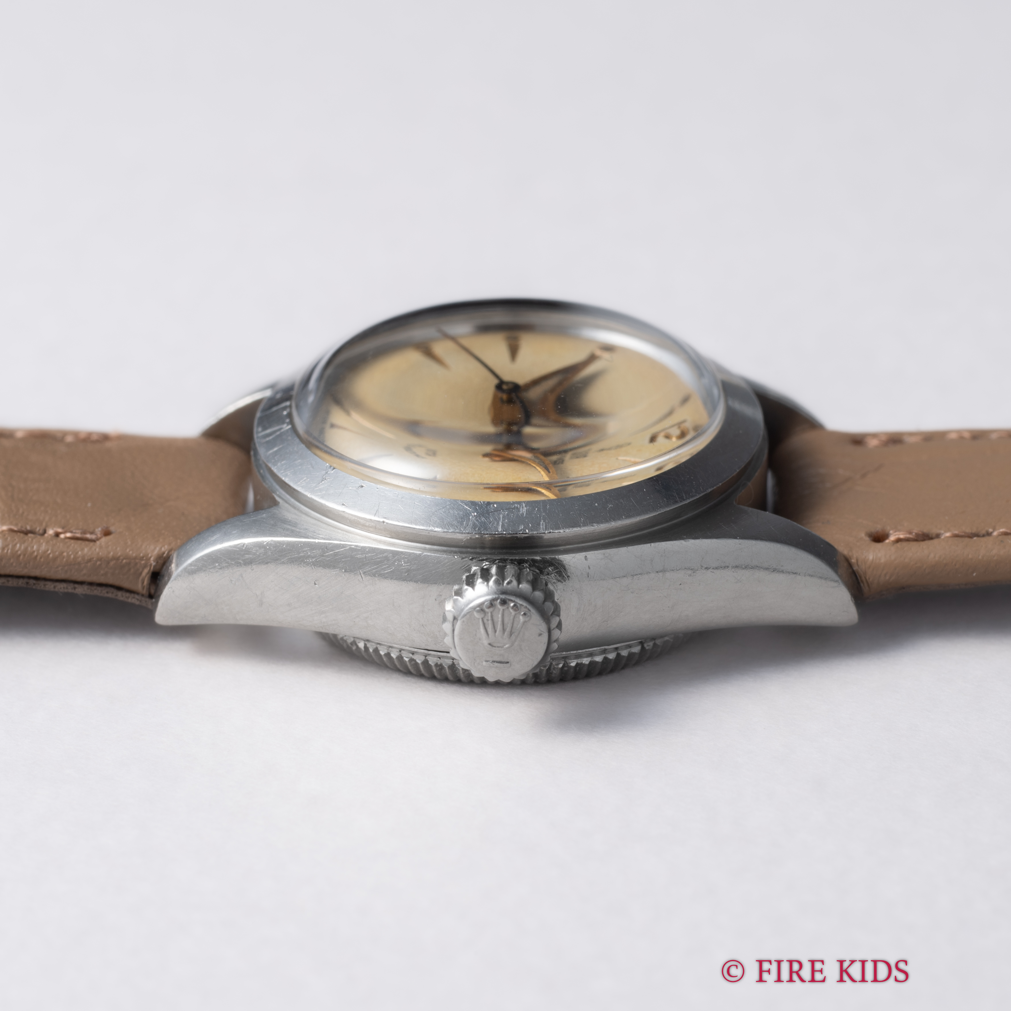 - ヴィンテージ時計の特性上、風防・パッキン・リューズ・バネ棒などの消耗部品は後年メンテナンス過程で交換されている場合がございます。オリジナル性を重視しておりますが、必要に応じて適切な部品にて調整されていますので、よりコレクション性重視のお求めのお客様は事前にご確認ください。