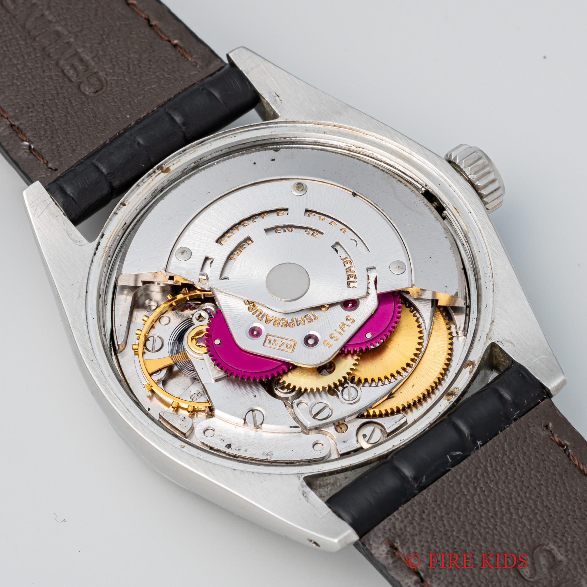 - ヴィンテージ時計の特性上、風防・パッキン・リューズ・バネ棒などの消耗部品は後年メンテナンス過程で交換されている場合がございます。オリジナル性を重視しておりますが、必要に応じて適切な部品にて調整されていますので、よりコレクション性重視のお求めのお客様は事前にご確認ください。
