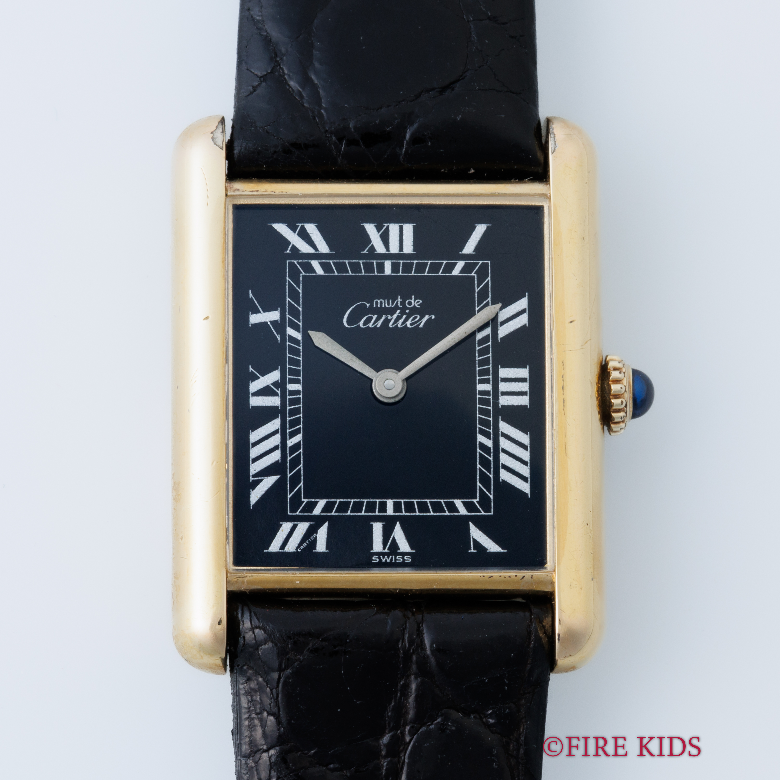 カルティエ マストタンク 1980年代製 手巻き 純正尾錠 ブラックローマンダイヤル