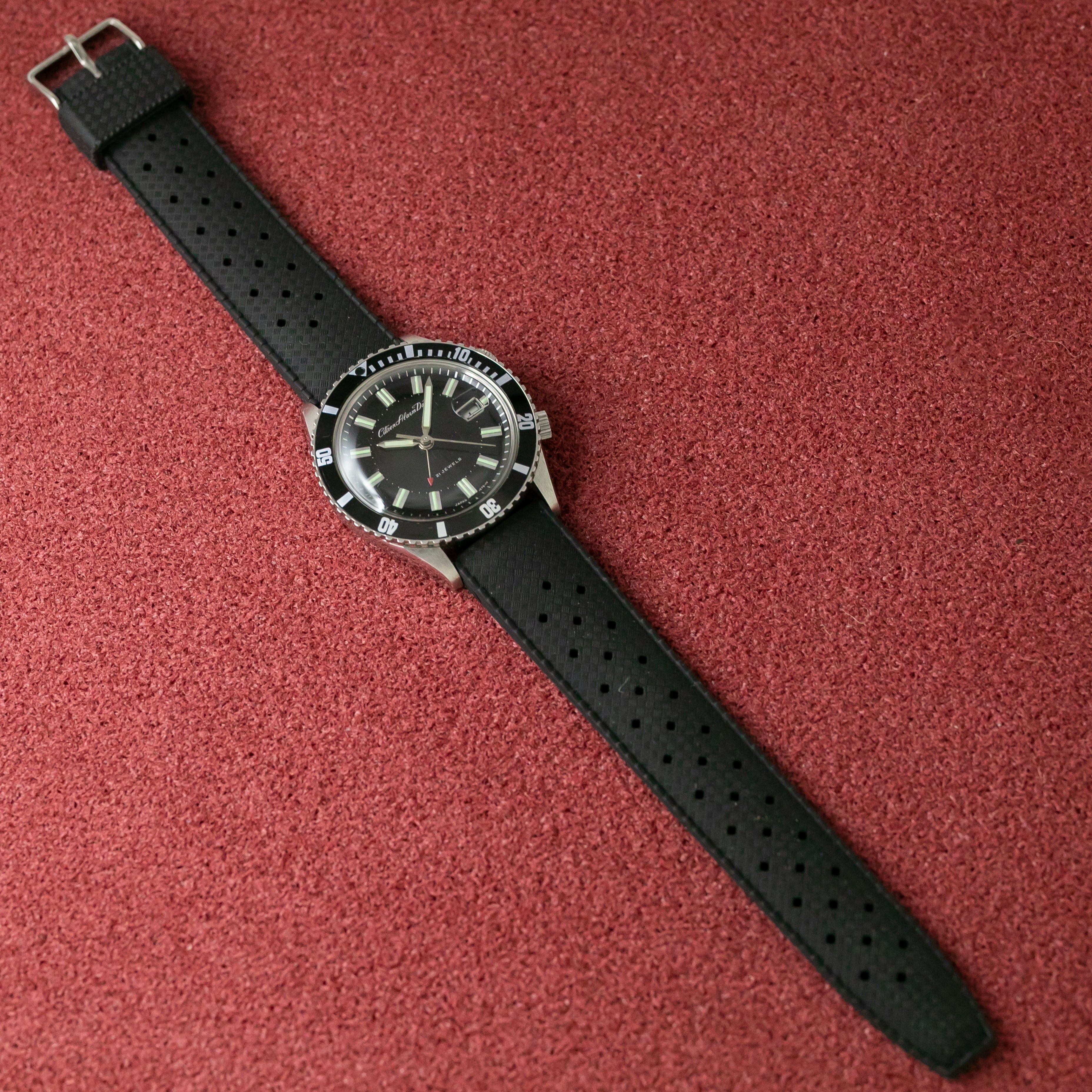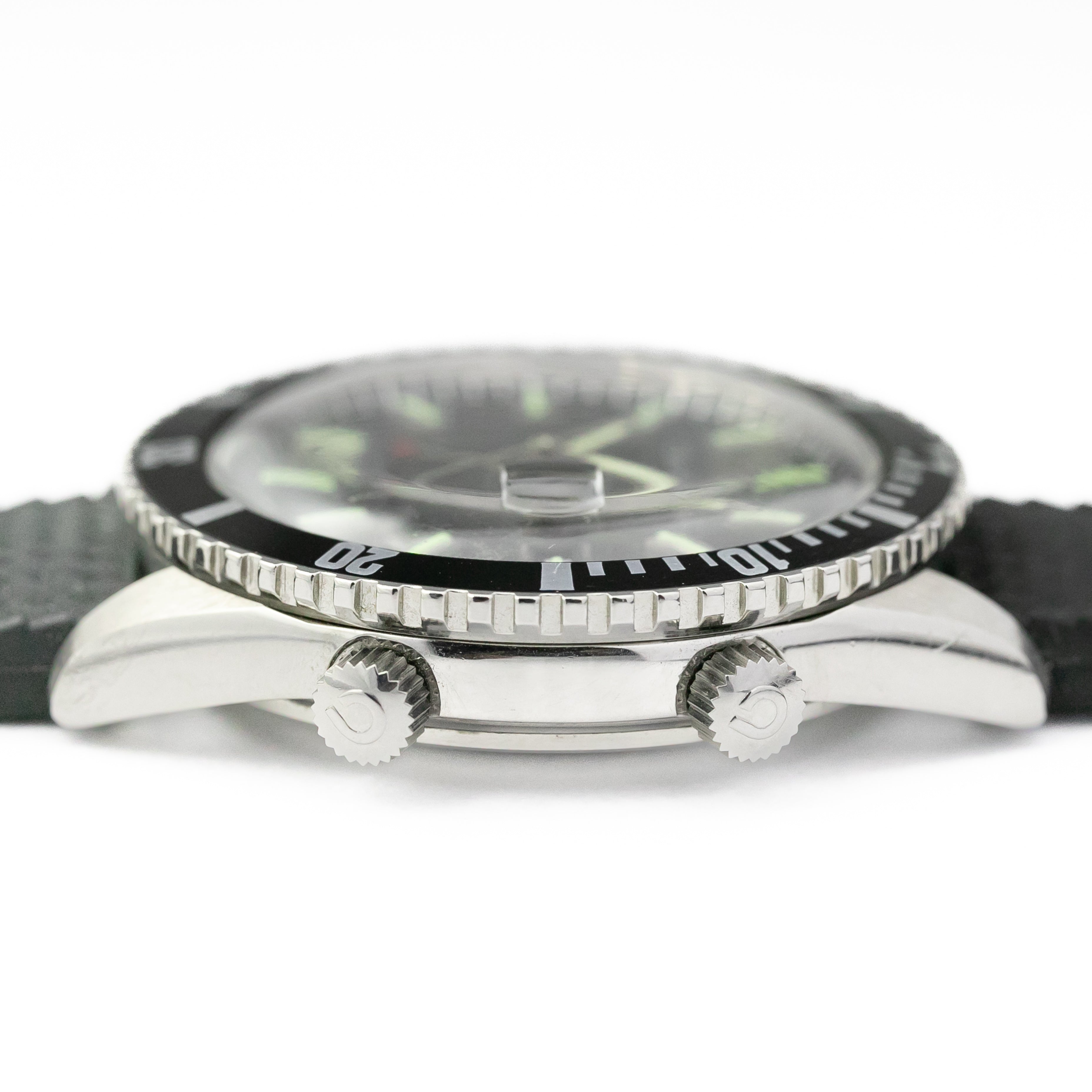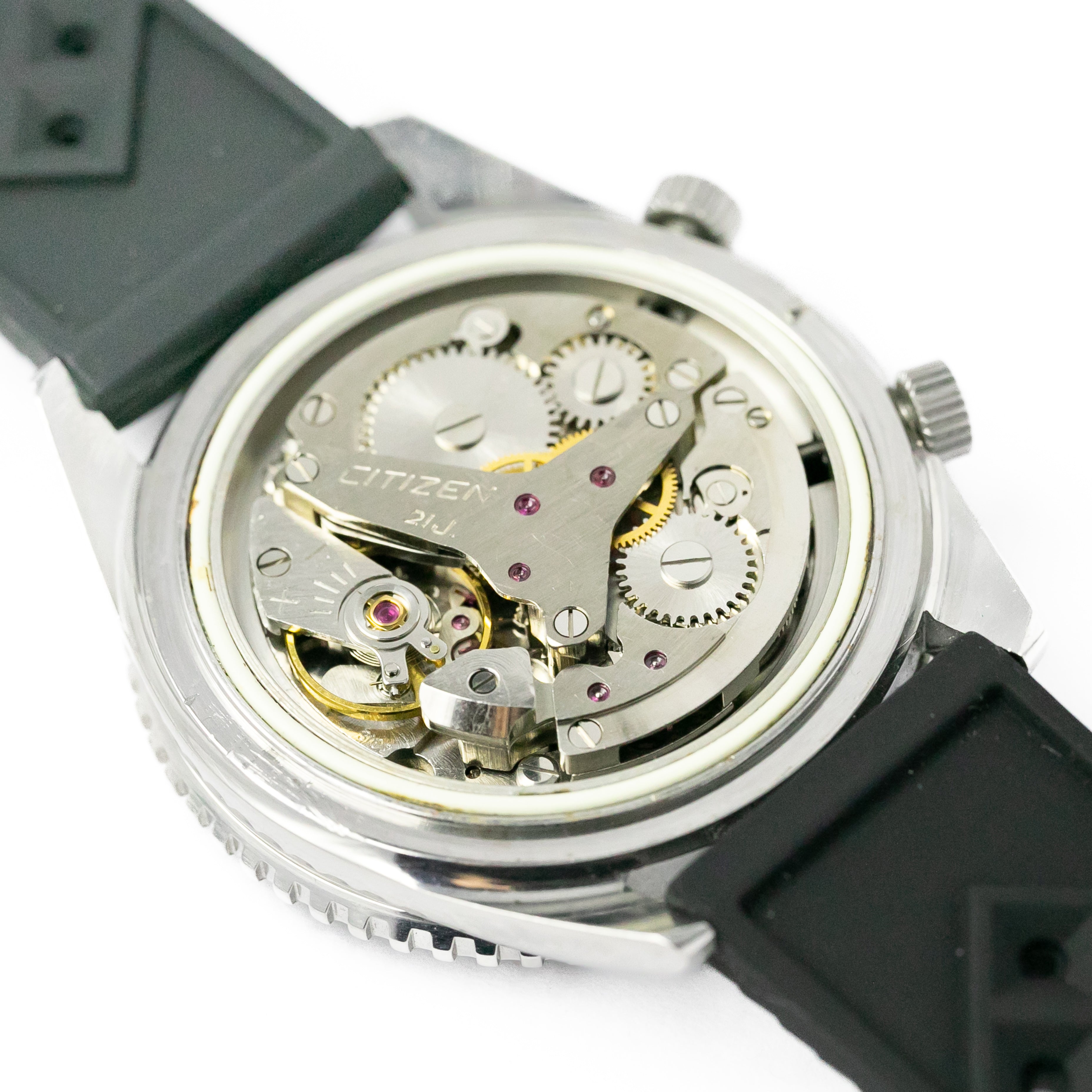 - ヴィンテージ時計の特性上、風防・パッキン・リューズ・バネ棒などの消耗部品は後年メンテナンス過程で交換されている場合がございます。オリジナル性を重視しておりますが、必要に応じて適切な部品にて調整されていますので、よりコレクション性重視のお求めのお客様は事前にご確認ください。