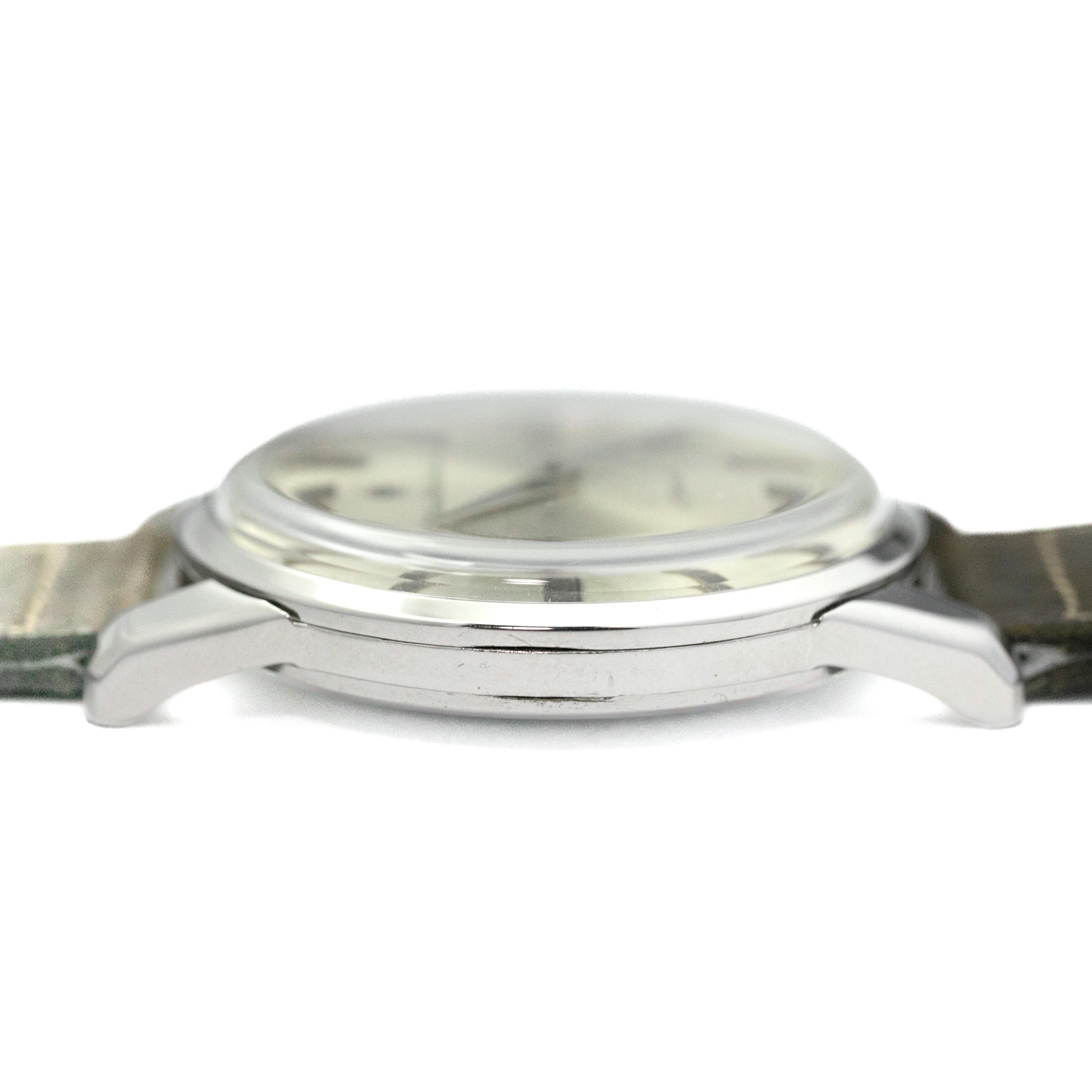 - ヴィンテージ時計の特性上、風防・パッキン・リューズ・バネ棒などの消耗部品は後年メンテナンス過程で交換されている場合がございます。オリジナル性を重視しておりますが、必要に応じて適切な部品にて調整されていますので、よりコレクション性重視のお求めのお客様は事前にご確認ください。