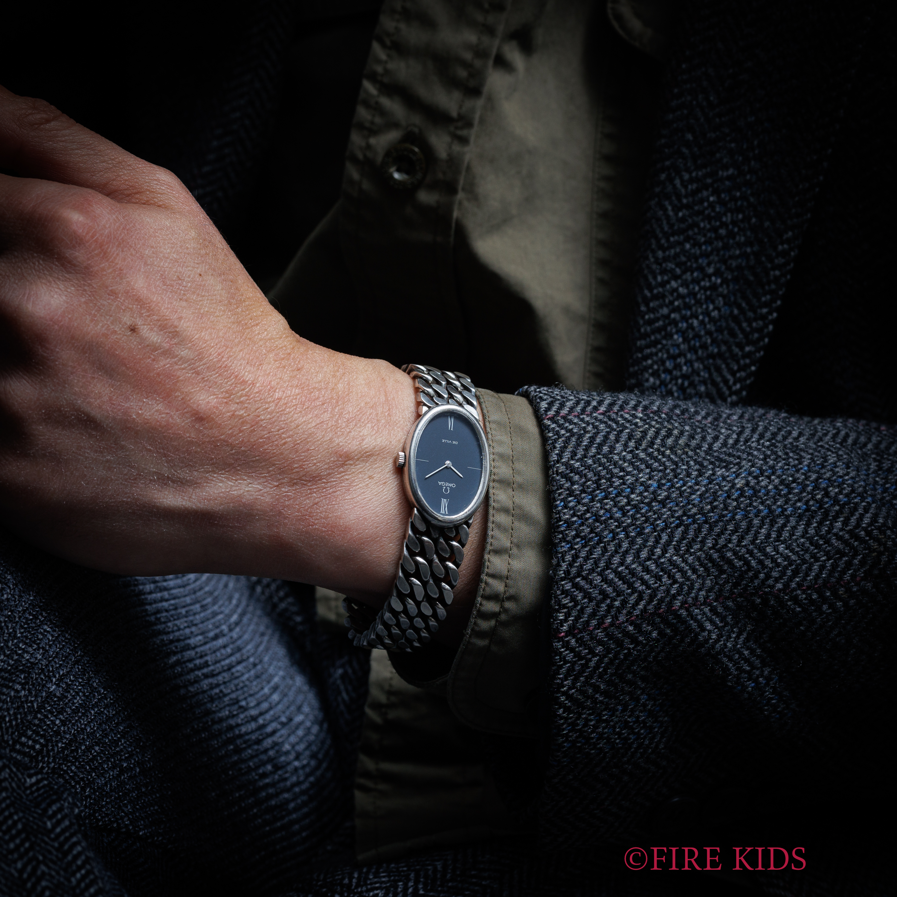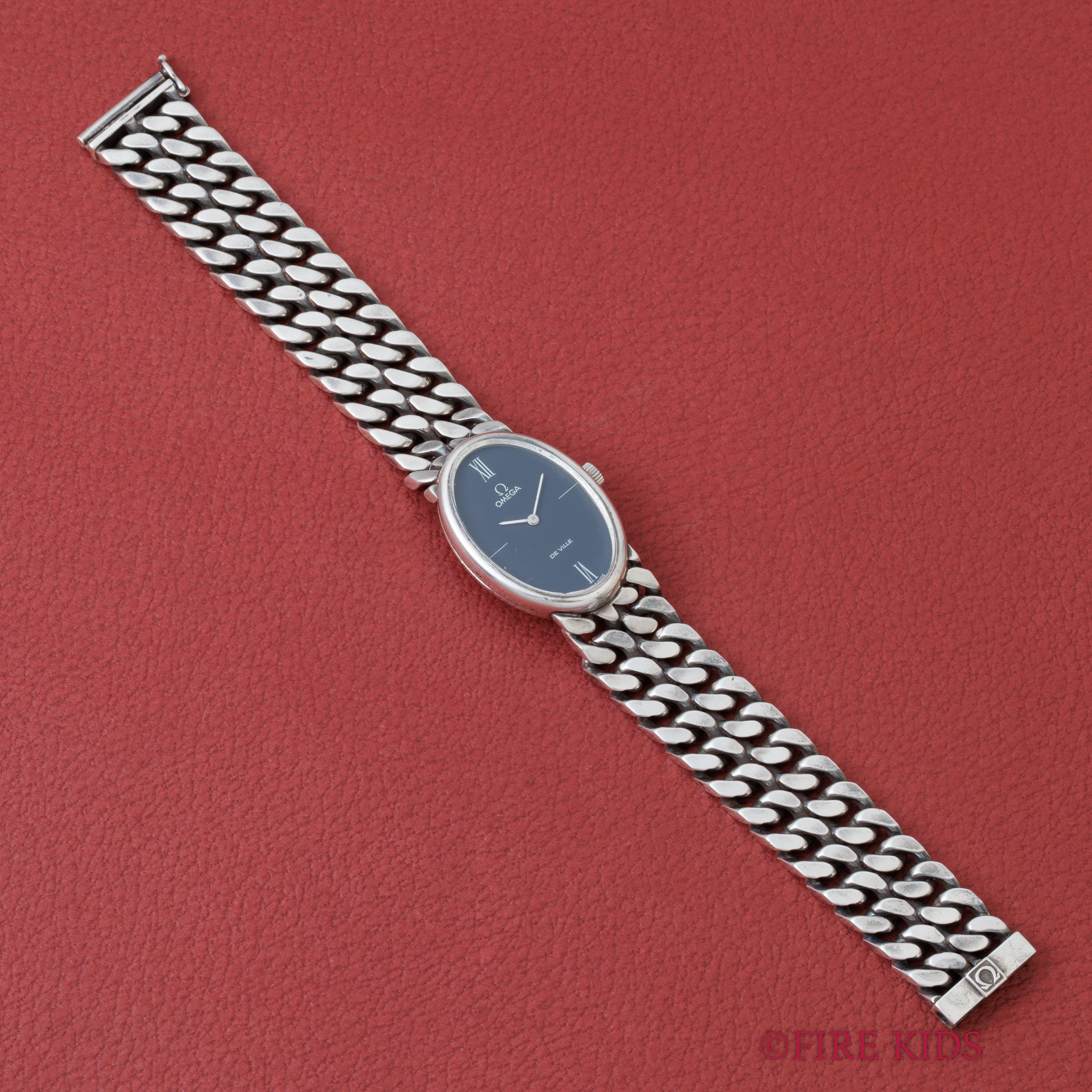 オメガ デヴィル 1972年製 シルバー925ケース、ブレス Cal.625 ブルーダイヤル 一体型デザイン
