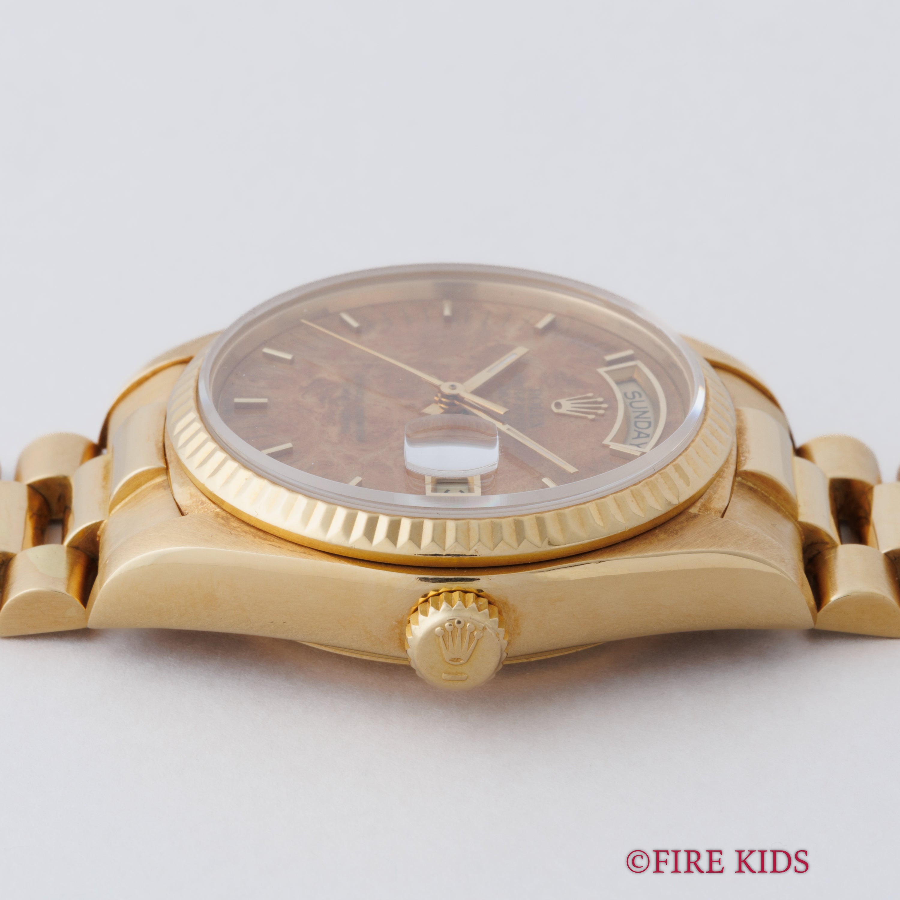 ロレックス 18金無垢デイデイト 1981年製 Ref.18038 ウォールナットダイヤル 純正18KYGプレジデントブレス