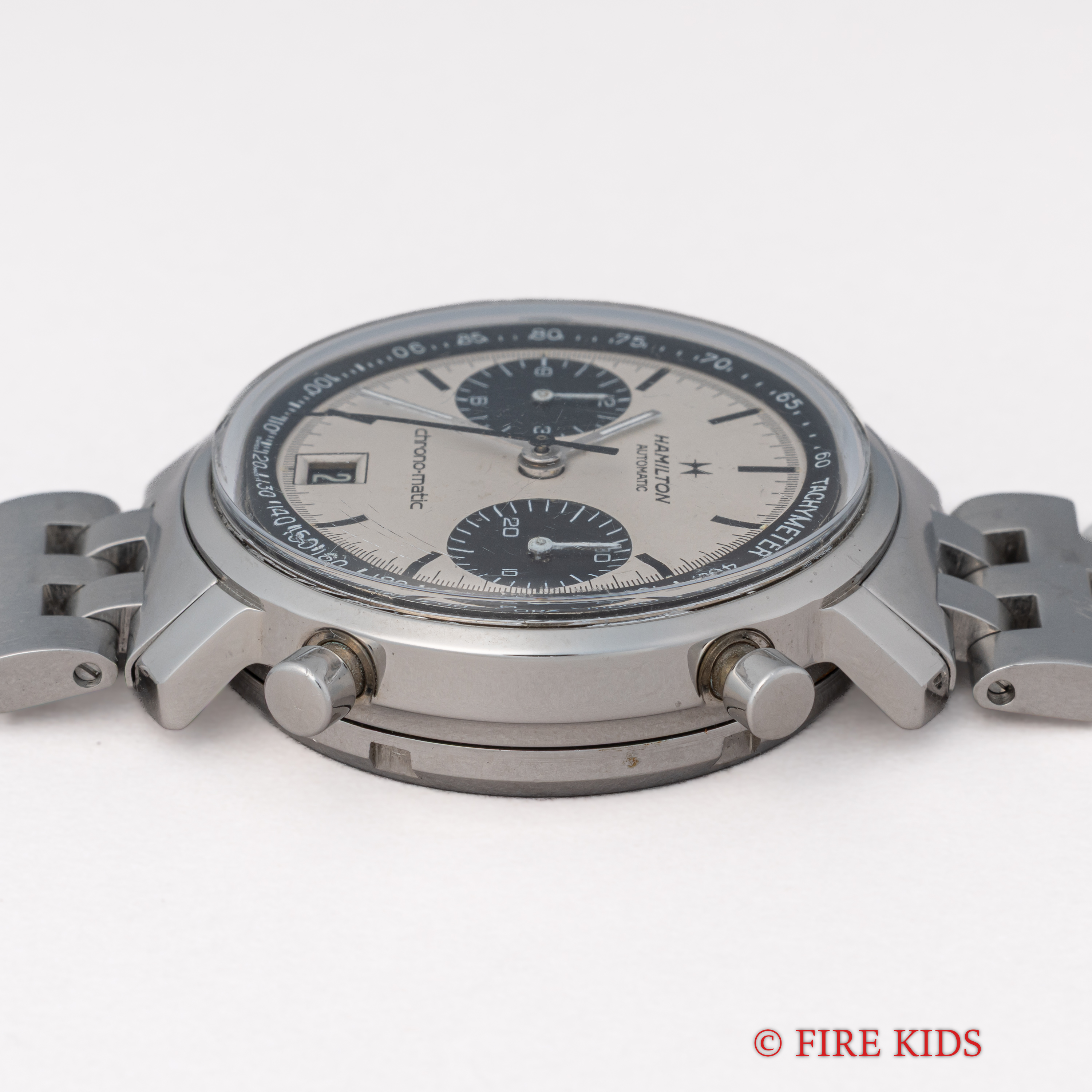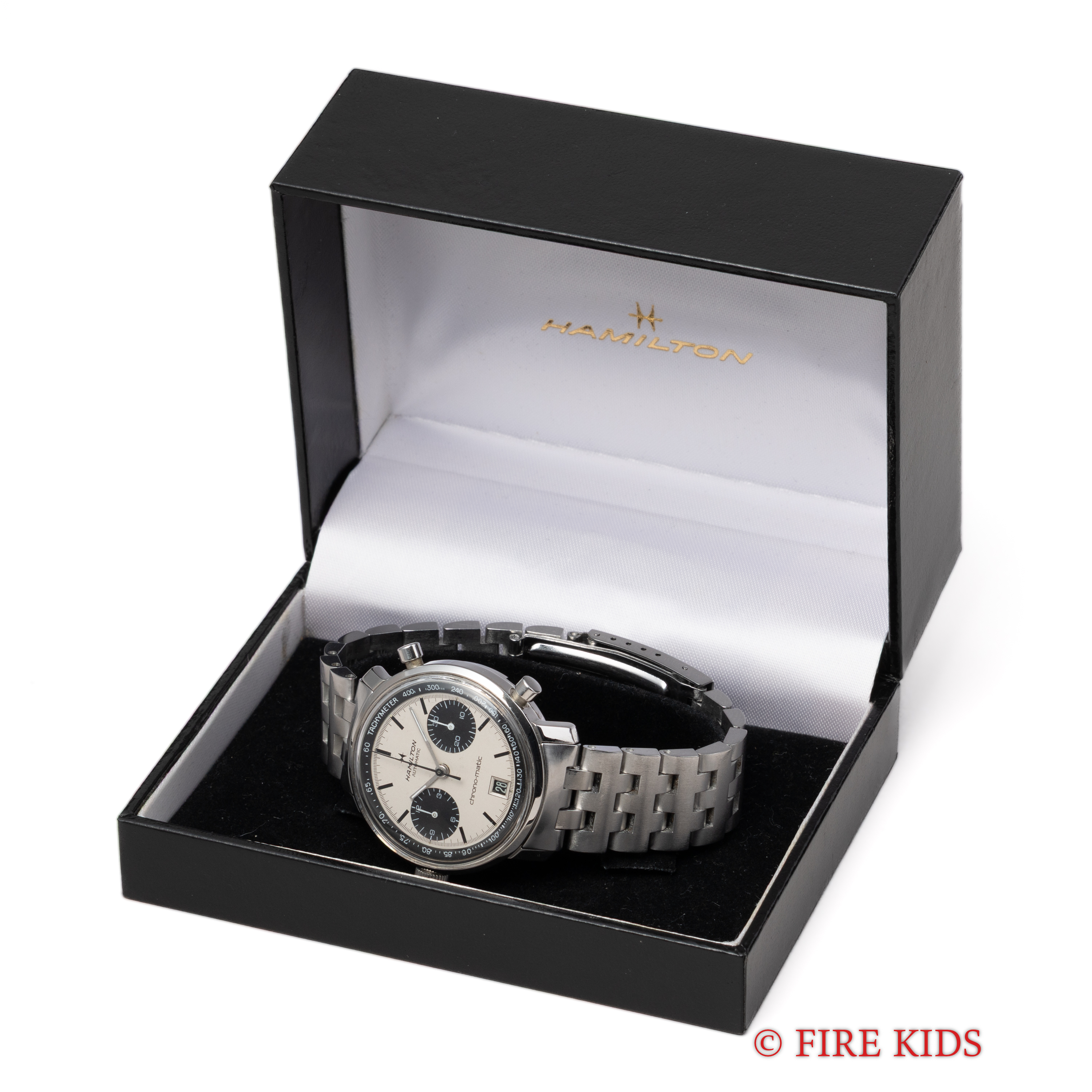 ハミルトン クロノマチック Cal.11 自動巻きクロノグラフ パンダダイヤル 純正ブレス、箱付き 1969年製 Ref.11002-3
