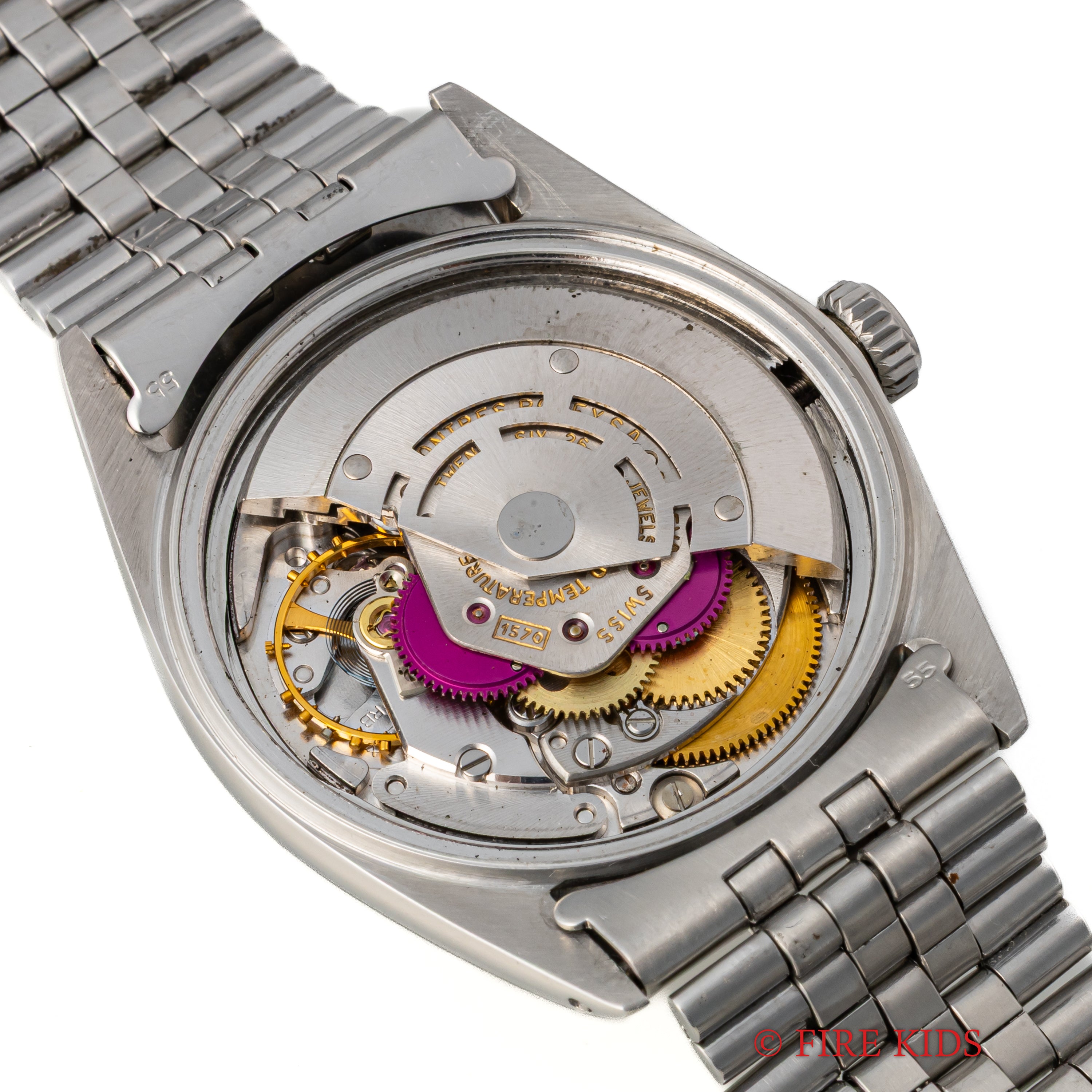 - ヴィンテージ時計の特性上、風防・パッキン・リューズ・バネ棒などの消耗部品は後年メンテナンス過程で交換されている場合がございます。オリジナル性を重視しておりますが、必要に応じて適切な部品にて調整されていますので、よりコレクション性重視のお求めのお客様は事前にご確認ください。