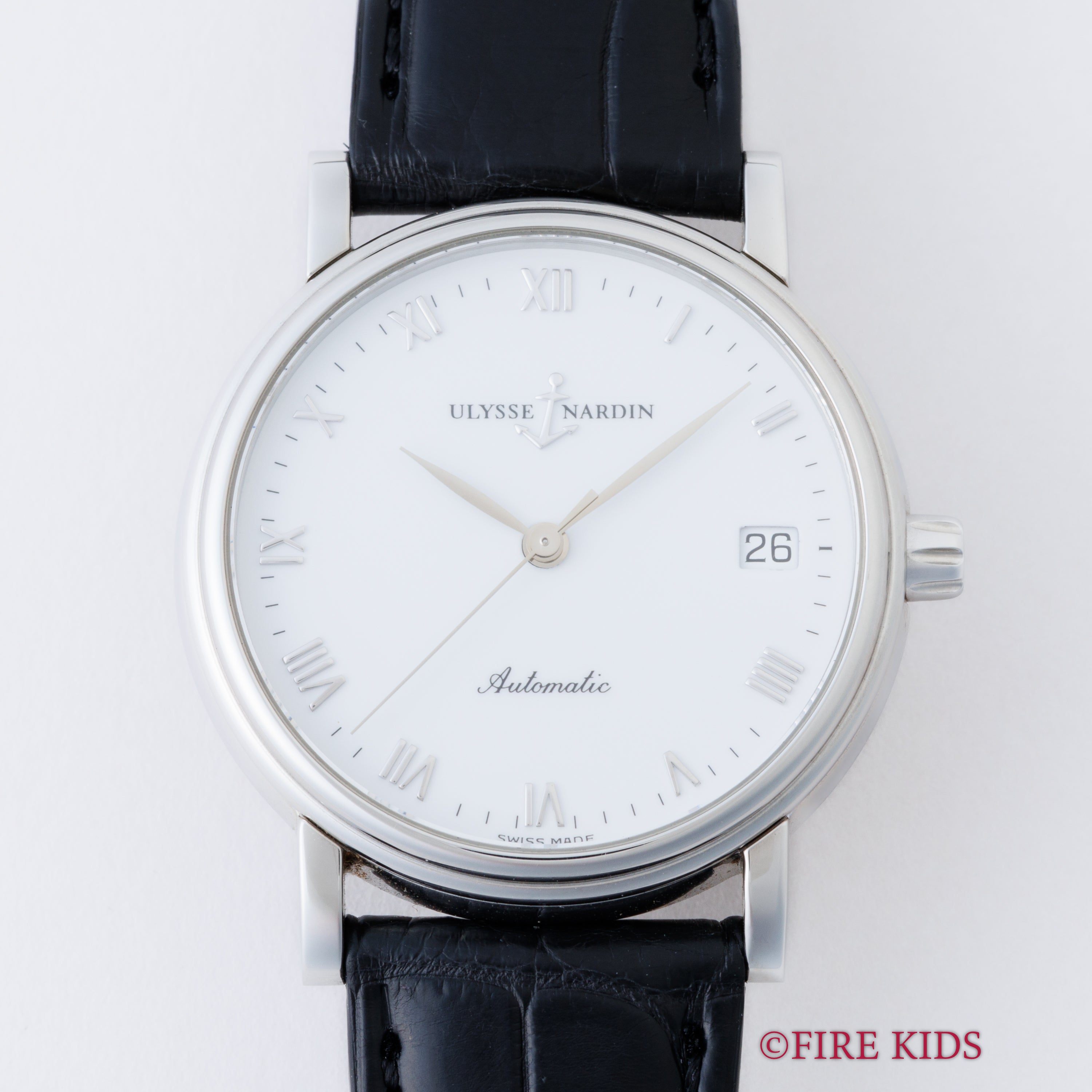 ユリスナルダン サンシアーデイト ホワイトローマンダイヤル 1990年代製 Ref.133‐34 自動巻 純正尾錠付き