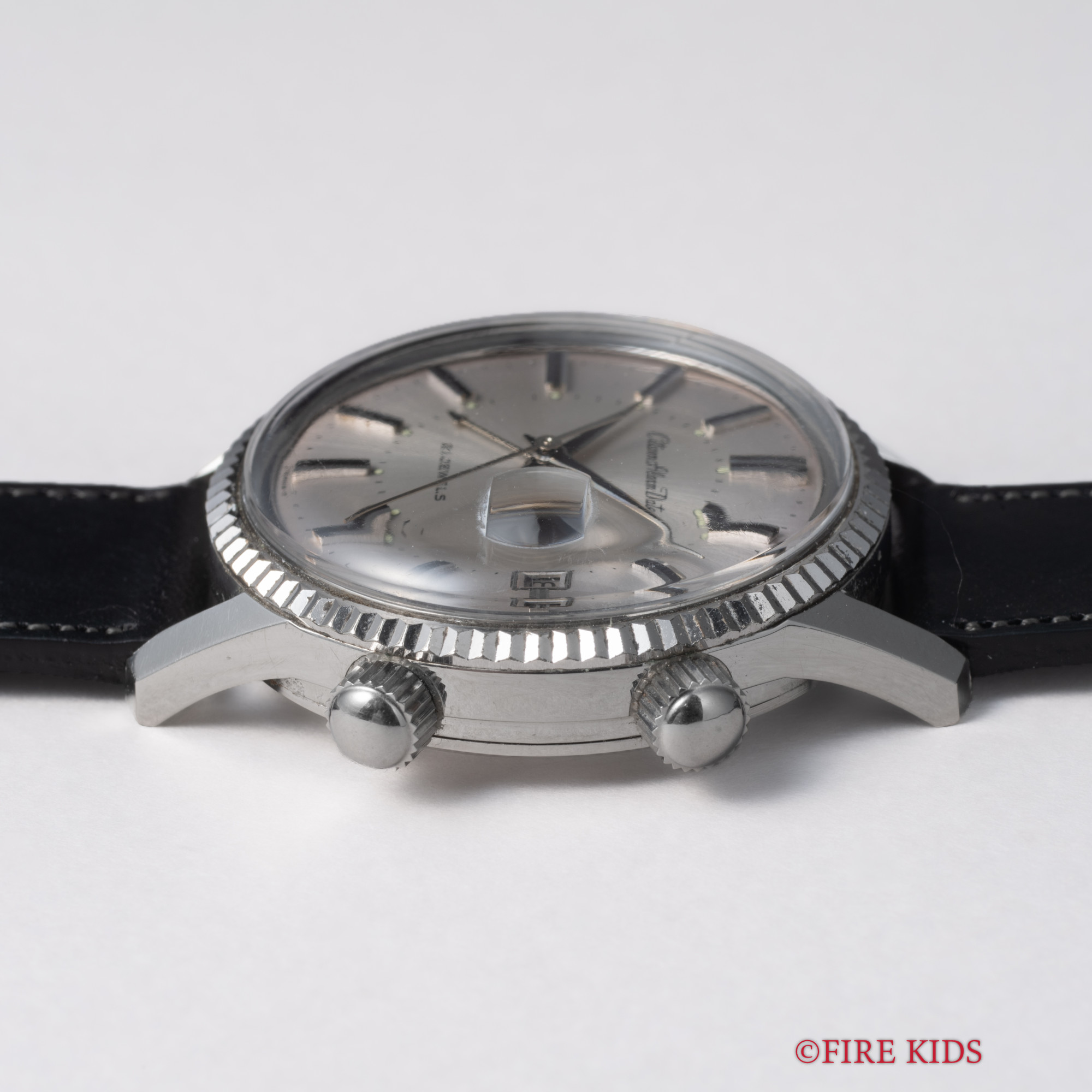 - ヴィンテージ時計の特性上、風防・パッキン・リューズ・バネ棒などの消耗部品は後年メンテナンス過程で交換されている場合がございます。オリジナル性を重視しておりますが、必要に応じて適切な部品にて調整されていますので、よりコレクション性重視のお求めのお客様は事前にご確認ください。