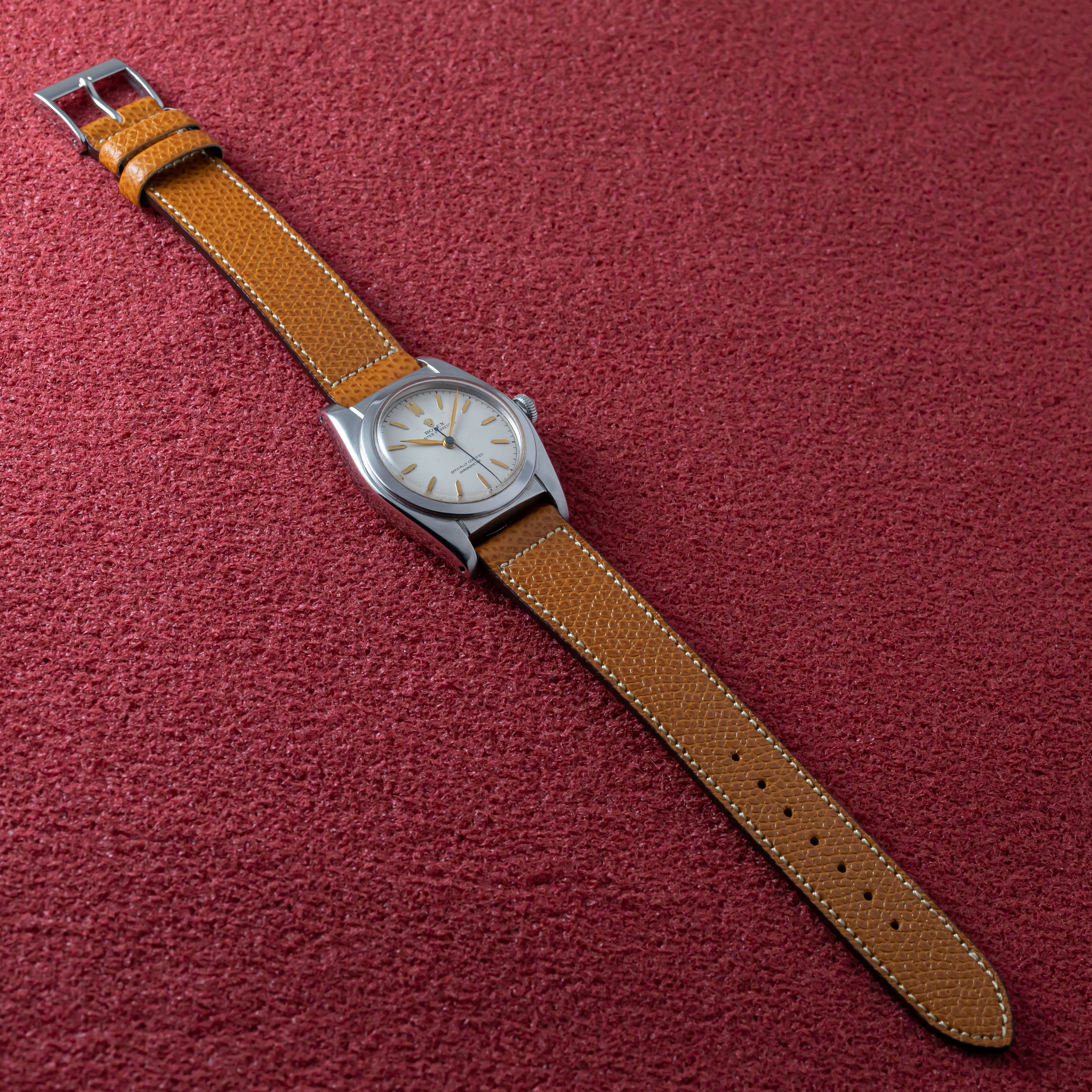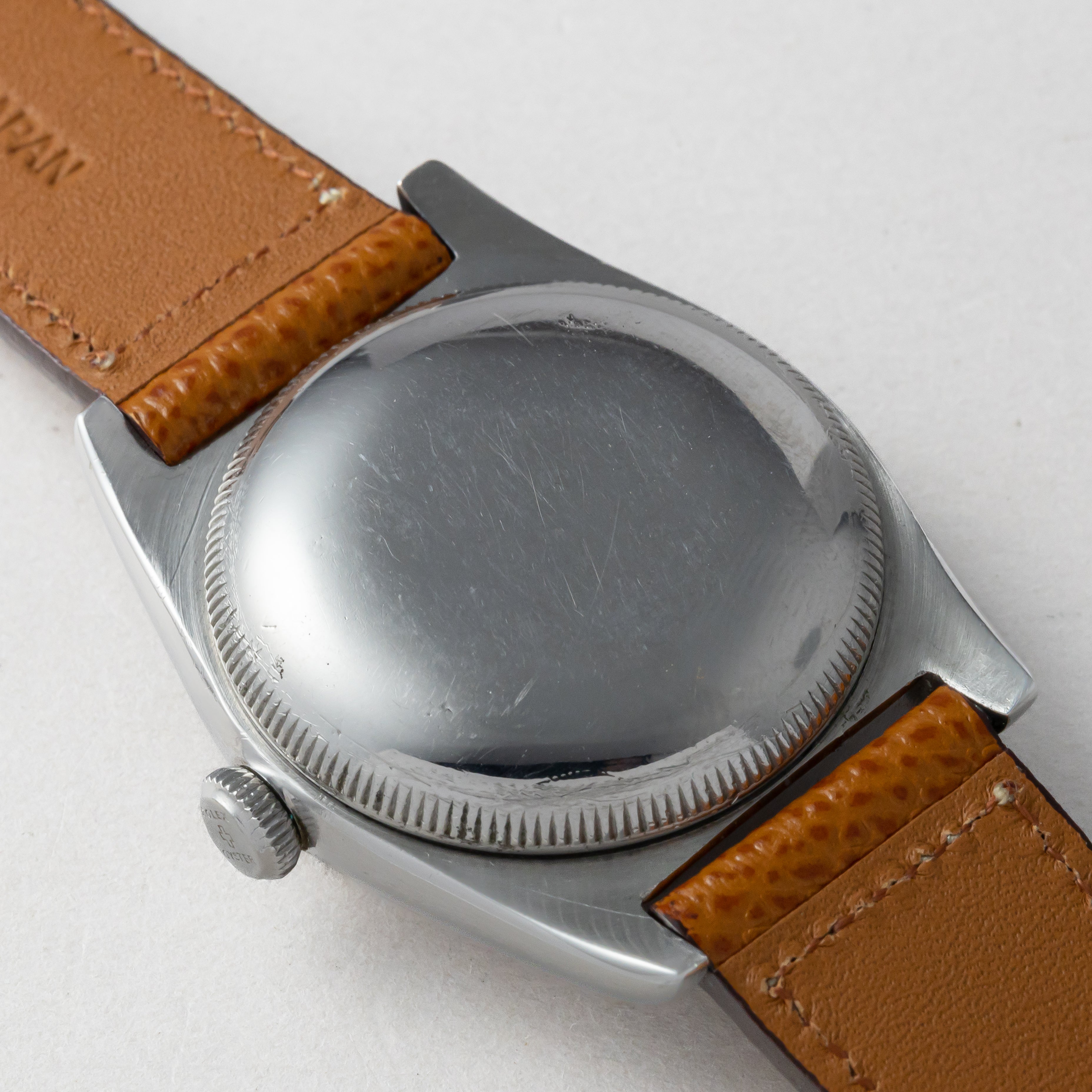 - ヴィンテージ時計の特性上、風防・パッキン・リューズ・バネ棒などの消耗部品は後年メンテナンス過程で交換されている場合がございます。オリジナル性を重視しておりますが、必要に応じて適切な部品にて調整されていますので、よりコレクション性重視のお求めのお客様は事前にご確認ください。