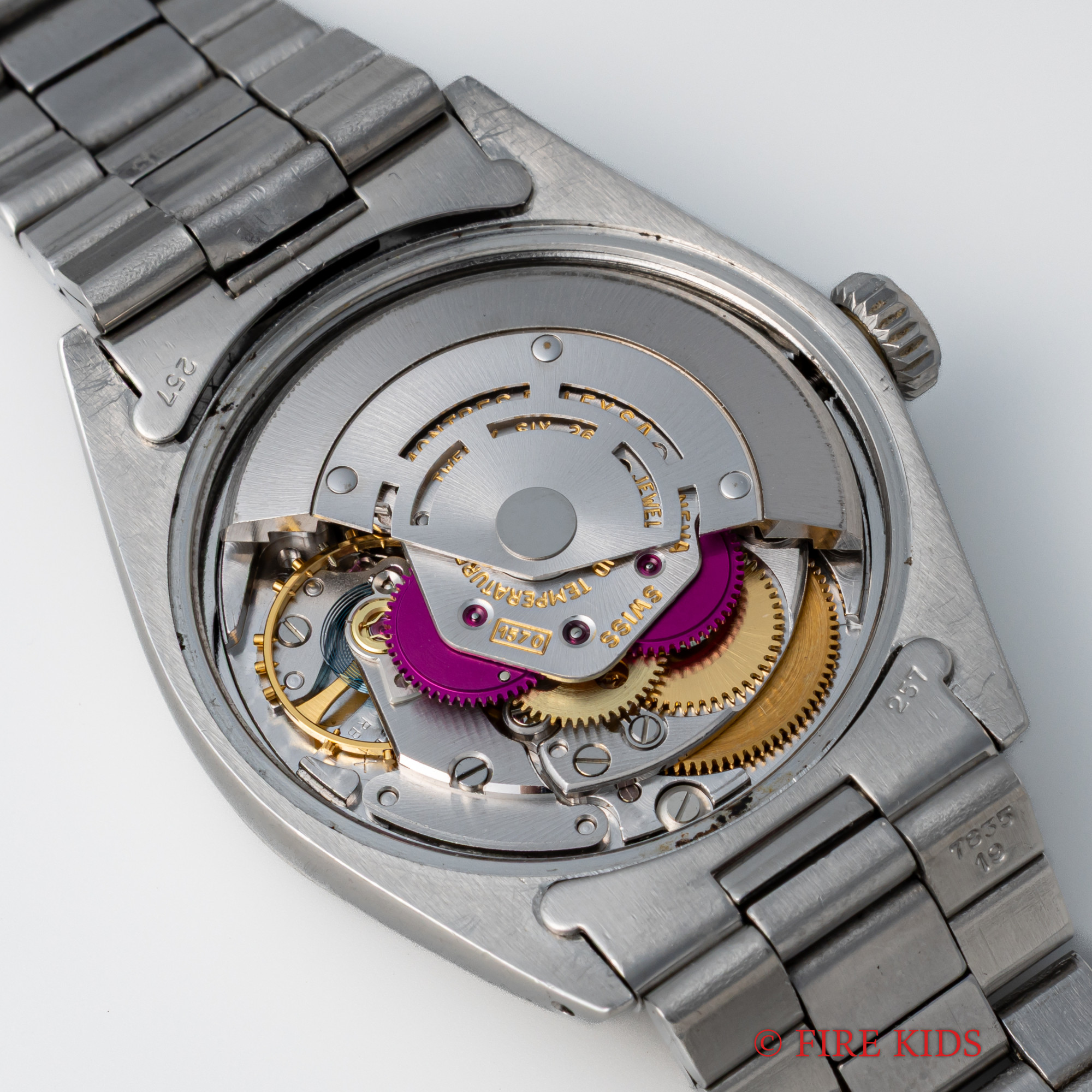 - ヴィンテージ時計の特性上、風防・パッキン・リューズ・バネ棒などの消耗部品は後年メンテナンス過程で交換されている場合がございます。オリジナル性を重視しておりますが、必要に応じて適切な部品にて調整されていますので、よりコレクション性重視のお求めのお客様は事前にご確認ください。