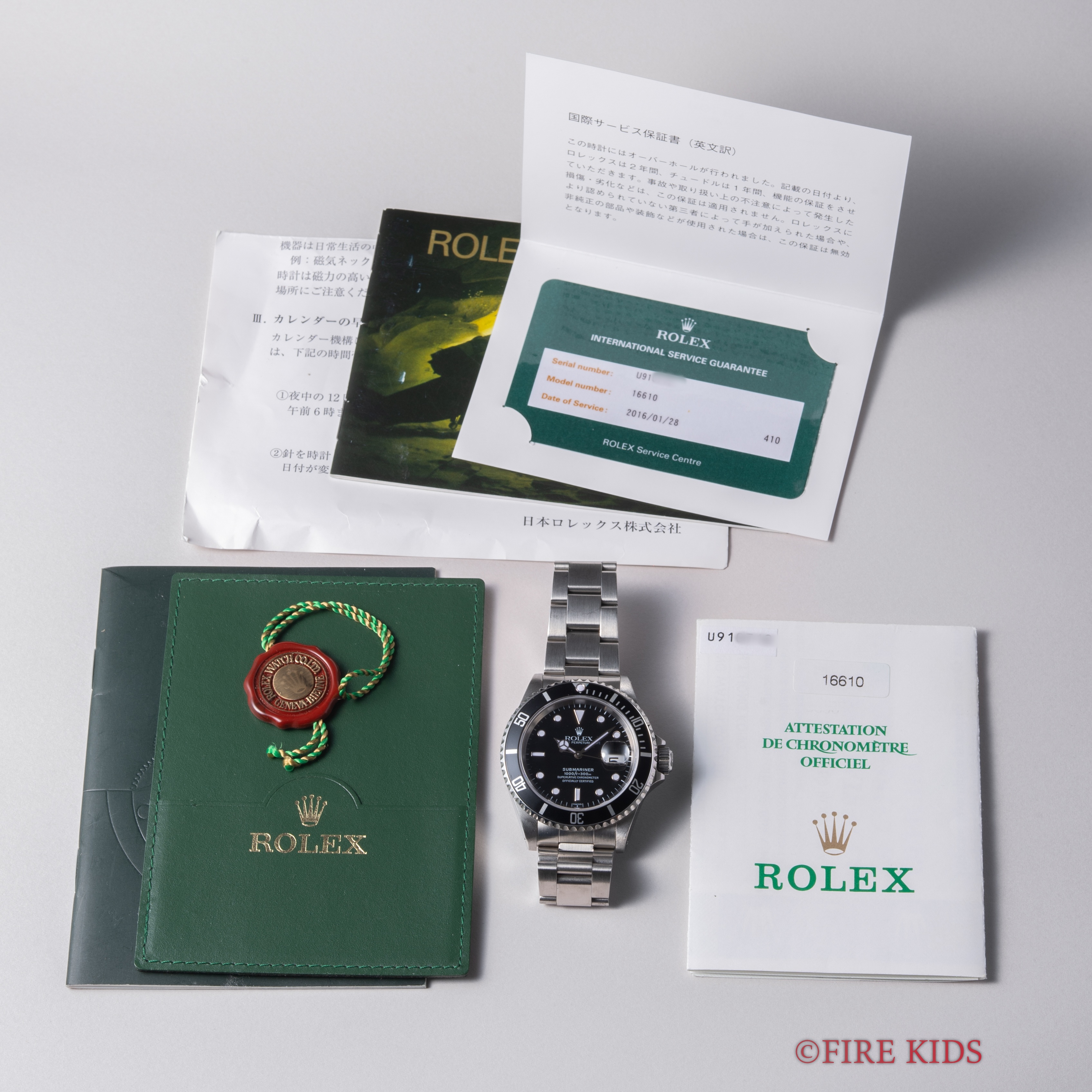 ロレックス サブマリーナーデイト Ref.16610ギャラ、サービスギャラ、タグ、冊子付き 1997年製