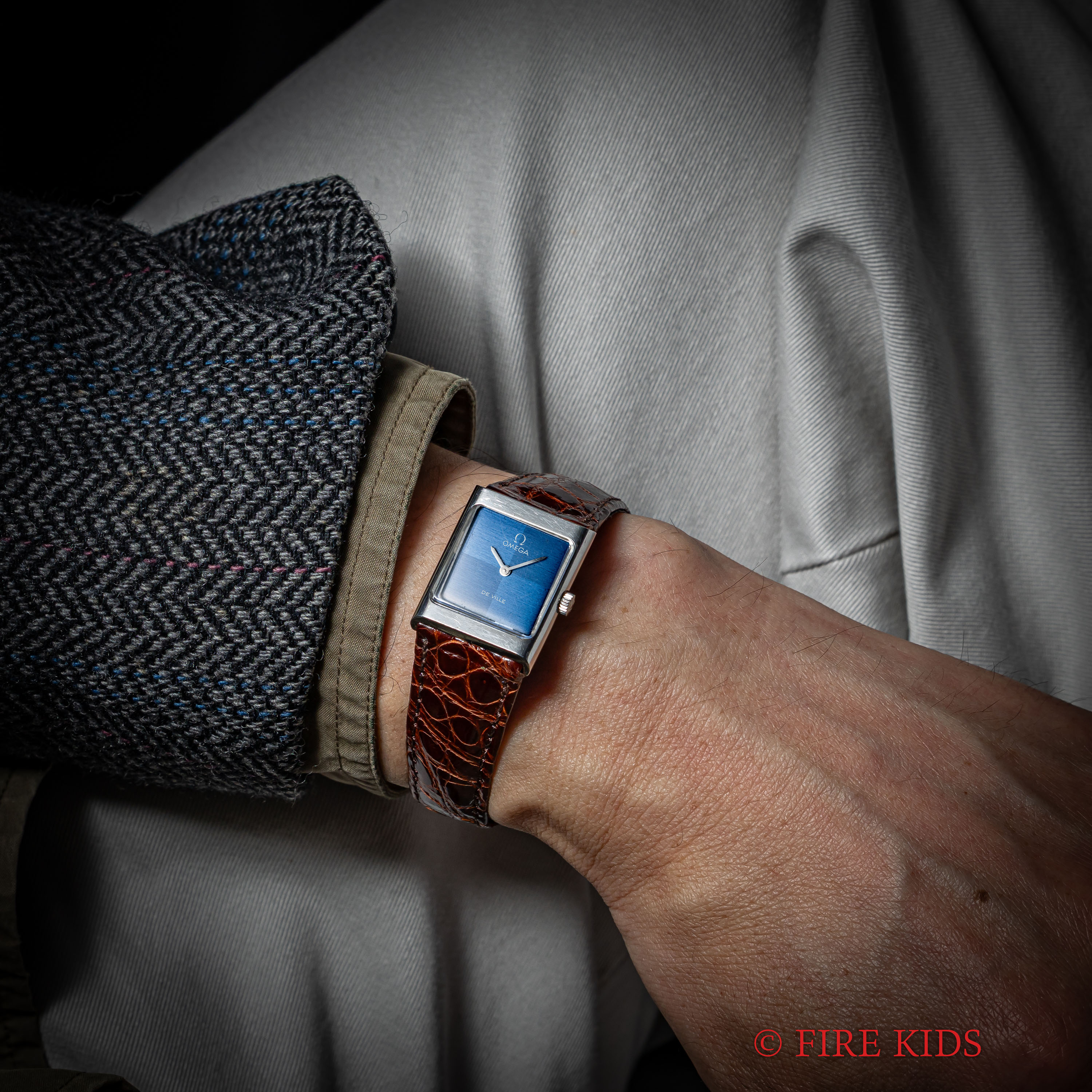 オメガ デヴィル 手巻 1972年製 Ref.511 0427ネイビー クリスクロスダイヤル レクタンギュラー