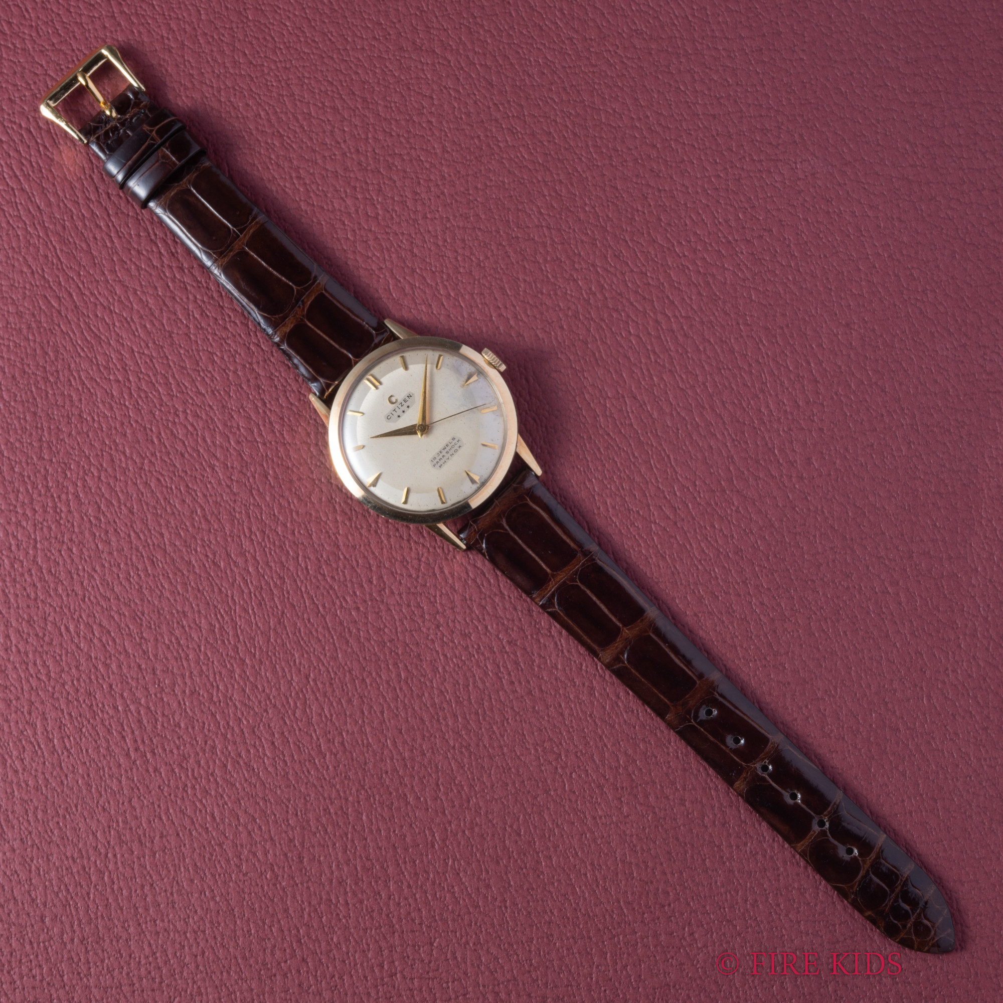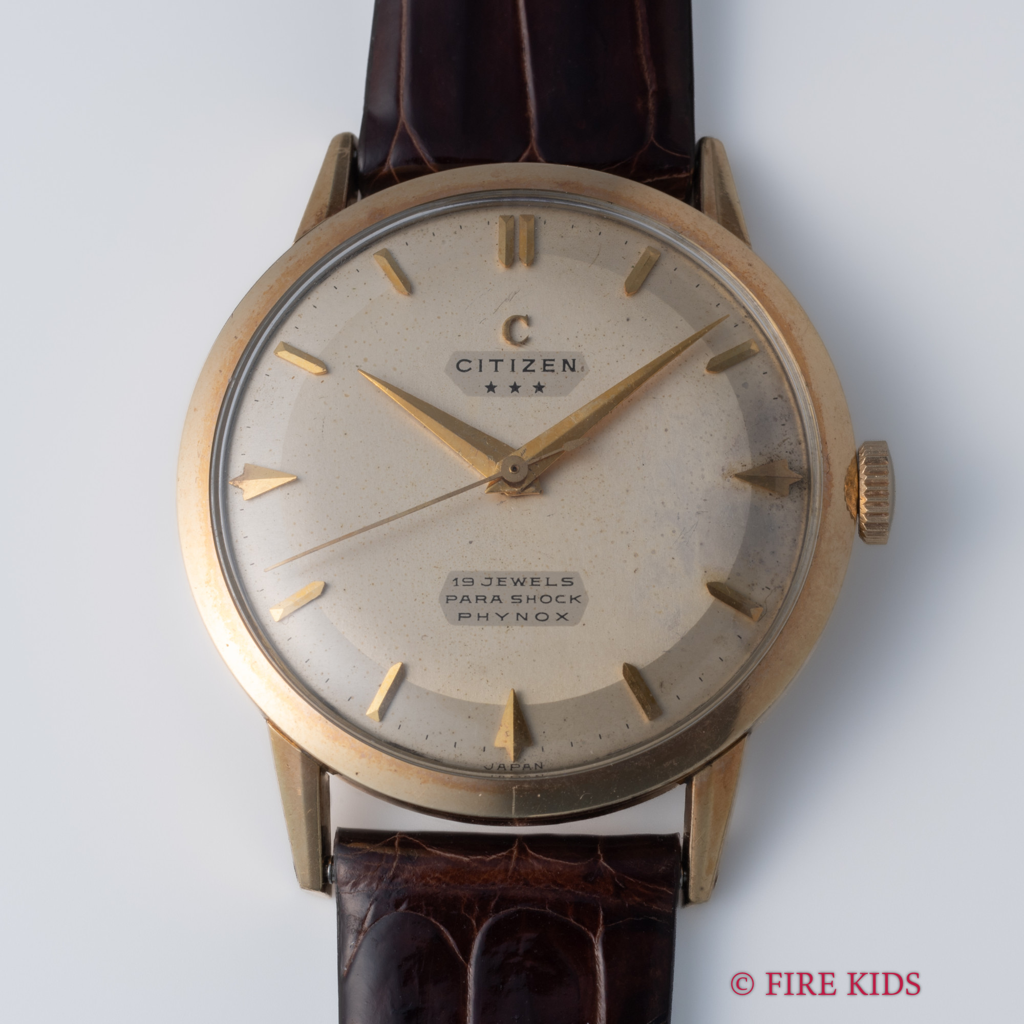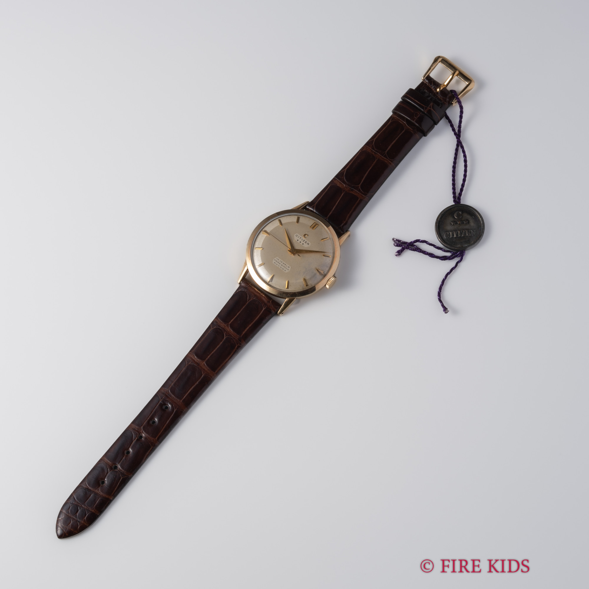 シチズン 1961年製 スリースター 14金張りケース ツートンダイヤル 特別調整品 19石手巻 純正尾錠 タグ