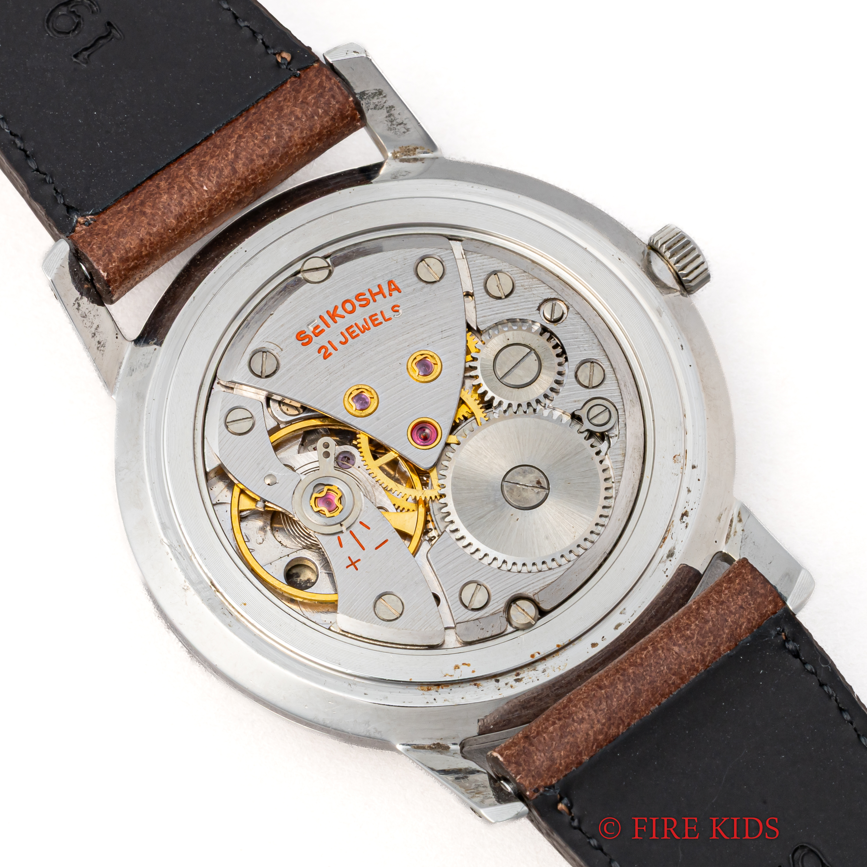 - ヴィンテージ時計の特性上、風防・パッキン・リューズ・バネ棒などの消耗部品は後年メンテナンス過程で交換されている場合がございます。オリジナル性を重視しておりますが、必要に応じて適切な部品にて調整されていますので、よりコレクション性重視のお求めのお客様は事前にご確認ください。