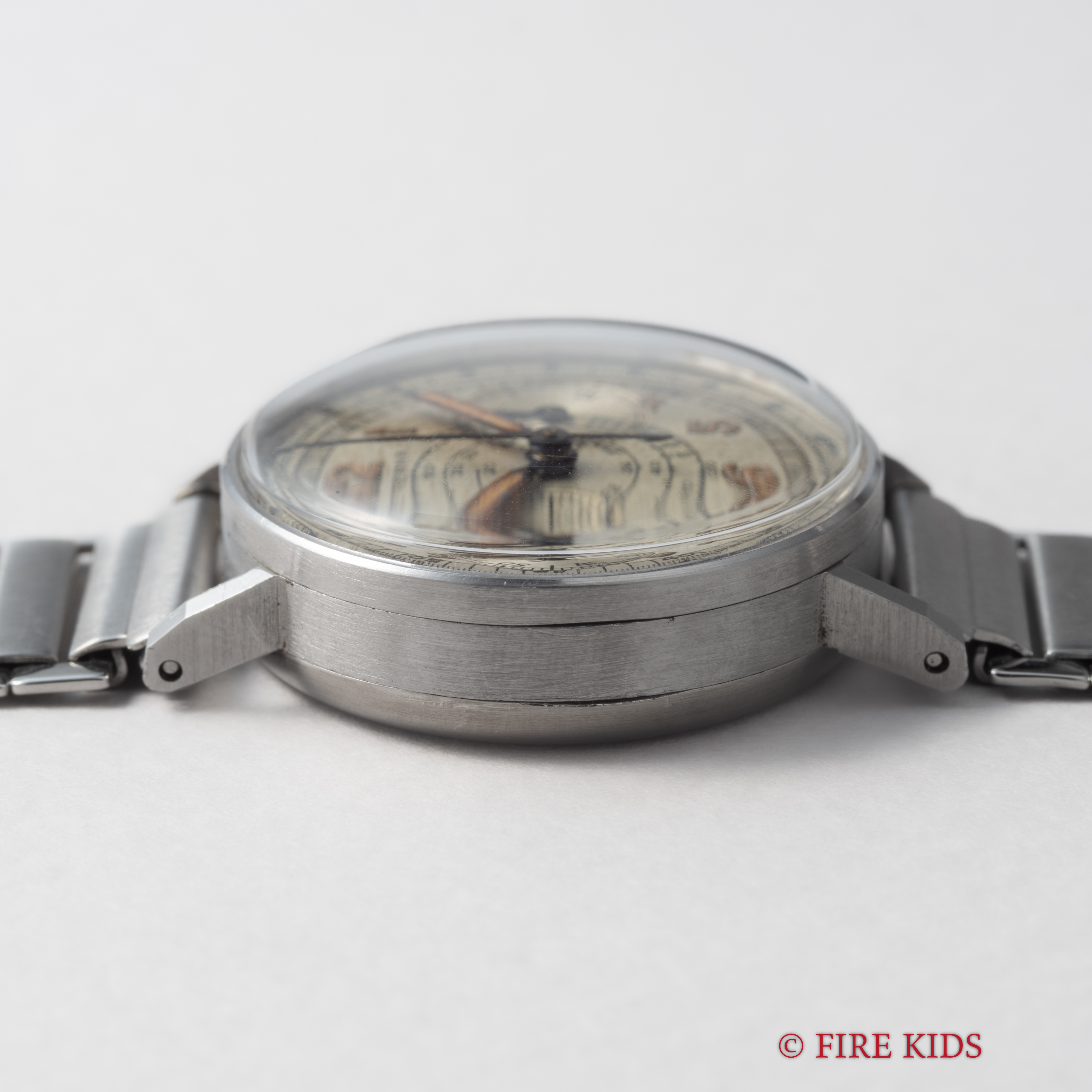 - ヴィンテージ時計の特性上、風防・パッキン・リューズ・バネ棒などの消耗部品は後年メンテナンス過程で交換されている場合がございます。オリジナル性を重視しておりますが、必要に応じて適切な部品にて調整されていますので、よりコレクション性重視のお求めのお客様は事前にご確認ください。