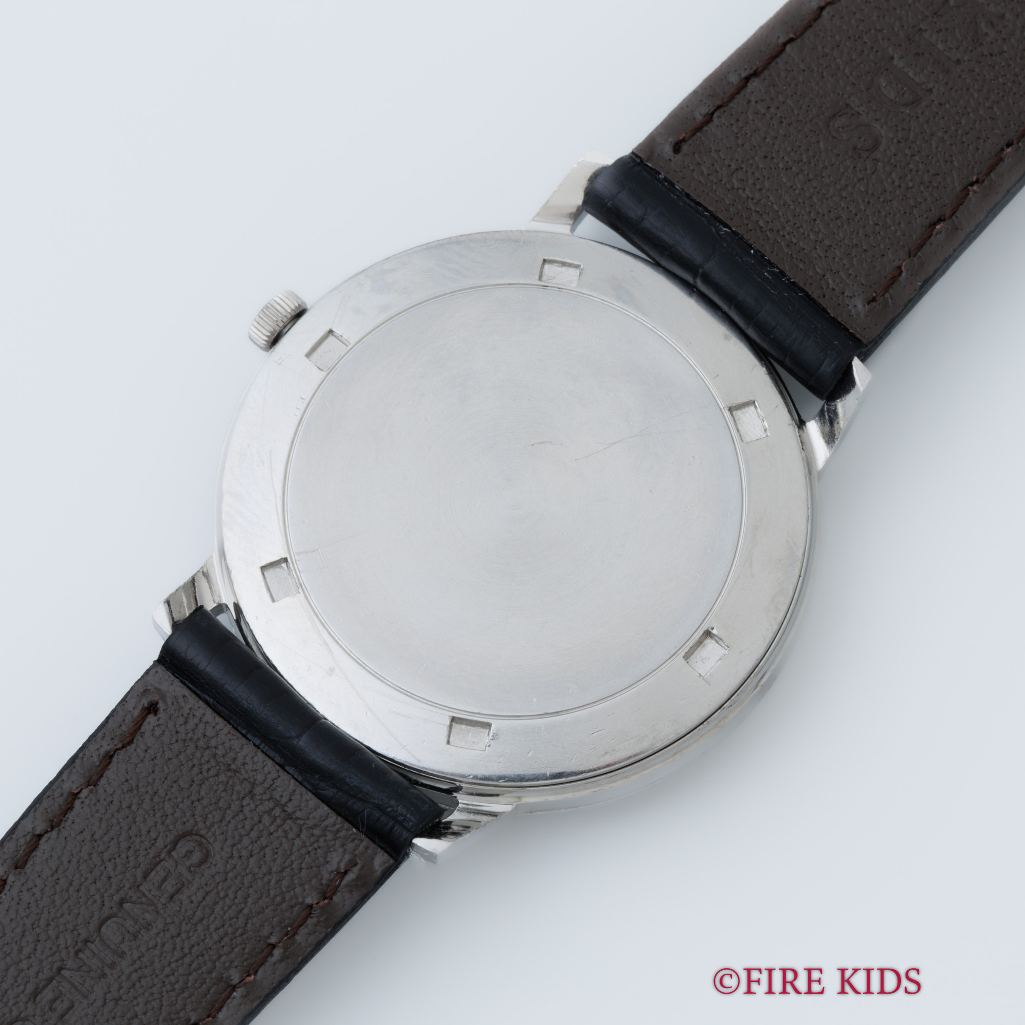 - ヴィンテージ時計の特性上、風防・パッキン・リューズ・バネ棒などの消耗部品は後年メンテナンス過程で交換されている場合がございます。オリジナル性を重視しておりますが、必要に応じて適切な部品にて調整されていますので、よりコレクション性重視のお求めのお客様は事前にご確認ください。