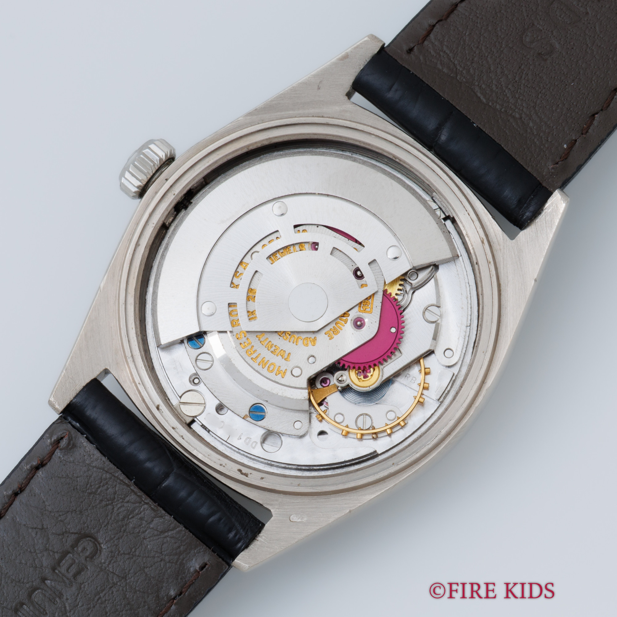 - ヴィンテージ時計の特性上、風防・パッキン・リューズ・バネ棒などの消耗部品は後年メンテナンス過程で交換されている場合がございます。オリジナル性を重視しておりますが、必要に応じて適切な部品にて調整されていますので、よりコレクション性重視のお求めのお客様は事前にご確認ください。