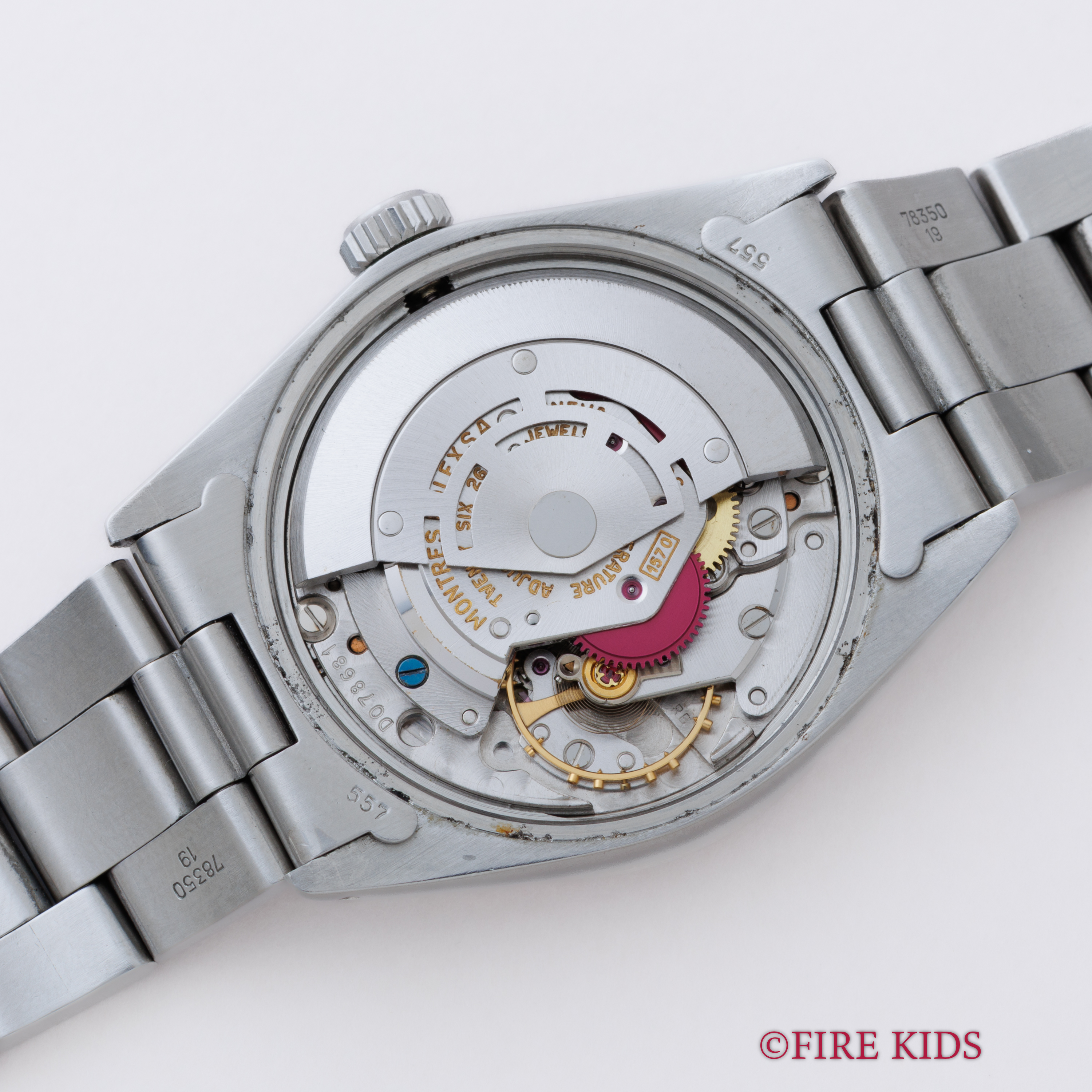 - ヴィンテージ時計の特性上、風防・パッキン・リューズ・バネ棒などの消耗部品は後年メンテナンス過程で交換されている場合がございます。オリジナル性を重視しておりますが、必要に応じて適切な部品にて調整されていますので、よりコレクション性重視のお求めのお客様は事前にご確認ください。