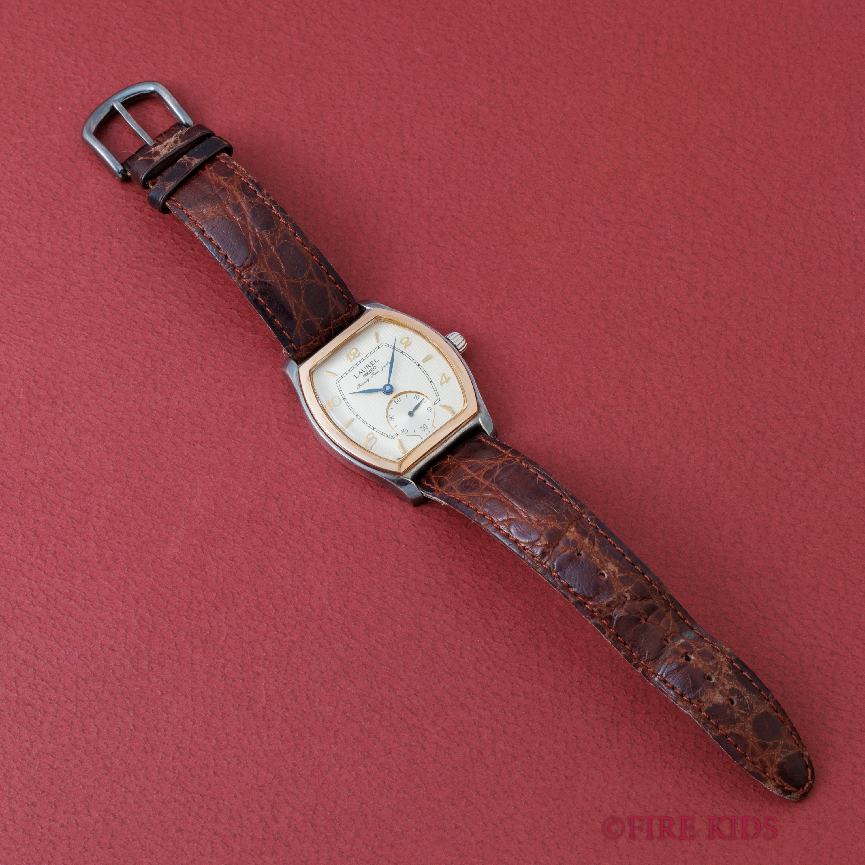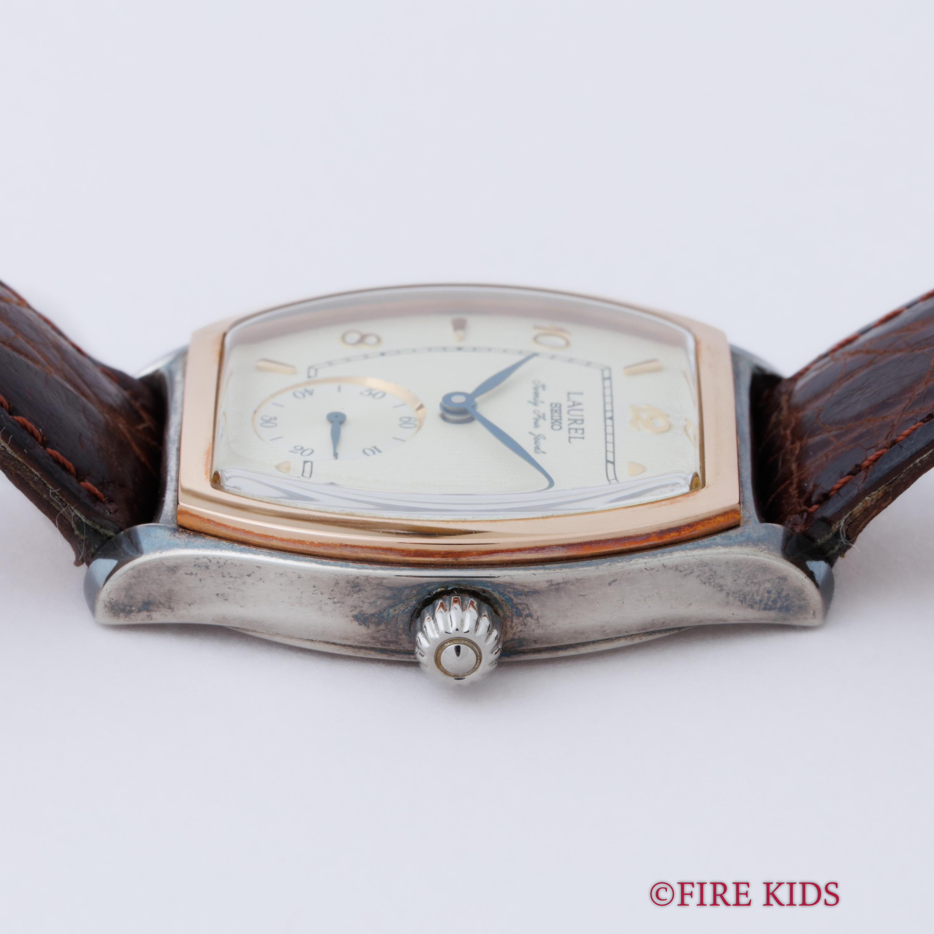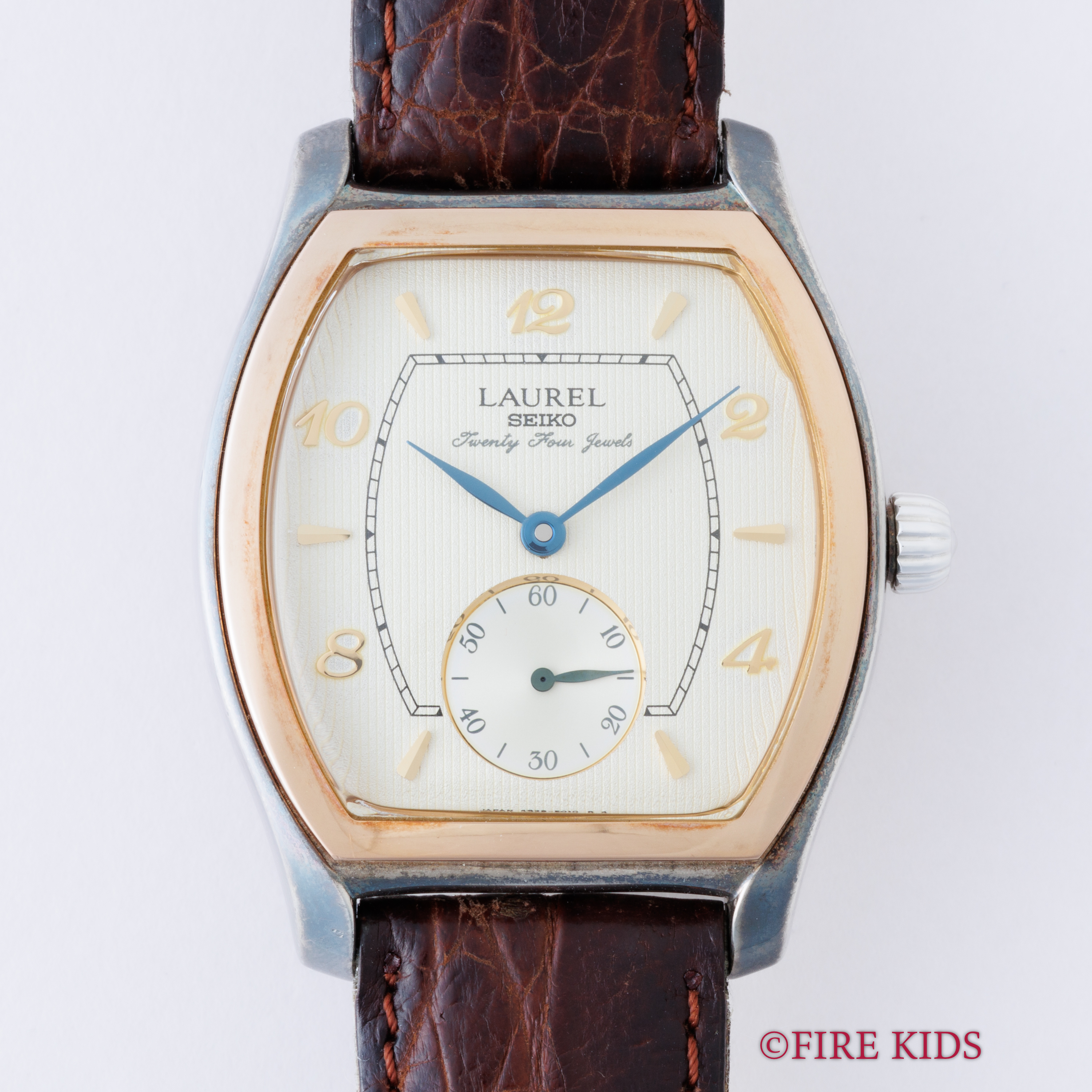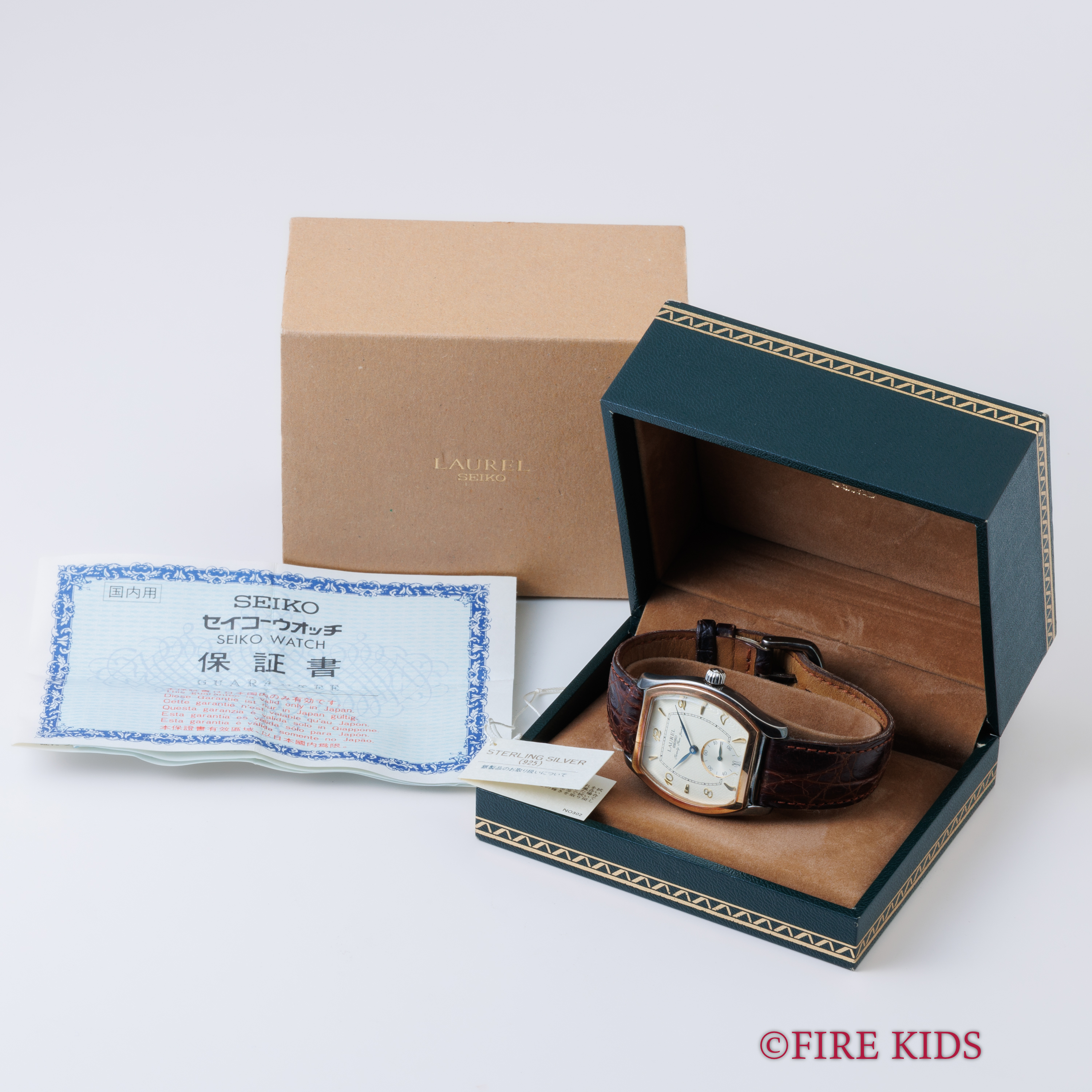 セイコー ローレル 1996年製 925銀無垢トノーケース 18金無垢ベゼル 手巻きCal.4S28A 箱 ギャラ付