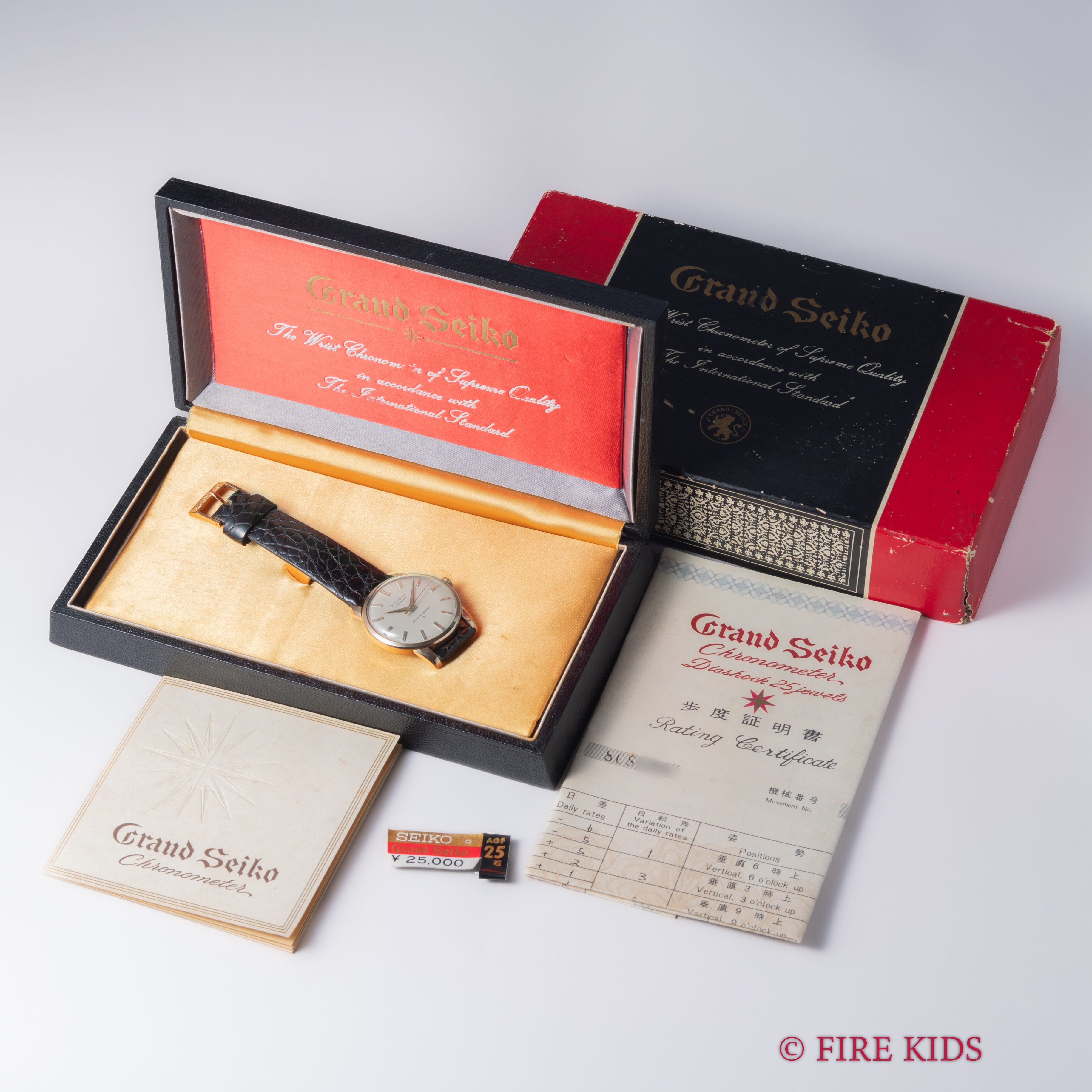 グランドセイコー 1st 後期型 1961年製 手巻き Ref.J14070E アップライトロゴ 箱、歩度証明、説明書、純正革ベルト、純正尾錠付き