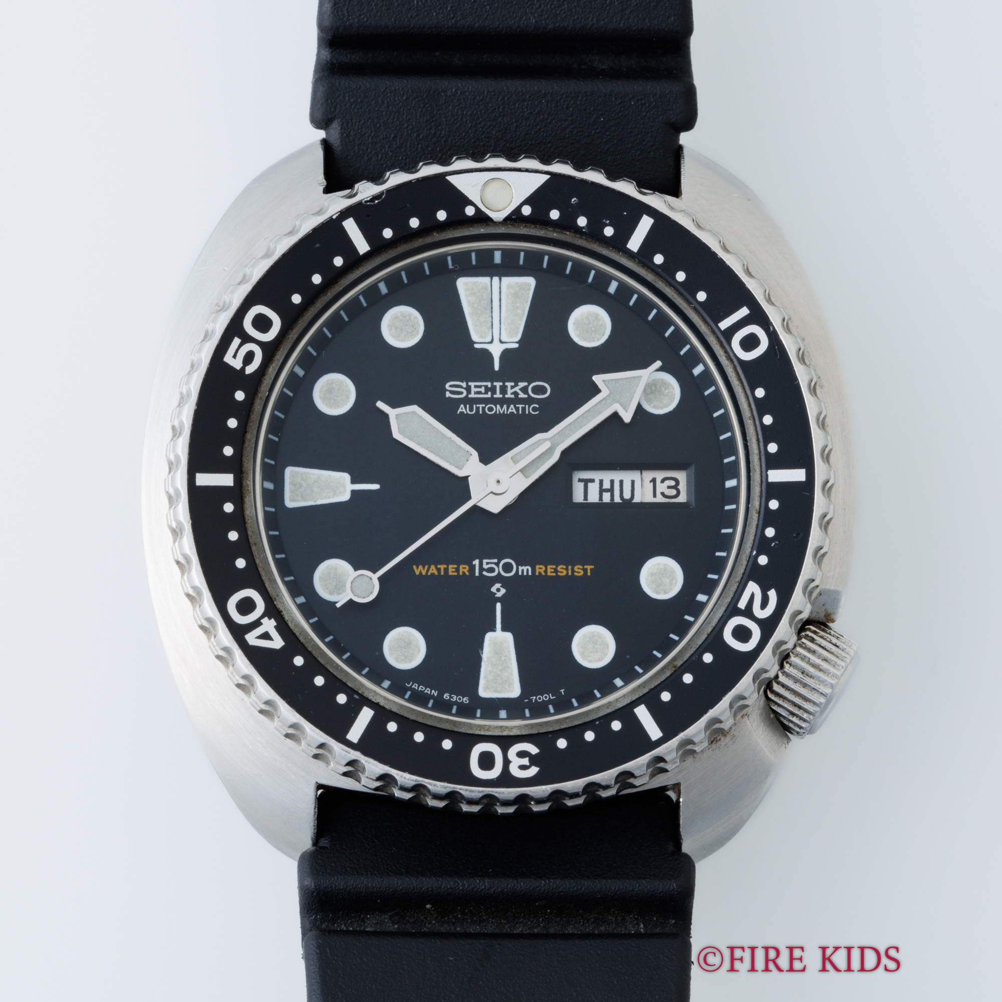 セイコー 150mダイバー 3rd 1976年製 国内仕様 Cal.6306A 漢字デイ Ref.6306-7001 純正尾錠、ラバーベルト付き タートル