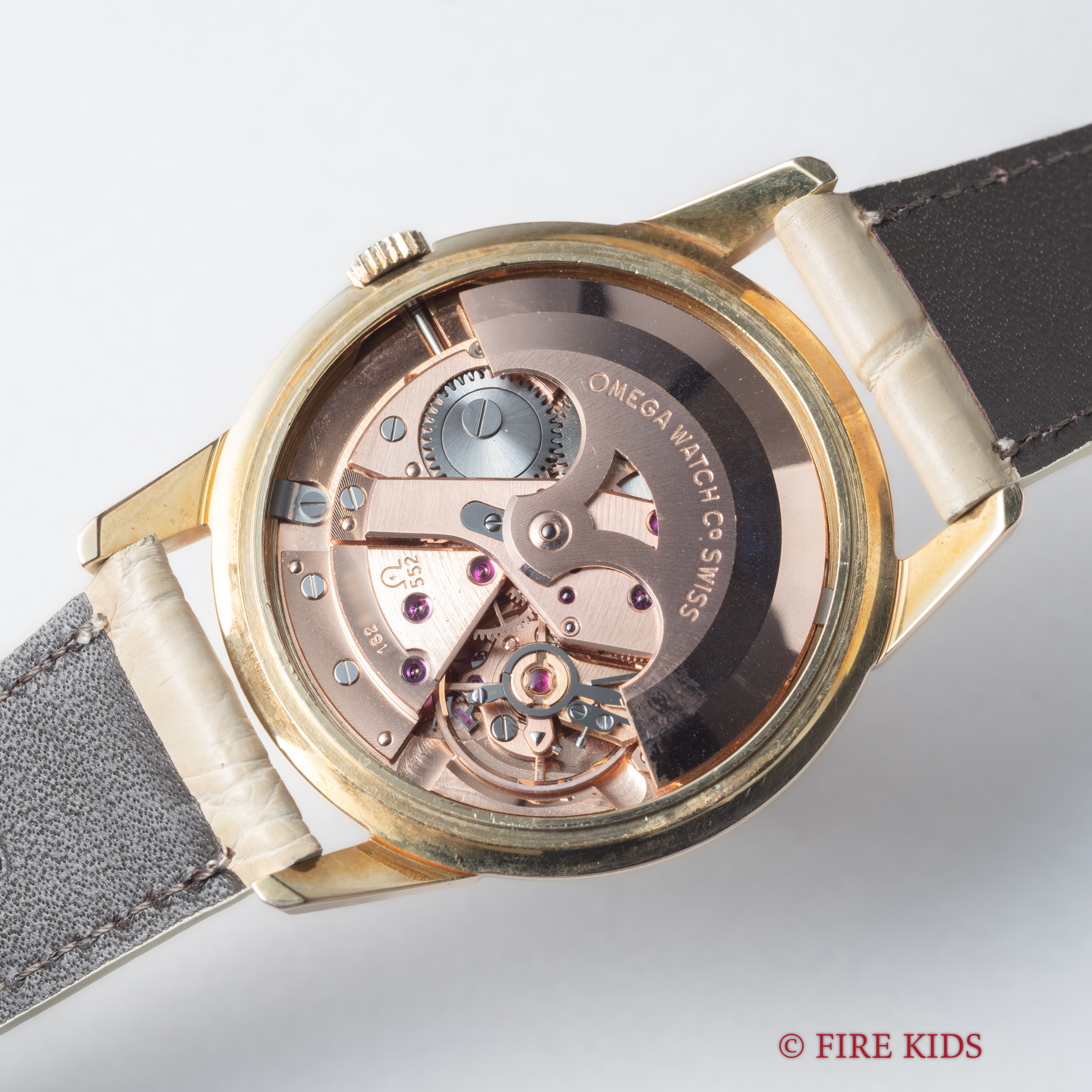 オメガ ラウンドケース 自動巻き Ref.14753-1SC 1961年製 Cal.552 ノンデイト 純正革ベルト、尾錠付き 総金張りケース