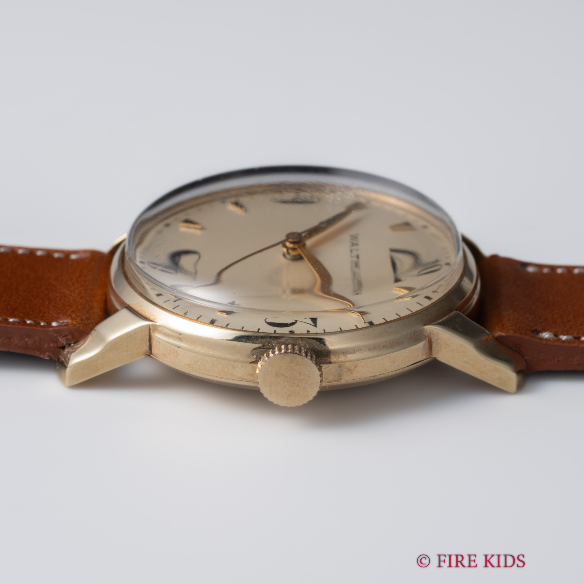 ウォルサム 14金無垢イエローゴールド 手巻きハック付き 飛びアラビア リーフハンド