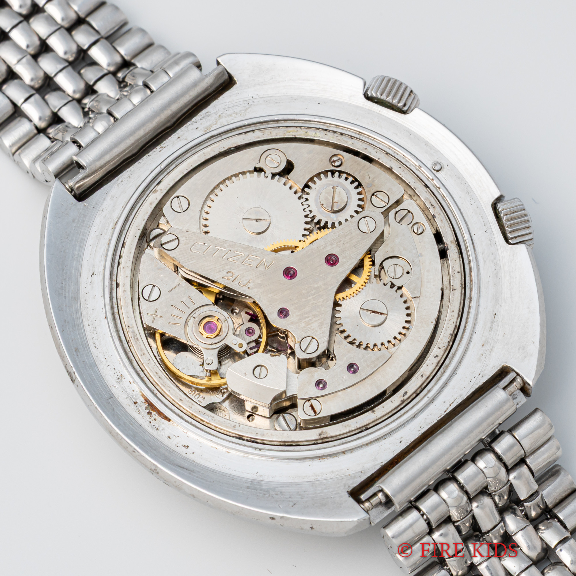 - ヴィンテージ時計の特性上、風防・パッキン・リューズ・バネ棒などの消耗部品は後年メンテナンス過程で交換されている場合がございます。オリジナル性を重視しておりますが、必要に応じて適切な部品にて調整されていますので、よりコレクション性重視のお求めのお客様は事前にご確認ください。