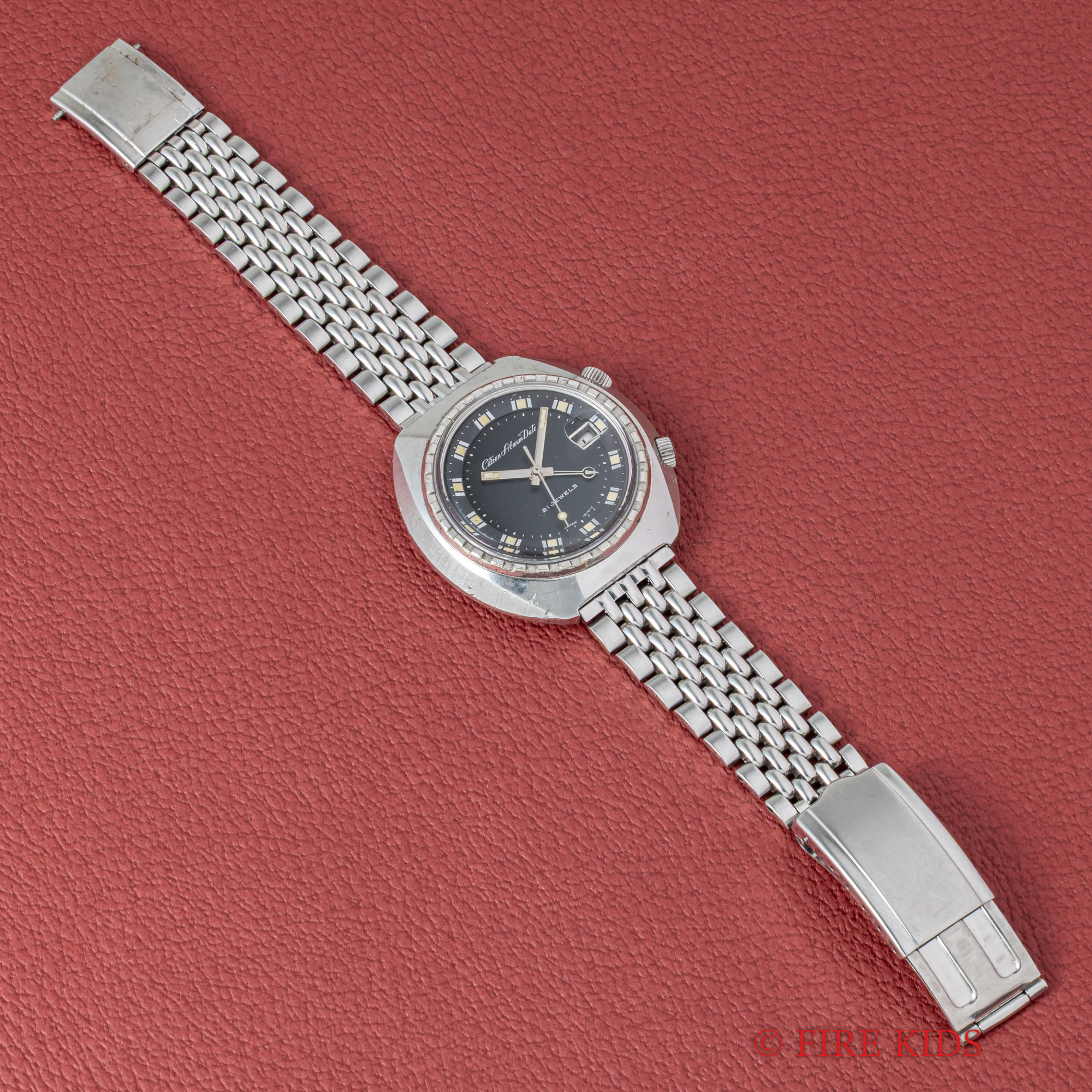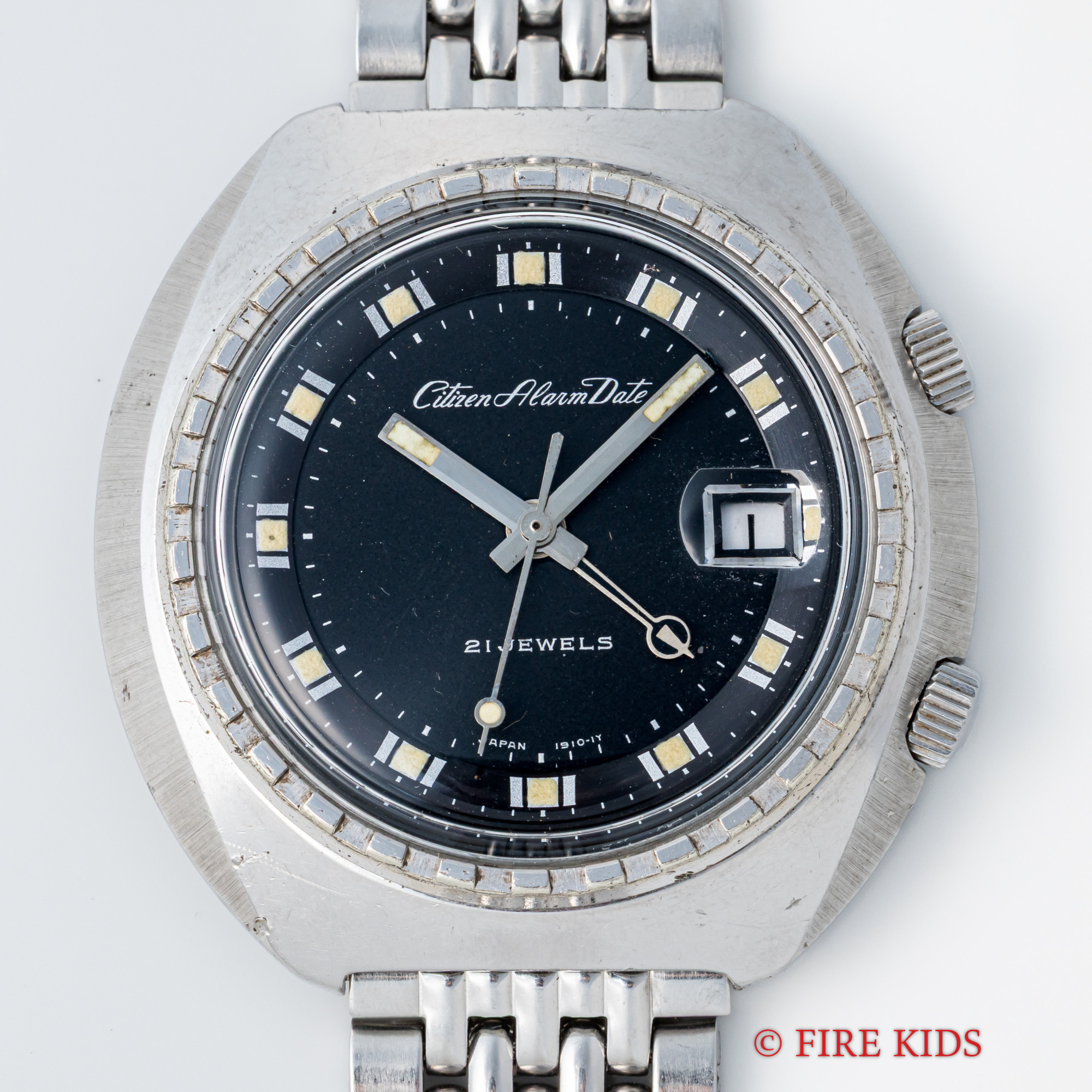 シチズン アラームデイト 1968年製 ブラックダイヤル 純正ブレス付き 手巻き パラウォーター 防水スナップ