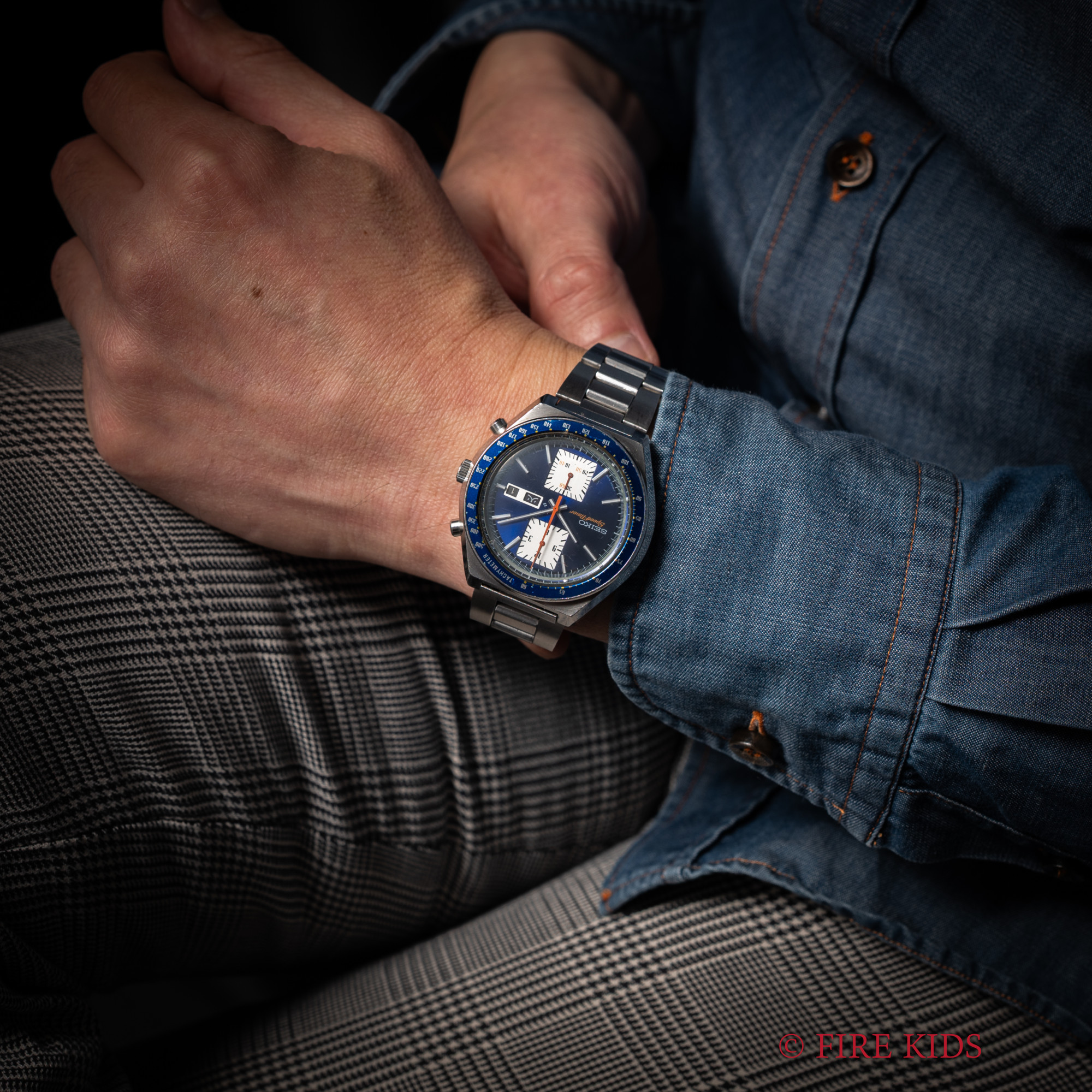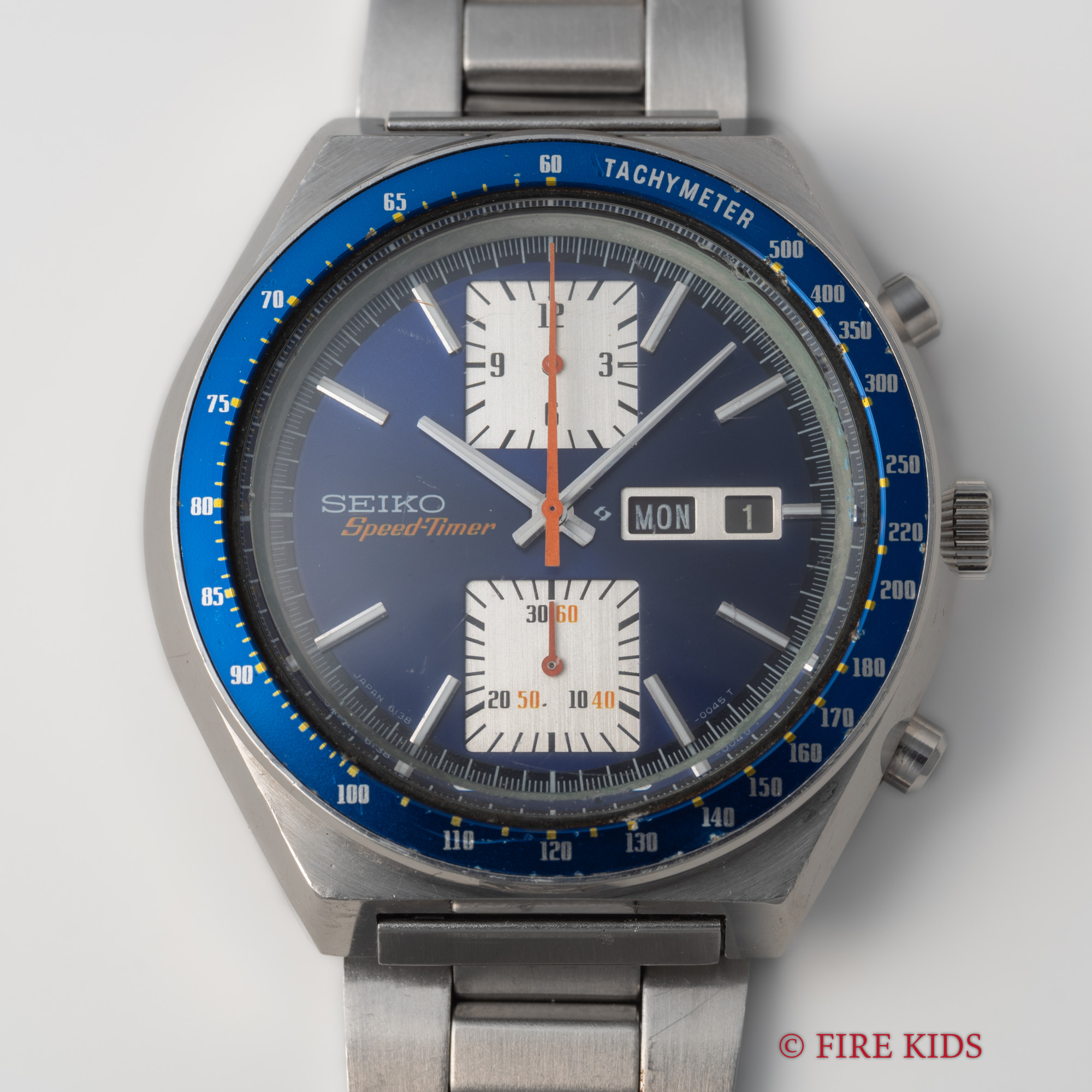 セイコー スピードタイマー 角目 ブルー 1976年製 自動巻きクロノグラフ Cal.6138B 純正ブレス