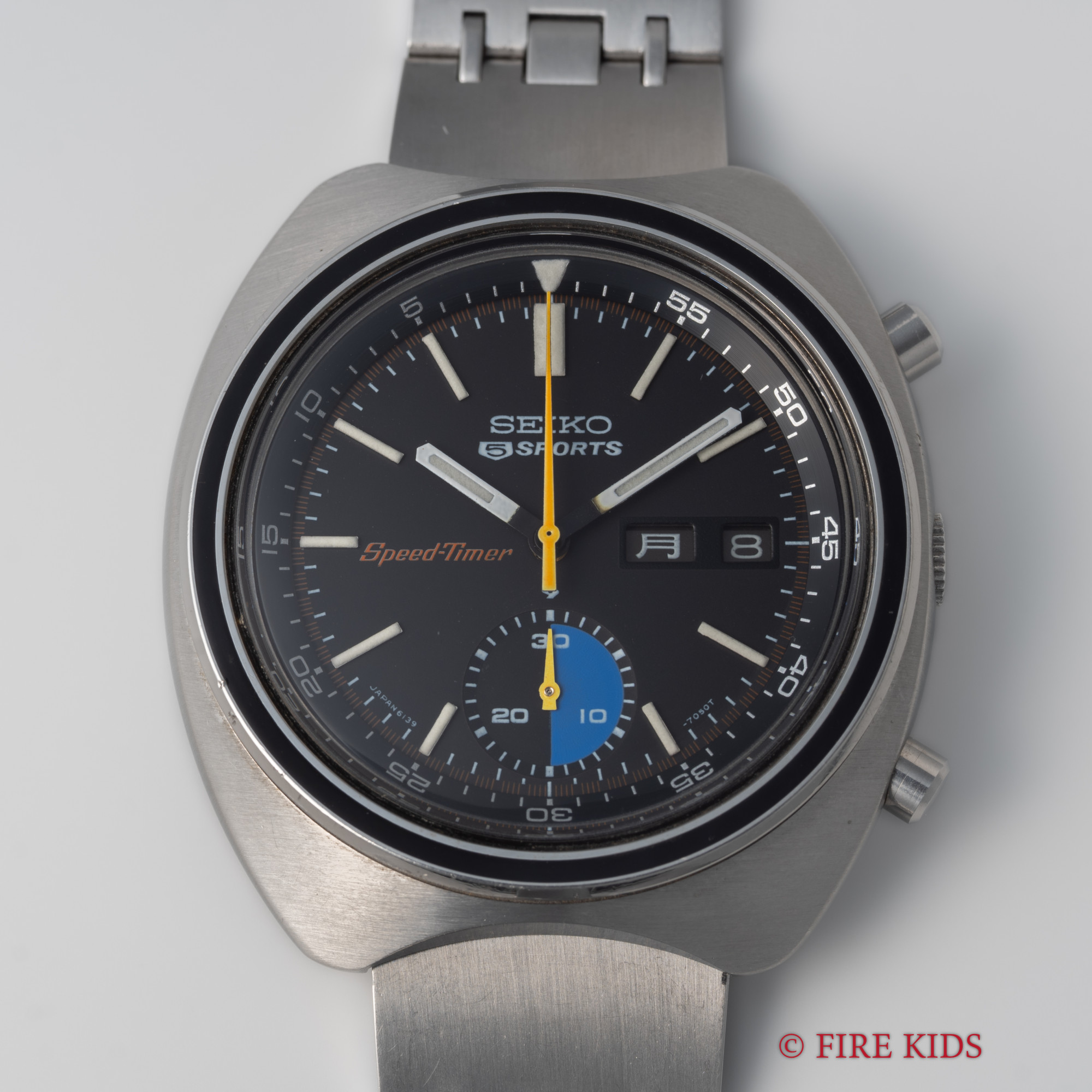 セイコー 5スポーツ スピードタイマー Cal.6139A 自動巻きクロノグラフ 純正ブレス付き Ref.6159-7020 1971年製 ブラックダイヤル デイデイト 漢字デイ