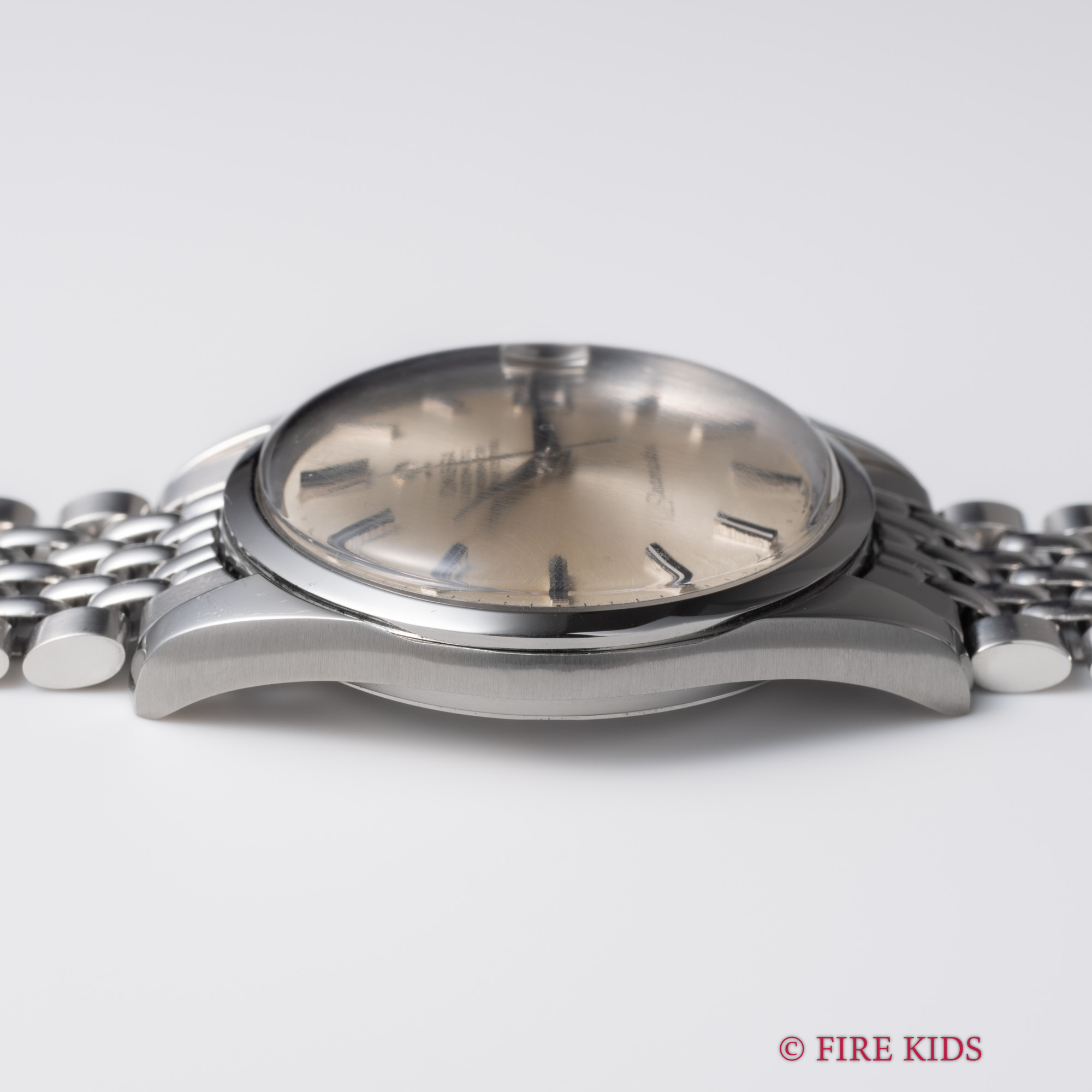 - ヴィンテージ時計の特性上、風防・パッキン・リューズ・バネ棒などの消耗部品は後年メンテナンス過程で交換されている場合がございます。オリジナル性を重視しておりますが、必要に応じて適切な部品にて調整されていますので、よりコレクション性重視のお求めのお客様は事前にご確認ください。